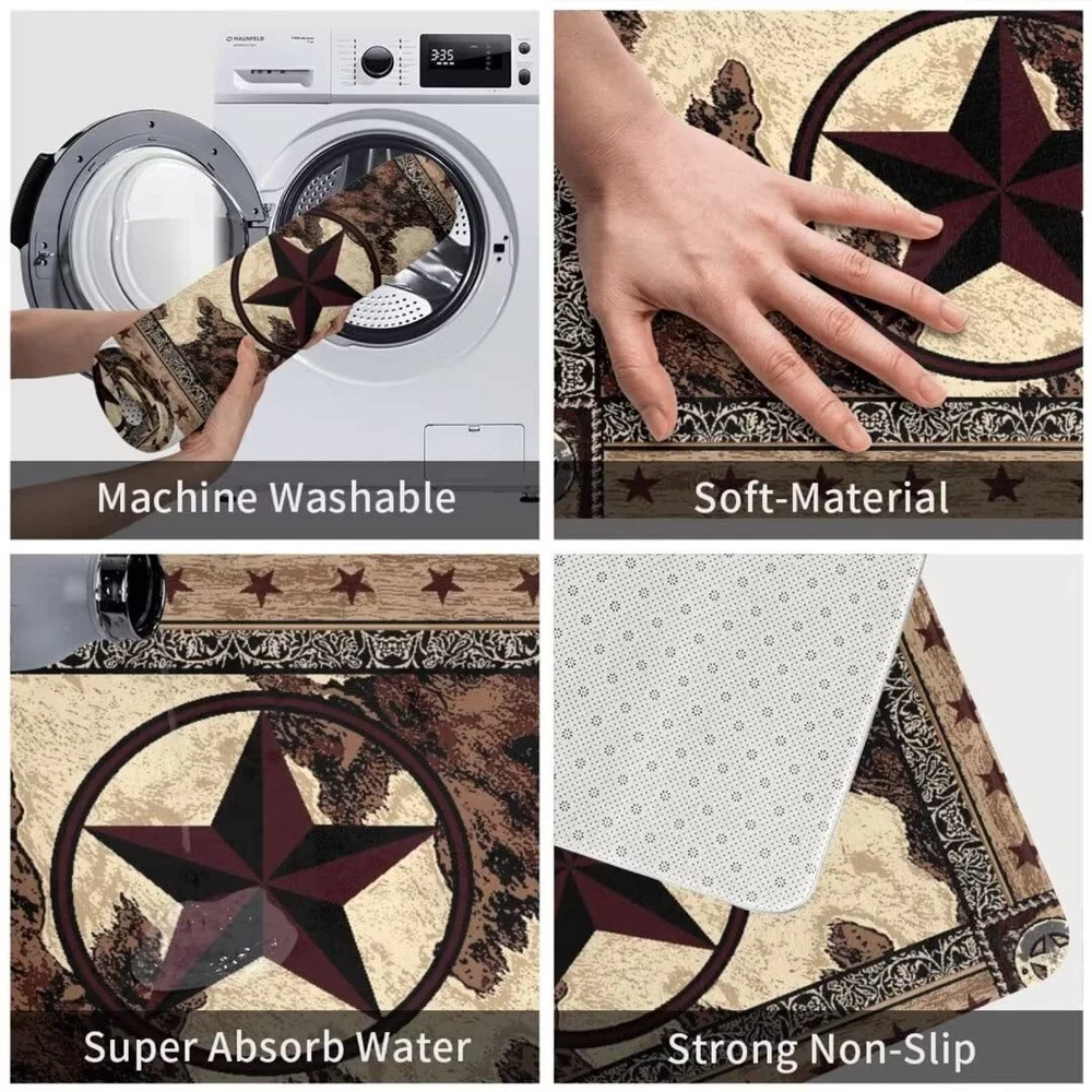 Love these rustic kitchen rugs! The Texas star design adds cozy country charm to my space. They feel durable yet soft underfoot and the wood panel detail ties everything together. Super easy to clean—just toss them in the machine. Great quality for the price, and customer service was quick to respond when I had a question. Perfect for adding a warm, western vibe to any home!