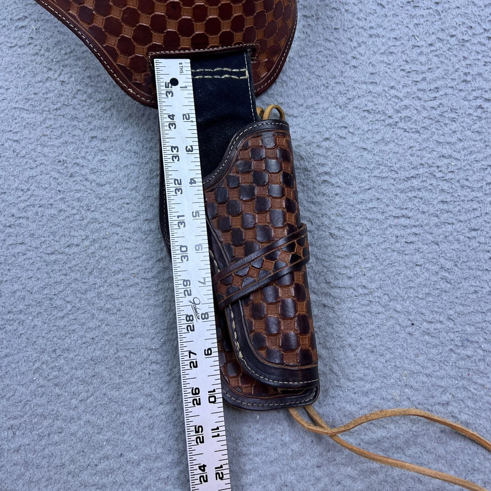 Good used condition with light wear . It is marked 34 but I am a size 34 and it is too small for me. The largest waist size hole measures 31.5 inches. It should fit you if your waist is a size 28.5-31.5 depending on how low or high you like the holster to sit. I recommend measuring yourself before ordering online to help find the perfect fit for you. Please view all photos and reach out with any questions- thank you