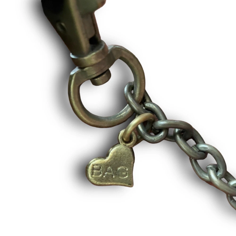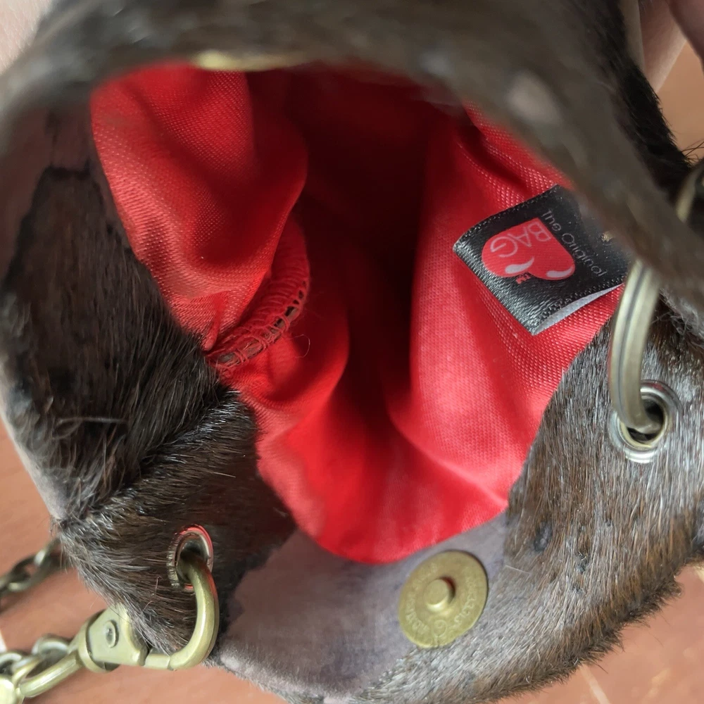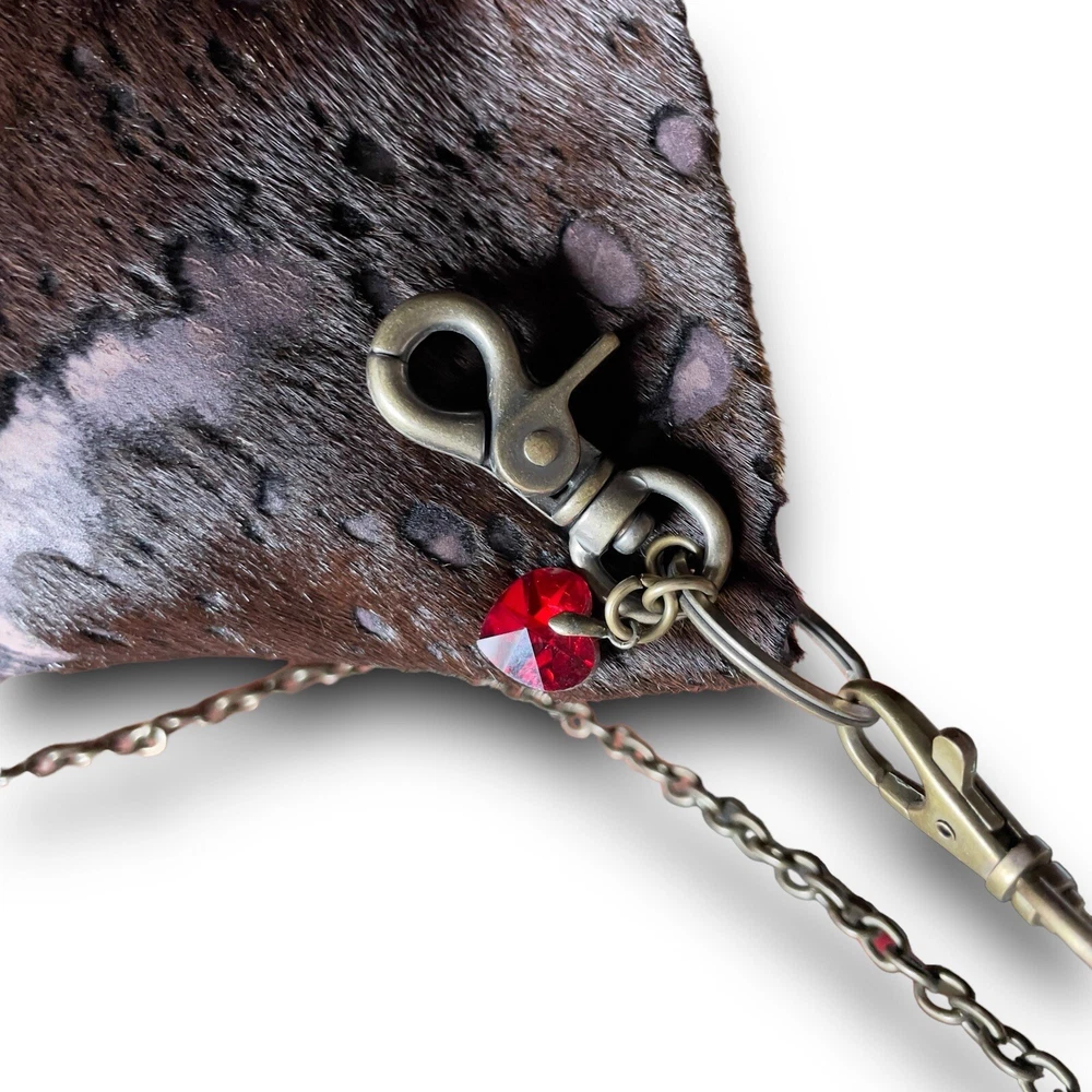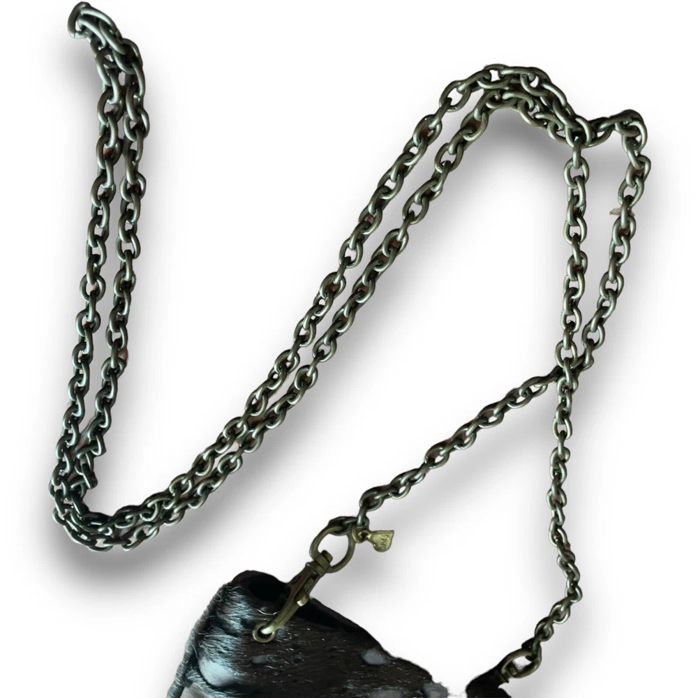 The Original B Bag™....Classy, Sophisticated, Edgy, Sassy and Fun...But most of all...Functional! This mini purse measures 6 1/2" tall by 4 5/8" wide with a magnetic closure. Each B Bag™ has the ability to contain your B Bag™ card wallet, your mobile device, a lipstick and a pen, as well as a passport when necessary. Aside from wearing the B Bag™ crossbody, you can double the chain and carry it as a gorgeous evening bag or even a shoulder bag. The chain can be removed and used as a necklace. Remove the charm from your bag and attach it to the chain double the chain and carry it as a gorgeous evening bag or even a shoulder bag. The chain can be removed from your B Bag™ and used as a necklace. Attach your favorite B Bag™ to a belt loop or even a larger handbag to have easy access to your important things and can dress up any handbag! This cowhide acid wash leather clutch is in excellent preowned condition. Original price $168 Keywords: Lisa Berck, crossbody, cowhide leather, rustic brown, women's bag, brass chain, antique brass, fleur de lis, heart, engraved tag, red crystal, pre-owned, stylish, unique patterns, evening accessory, western, boho, cowgirl, shabby chic, ranchwear,
