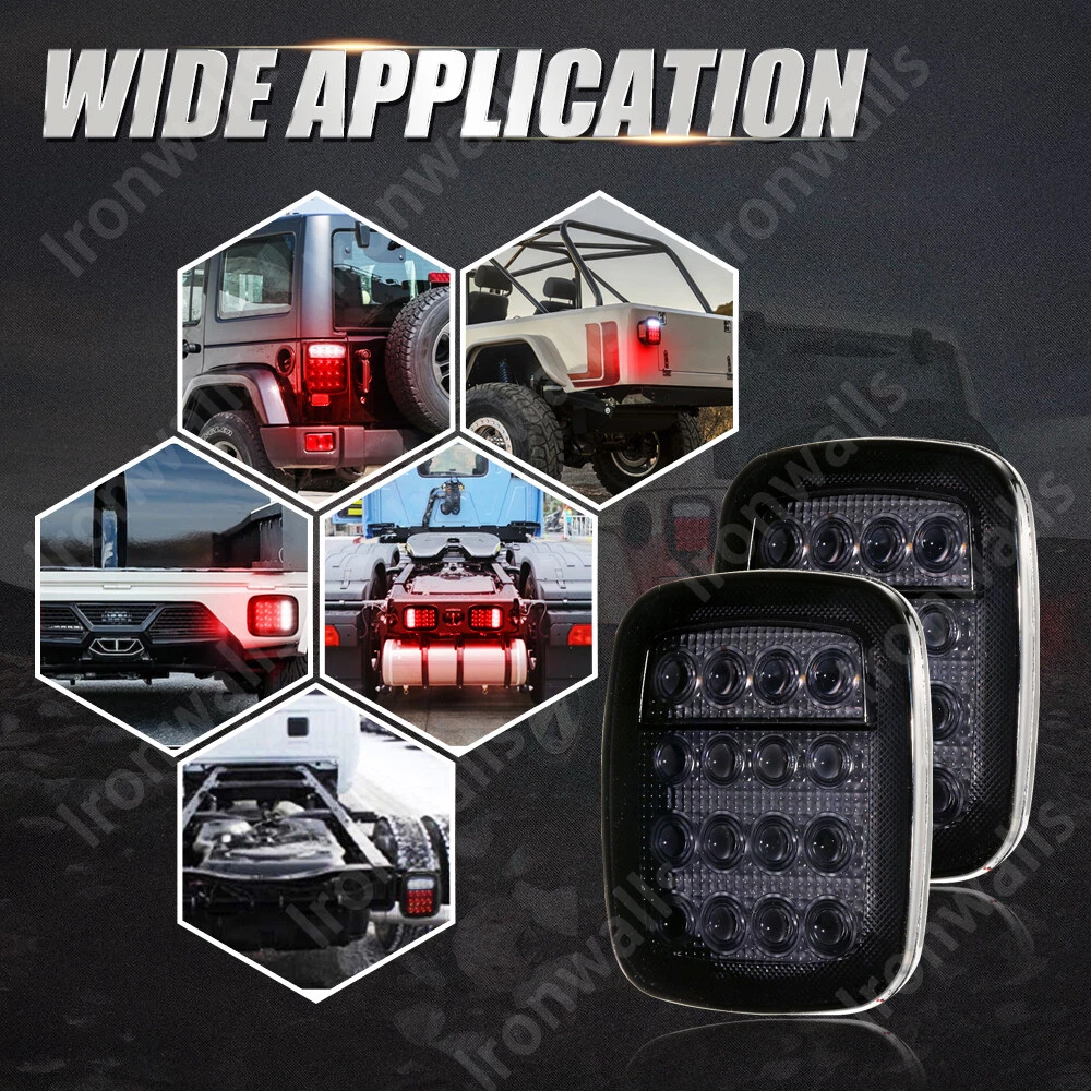 moflowder Welcome Product Description 16LEDs universal smoked black tail light with reverse light, tail light, brake light, turn light modes Fitment: Fit for Kenworth Peterbilt Freightliner Features: * Wide Application: This Universal Stop Turn Signal Light is suitable for most 12V cars; the smoked black border color with smoked lens gives you the latest look and attitude. Suitable for trucks, trailers, SUVs, RVs, campers, boats, flatbeds, buses, forklifts, pickups, etc. * Excellent bright LED: 16 very bright LEDs, brighter than the original light. Provides tail lights, brake lights, turn signals and reverse lighting functions (no license plate lights); 12 red LEDs for brake/steering/tail functions, and 4 white LEDs for reverse and turn signal function. * Sealed and Waterproof: 16LEDs Bi-color Trailer Tail Lights are made of high quality ABS housing and PC lens, fully sealed epoxy resin to resist corrosion and moisture; effectively resist sand, dust, dirt, water and other harsh weather intrusion and corrosion. * Easy to install: 3 bolts can be installed directly on any flat surface. Wire connection with 4 color coding for easy installation; black wire is ground, white wire is reverse light, red wire is brake light, brown wire is tail light, yellow wire is turn signal light. * What you will receive: 2 x 12V 16LEDs tail lights; Professional installation is highly recommended (instructions not included), please note that some modifications or drilling are required during installation, so before buying, please confirm the product information is what you need of. Specification: Name: tail light Voltage: 12V Light source: 16LEDs 4 light modes: reverse light, tail light, brake light, turn light (Both lights flashing yellow at the same time indicate hazard light) Light color: white light, red light, amber light Location: rear Lens color: smoke black Packing included: 2 PCS 16 LED Tail Lights Note: 1. Due to manual measurements and slight color variations, please allow 1-3 cm (0.4-1.18 inches) difference to suit different display settings. 2. Due to the light and screen difference, the item's color may be slightly different from the pictures. Please understand. Product Display Payment We accept PayPal via eBay Secure Check-Out only. Payment is expected within 7 days of auction close. Unpaid Items will be forfeited per eBay . Immediate payment needs to be processed for items with Add to Cart option so that any promotional discounts can be applied to your order immediately. Shipping Notice: 1 .We do everything we can to ship your orders out as soon as possible. 2. Shipping and Handling: We process orders within one business day after the payment was clear. ---For domestic economic shipping, It normally takes 2-8 days for delivery. We may ship your order(s) from different warehouses for expedited delivery as we utilize alternative warehouses across the Continental United States.You may upgrade to UPS 3-day Selected which delivery time is typically 1-3 business days. Please be noted that, this service is more recommended for Monday-Thursday orders. Orders on Friday may be processed on following Monday by UPS, according to UPS's policy. ---For International Orders, items may be shipped from our warehouse in south China. Both are the same products and same warranty. Duties and taxes may apply. Please check with your country's custom and eBay policy for more information. Returns Our 30-day Satisfaction Guarantee assures our customers that they will receive all orders promptly and exactly as described. In addition, it allows customers to return new and unused products in their original factory condition for any reason within 30 days from the date of purchase. 1. All returns must be pre-approved by Rbigdoggy and have a return merchandise authorization(RMA) number. Unauthorized returns will not be accepted. 2. Buyers are responsible for appropriate packing, returning shipping cost, insurance and returning the item in "new" condition. Used items will not be accepted for return. 3. We will replace the returning item with an identical item, issue a full store credit or a full refund. The sole and exclusive maximum liability to Rbigdoggy arising from any product sold on Rbigdoggy ebay account shall be the price of the product ordered. Feedback 1. We appreciate your business and strived to improve our customer service and our commitment to quality. 2. We will leave a positive feedback immediately after payment is received. We appreciate a positive feedback as much as you do. 3. If for some reason there is any issue with the purchase, please contact us prior to leaving feedback, and we will be glad to work with you to have it resolved. Thank you for visiting my store!