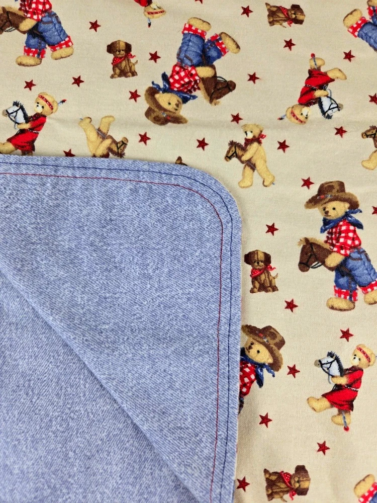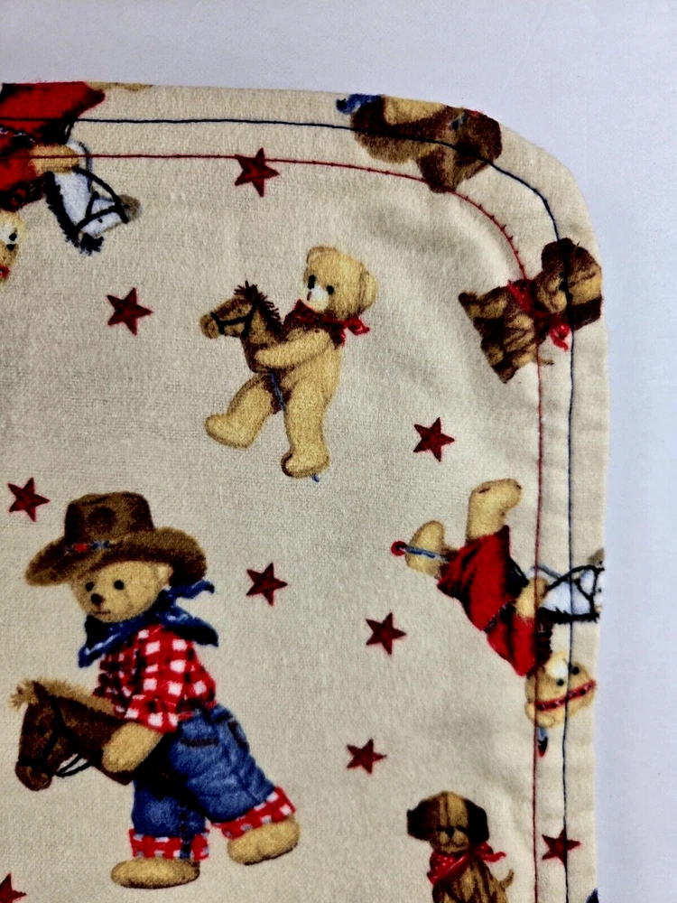 Western Teddy Bear Baby Blanket Handmade 41" by 42"