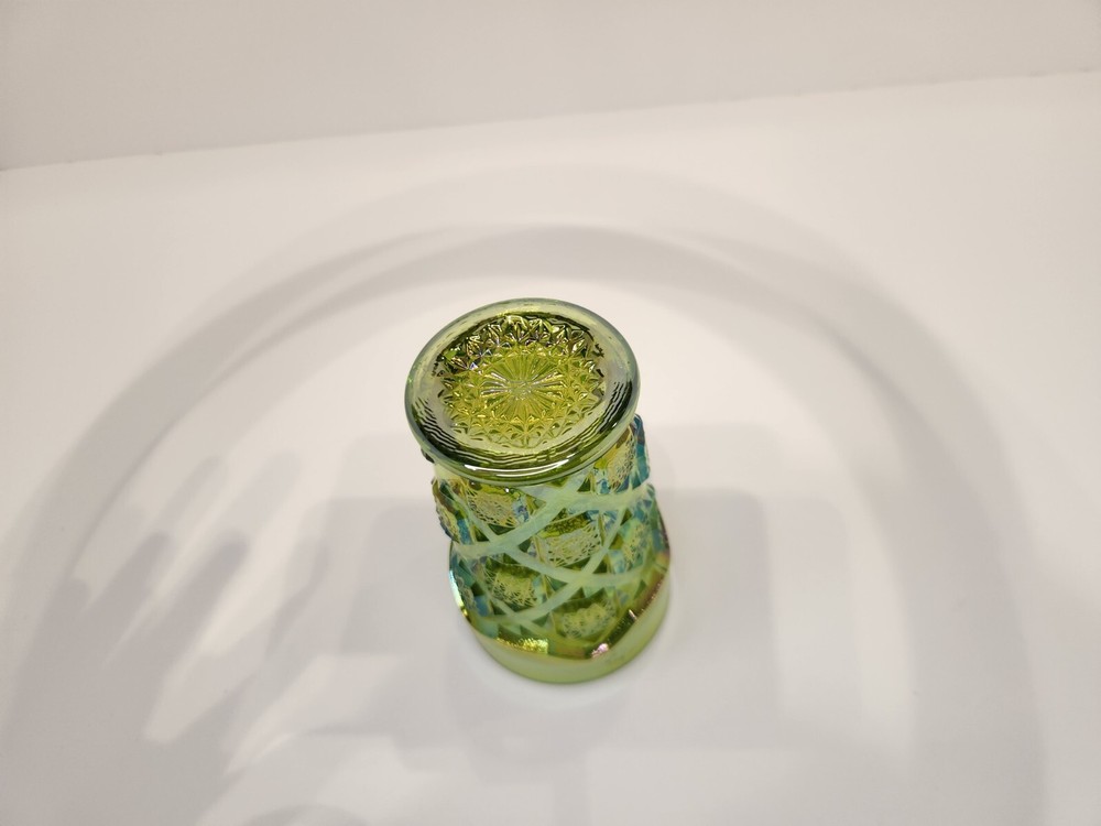 Westmoreland Lime Carnival Glass Tumbler Old Quilt Pattern Condition Comment: see image: on small chip in inconspicuous location.