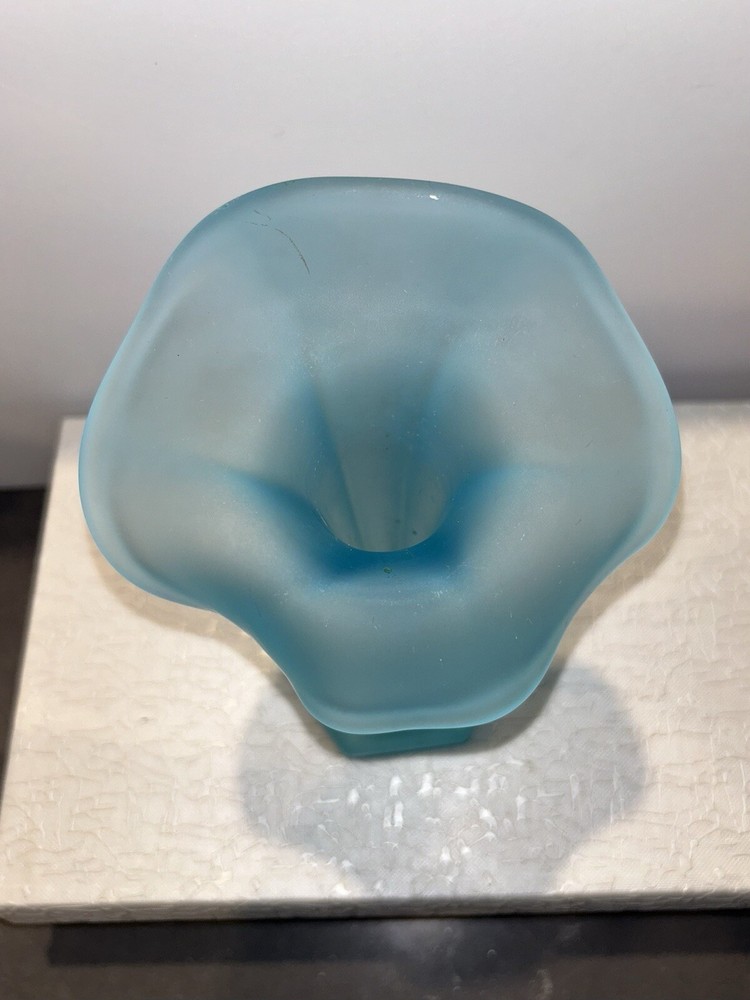 Westmoreland frosted blue satin glass jack in pulpit vase, 6.5"