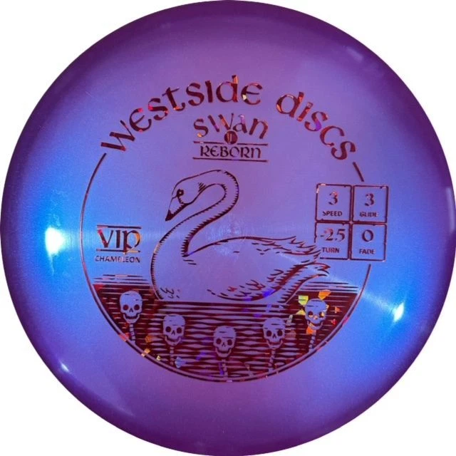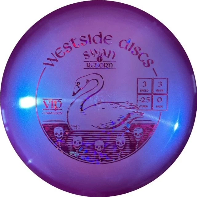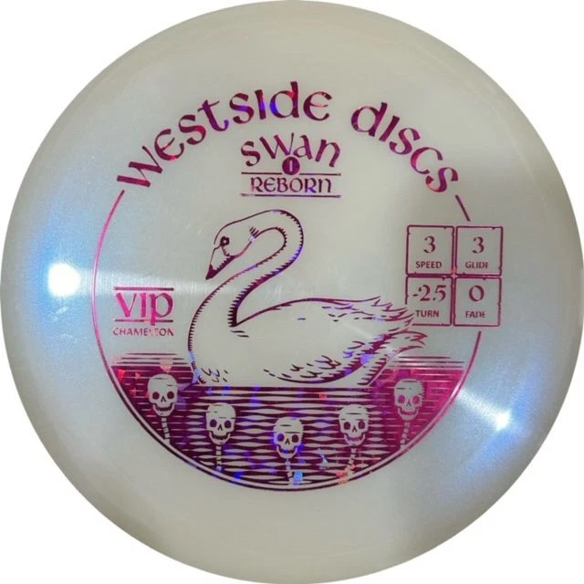 Truly Unique Disc Golf Westside Discs VIP Chameleon Swan 1 Reborn Disc Golf Putter (pick your foil) Westside Discs VIP Chameleon Swan 1 Reborn Disc Golf Putter (pick your foil) The Swan 1 was Westside’s original putter and it would fly straight for anyone right off the shelf. The Swan 1 was designed to give lower arm speeds a straighter putting line. Speed: 3, Glide: 3, Turn: -2.5, Fade: 0 The first ever Swan 1 Reborn in premium plastic is here. This is a Truly Unique Disc Golf Exclusive. It can only be found via TU and it’s partner stores. Shipping Shipping cost: Flat Rate $5 Delivery time: Ships in 1 Business Day Payment We accept the following payment methods: Ebay Payments Accepted Please contact us if you have any questions. Service Thank you for looking at our item. In some cases the item in the picture may be a stock photo of the item you are looking at. Color. Stamp, and Weight will all match the description. The description is correct. We welcome any questions. This is listed to the best of our knowledge.