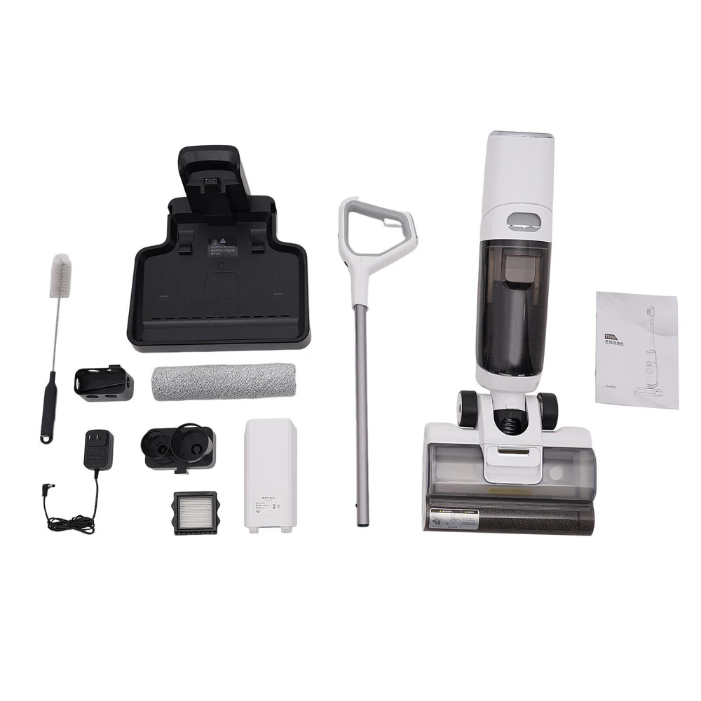 Wet Dry Vacuum Cleaner One-Step Mop Cordless Hardwood Floor Vacuum Cleaner 600ml Description Are you still anxious about the hair, dust, etc. in your home that is not easy to clean? Then this wet dry vacuum cleaner can help you solve many home cleaning problems, it adopts an intelligent design, a powerful motor, and a large-capacity water tank, making it easy to clean, so it will be an indispensable item for your home! Key Features Build to Last: It is made of high-quality ABS with frosting treatment, which is anti-tarnish, wear-resistant, corrosion-resistant, and can ensure extended service life. High Safety: Multiple heat dissipation holes, IPX4 level, and a wide voltage of 100-240V can effectively ensure safety during use, so you can use it with confidence. Powerful Function: 250W brushless motor with less noise, 25,000pa suction power, advanced brush edge design, and soft fluffy brush head allow it to remove germs , stains, hairs, etc. from floors and dead corners without disturbing your neighbors or family members and leaving less marks on the floor . Efficient Cleaning: With a 4400mah li-no battery, it can do about 30-40 minutes of cleaning on the high end and about 1 hour on the low end, which will meet your cleaning needs for both big houses and small rooms, and the large 20.29Oz visible fresh water and sewage tanks reduce the frequency of your water changes and achieve the separation of clean water and sewage, making it more hygienic . Thoughtful Design: The visible LED screen and indicator lights with voice broadcasting function allow and inform you to track cleaning progress at a glance and keep you alerted to battery and tank status. Healthy Life: Electrolyzing live water to form a disinfectant solution, while one-touch self-cleaning, the rolling brush and pipeline are synchronized with deep sterilization and cleaning, without adding disinfectants or residues so that you and your children can play barefoot on the floor, and the function of the negative ion air-drying makes it scientifically exhausting, to avoid the brush moldy and smelly. Effortless Saving: The removable lever, ergonomic handle with buttons and motorized traction design allow you to clean your home with ease. Easy to Store: The small base (11.02*9.84inch) allows you to neatly store equipment behind a door or against a wall without taking up too much space. Ideal Gift : With its practicality, and powerful features, you can give it to your friends as a Christmas gift! Details Power Socket: With this socket, it can be well adapted to our charger, so that you can charge more conveniently. Practical Brush: With an extra cleaning brush, you can easily scrub the couch or pet room hair. Storage Rack: It allows you to temporarily store some cleaning supplies, making it more convenient. Cleaning Cloth: We provide an extra cleaning cloth for you to replace, so you can replace it in a timely manner . Filter: It can better filter impurities and improve cleaning efficiency. Application It can be used on hardwood, linoleum, vinyl, marble, hard floors, carpets, ceramic tiles, laminates, etc. in rooms, pet rooms, baby rooms, kitchens, bathrooms, etc., and can be used to clean dust, hair, debris, liquids, sauces, stains, etc. Specification Color: Black and White Type: T9pro Material: ABS Cloth Material: Fluff Manual Type: Hand, Button Process: Frosting Motor: Brushless Motor Mounting Type: Freestanding Number of Pieces:1 Assembly Required: Yes Power Source: Battery Plug Type: US Standard Screen: LED Suction: 25000Pa Input Voltage: 100-240 V, 50-60Hz, 0.5A MAX Output Voltage: 22V, 900mA Power: 250W IP Level: IPX4 Clear Water Tank Capacity: 600ml/20.29Oz Dirty Water Tank Capacity: 600ml/20.29Oz Battery: 1* 4400mah Li-ino Battery(Included) Battery Voltage: 18V Charging Time: 5-6h Using Time: About 30-40mins for High Level/About 1 hour for Low Level Net Weight: 7.5kg/16.53 lbs Gross Weight: 8kg/17.64 lbs Package Size: 65.5*31.5*34.5cm/25.79*12.4*13.58inch Product Size: 28*25*108cm/ 11.02*9.84*42.52inch Package Included 1* Wet Dry Vacuum Cleaner 1* Li-ino Battery 1* Power Socket 1* Brush 1* Power Adapter 1* Conversion Plug 1* Chinese and English Manual Notes To prevent sewage from flowing out, please do not lay the machine flat or shake the body violently. Please do not use the product to absorb foamy liquids, and do not soak or rinse the product under the faucet. Please note that this product does not control the cleaning strength and water output. Please note that there may be a small amount of water in the freshwater tank left after testing, which does not affect the use of the product. T he usage time and suction of the product may be affected by the environment and temperature . Please use it after reading the instructions carefully and pay special attention to the safety tips inside. Please ensure that there is water in the clean water tank before use. Please clean the stains and hairs on the vacuum port and roller brush in time to avoid blocking the air duct. After use, please put the product back to the charging seat, so as not to leave water stains on the ground. Please allow the slight color difference caused by the shooting light and 1-3cm error due to manual measurement, and make sure you do not mind before ordering. Payment Delivery details Terms of sales About us Contact us Payment We accept ebay payment 。 Fees such as import duties, taxes are not included in the item price or shipping costs. These charges are the buyer's responsibility. Delivery details Shipping: 2-9 working days to: USA Terms of sales We maintain high standards of excellence and strive for hundred percent customer satisfaction. Feedback is very important to us. We hope that you contact us immediately before you give neutral or negative feedback, so that we can address your concerns. It is impossible to address issues if we do not know about them! About us Your satis faction is our ultimate goal. We work hard to earn your trust and future business.