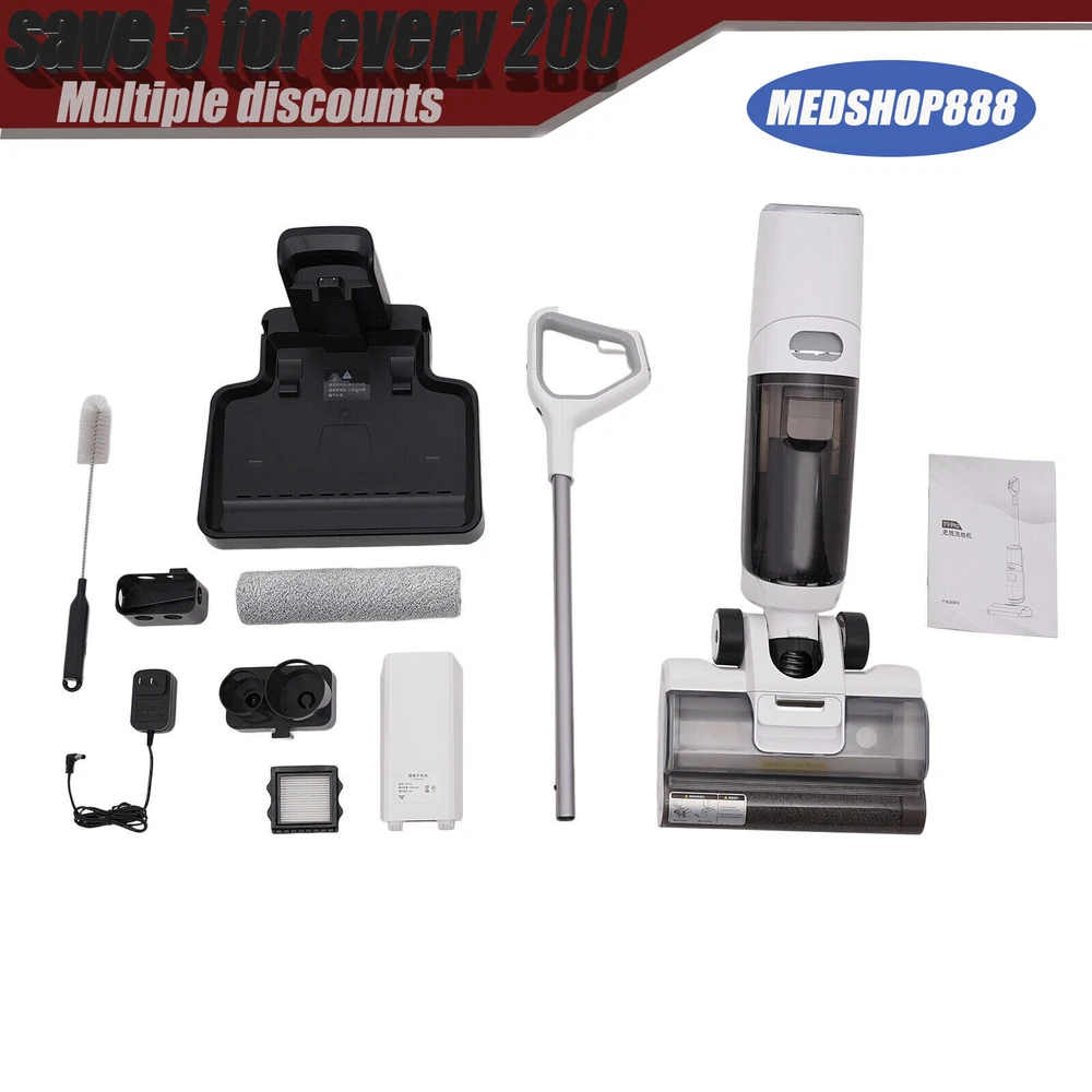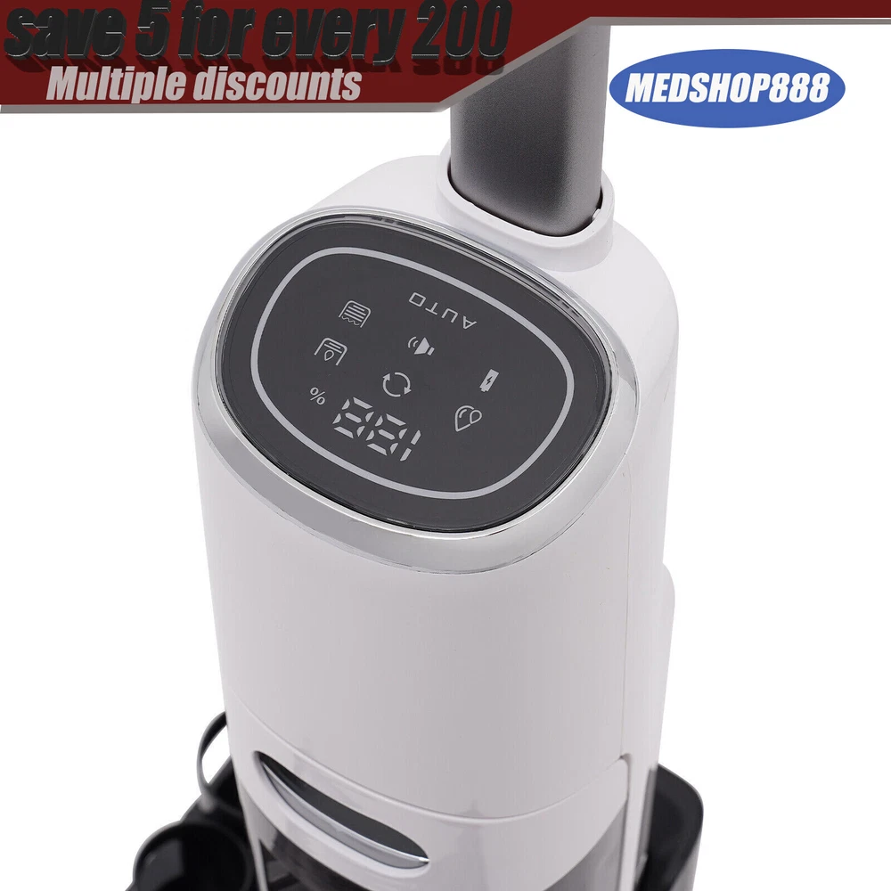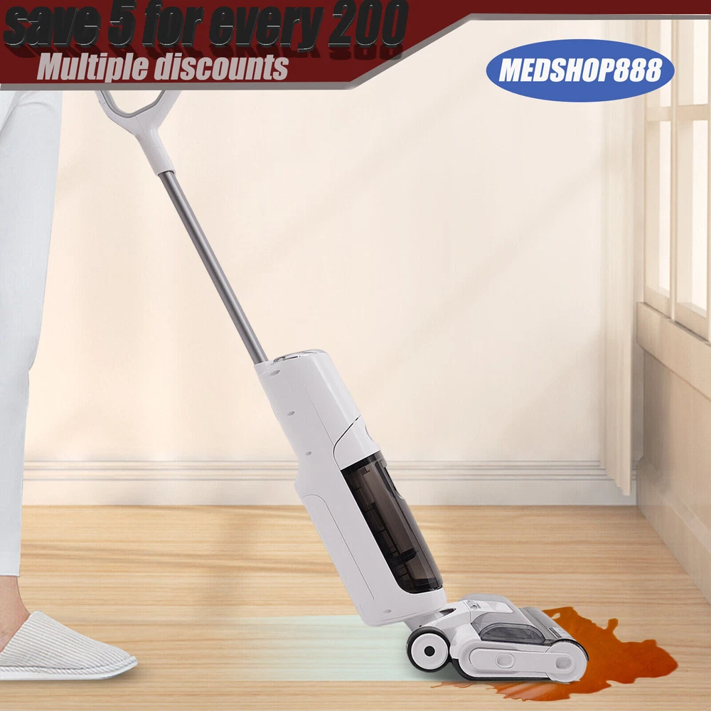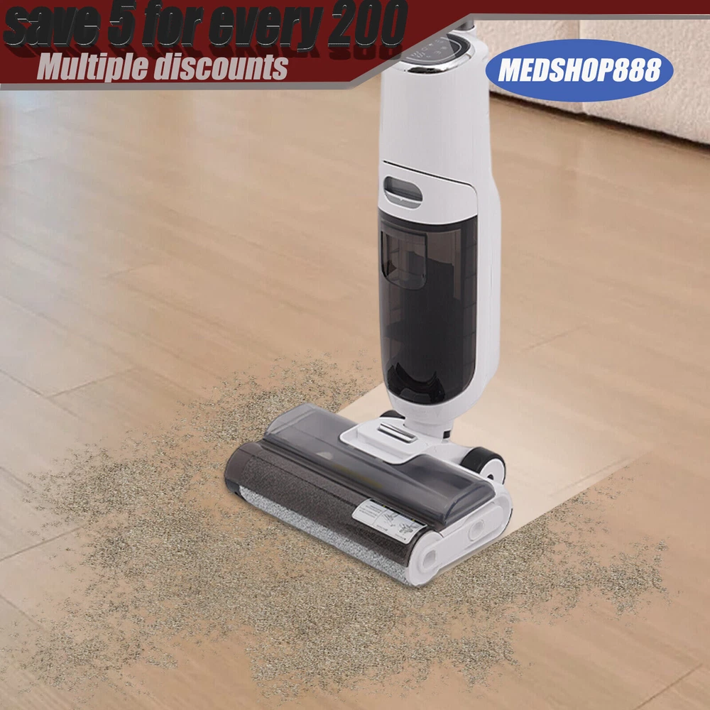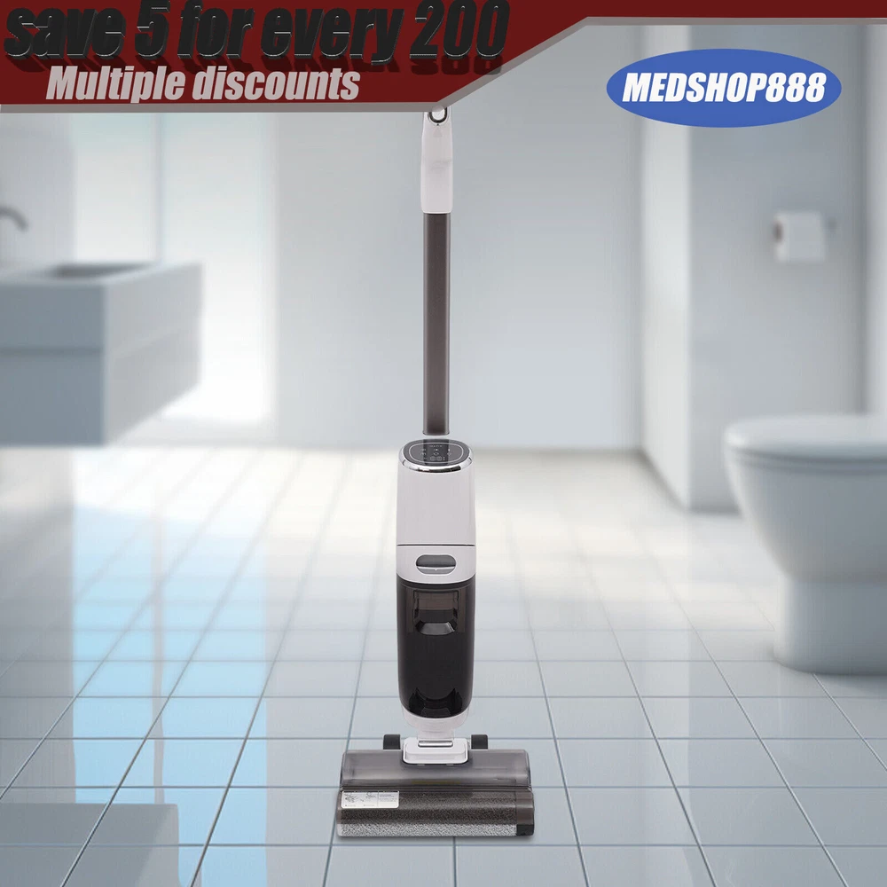 Wet Dry Vacuum Cleaner One-Step Mop Cordless Hardwood Floor Vacuum Cleaner Description Are you still anxious about the hair, dust, etc. in your home that is not easy to clean? Then this wet dry vacuum cleaner can help you solve many home cleaning problems, it adopts an intelligent design, a powerful motor, and a large-capacity water tank, making it easy to clean, so it will be an indispensable item for your home! Key Features Build to Last: It is made of high-quality ABS with frosting treatment, which is anti-tarnish, wear-resistant, corrosion-resistant, and can ensure extended service life. High Safety: Multiple heat dissipation holes, IPX4 level, and a wide voltage of 100-240V can effectively ensure safety during use, so you can use it with confidence. Powerful Function: 250W brushless motor with less noise, 25,000pa suction power, advanced brush edge design, and soft fluffy brush head allow it to remove germs , stains, hairs, etc. from floors and dead corners without disturbing your neighbors or family members and leaving less marks on the floor . Efficient Cleaning: With a 4400mah li-no battery, it can do about 30-40 minutes of cleaning on the high end and about 1 hour on the low end, which will meet your cleaning needs for both big houses and small rooms, and the large 20.29Oz visible fresh water and sewage tanks reduce the frequency of your water changes and achieve the separation of clean water and sewage, making it more hygienic . Thoughtful Design: The visible LED screen and indicator lights with voice broadcasting function allow and inform you to track cleaning progress at a glance and keep you alerted to battery and tank status. Healthy Life: Electrolyzing live water to form a disinfectant solution, while one-touch self-cleaning, the rolling brush and pipeline are synchronized with deep sterilization and cleaning, without adding disinfectants or residues so that you and your children can play barefoot on the floor, and the function of the negative ion air-drying makes it scientifically exhausting, to avoid the brush moldy and smelly. Effortless Saving: The removable lever, ergonomic handle with buttons and motorized traction design allow you to clean your home with ease. Easy to Store: The small base (11.02*9.84inch) allows you to neatly store equipment behind a door or against a wall without taking up too much space. Ideal Gift : With its practicality, and powerful features, you can give it to your friends as a Christmas gift! Details Power Socket: With this socket, it can be well adapted to our charger, so that you can charge more conveniently. Practical Brush: With an extra cleaning brush, you can easily scrub the couch or pet room hair. Storage Rack: It allows you to temporarily store some cleaning supplies, making it more convenient. Cleaning Cloth: We provide an extra cleaning cloth for you to replace, so you can replace it in a timely manner . Filter: It can better filter impurities and improve cleaning efficiency. Application It can be used on hardwood, linoleum, vinyl, marble, hard floors, carpets, ceramic tiles, laminates, etc. in rooms, pet rooms, baby rooms, kitchens, bathrooms, etc., and can be used to clean dust, hair, debris, liquids, sauces, stains, etc. Specification Color: Black and White Type: T9pro Material: ABS Cloth Material: Fluff Manual Type: Hand, Button Process: Frosting Motor: Brushless Motor Mounting Type: Freestanding Number of Pieces:1 Assembly Required: Yes Power Source: Battery Plug Type: US Standard Screen: LED Suction: 25000Pa Input Voltage: 100-240 V, 50-60Hz, 0.5A MAX Output Voltage: 22V, 900mA Power: 250W IP Level: IPX4 Clear Water Tank Capacity: 600ml/20.29Oz Dirty Water Tank Capacity: 600ml/20.29Oz Battery: 1* 4400mah Li-ino Battery(Included) Battery Voltage: 18V Charging Time: 5-6h Using Time: About 30-40mins for High Level/About 1 hour for Low Level Net Weight: 7.5kg/16.53 lbs Gross Weight: 8kg/17.64 lbs Package Size: 65.5*31.5*34.5cm/25.79*12.4*13.58inch Product Size: 28*25*108cm/ 11.02*9.84*42.52inch Package Included 1* Wet Dry Vacuum Cleaner 1* Li-ino Battery 1* Power Socket 1* Brush 1* Power Adapter 1* Conversion Plug 1* Chinese and English Manual Notes To prevent sewage from flowing out, please do not lay the machine flat or shake the body violently. Please do not use the product to absorb foamy liquids, and do not soak or rinse the product under the faucet. Please note that this product does not control the cleaning strength and water output. Please note that there may be a small amount of water in the freshwater tank left after testing, which does not affect the use of the product. T he usage time and suction of the product may be affected by the environment and temperature . Please use it after reading the instructions carefully and pay special attention to the safety tips inside. Please ensure that there is water in the clean water tank before use. Please clean the stains and hairs on the vacuum port and roller brush in time to avoid blocking the air duct. After use, please put the product back to the charging seat, so as not to leave water stains on the ground. Please allow the slight color difference caused by the shooting light and 1-3cm error due to manual measurement, and make sure you do not mind before ordering. Payment Delivery details Terms of sales About us Contact us Payment We accept ebay payment 。 Fees such as import duties, taxes are not included in the item price or shipping costs. These charges are the buyer's responsibility. Delivery details Shipping: 2-9 working days to: USA Terms of sales We maintain high standards of excellence and strive for hundred percent customer satisfaction. Feedback is very important to us. We hope that you contact us immediately before you give neutral or negative feedback, so that we can address your concerns. It is impossible to address issues if we do not know about them! About us Your satis faction is our ultimate goal. We work hard to earn your trust and future business. Our c