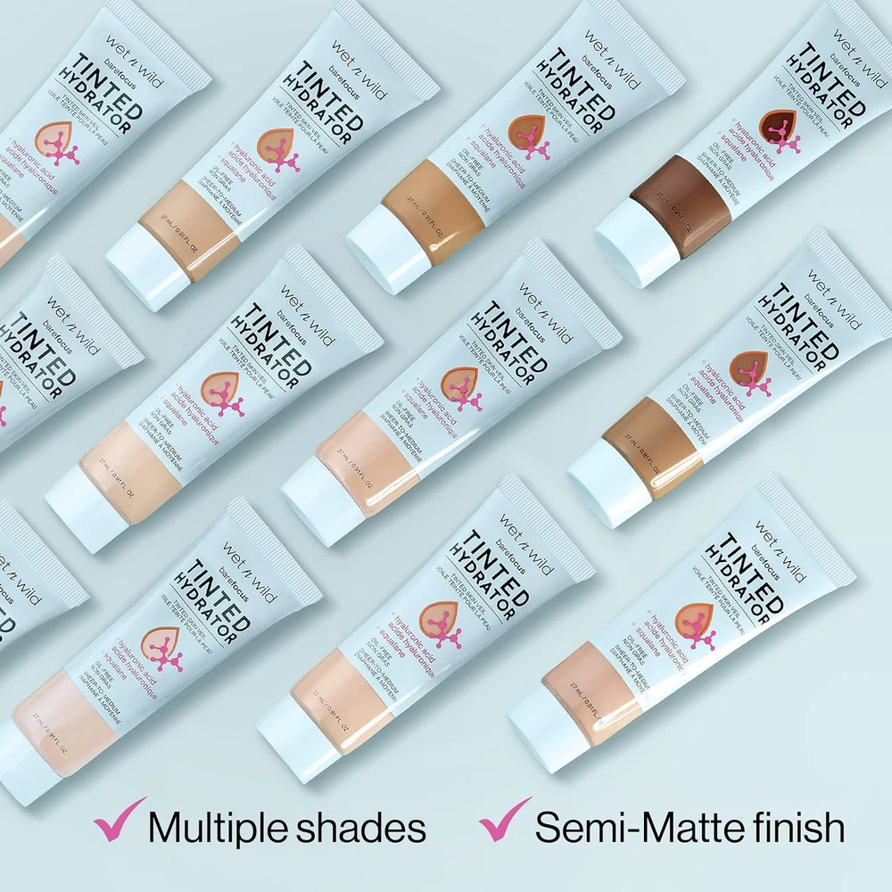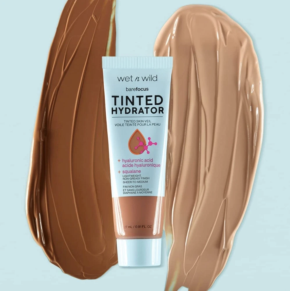 Buildable Coverage: Watch as lines and imperfections fade away. This lightweight hydrator features buildable seamless coverage from sheer to medium. Intensely Hydrating: A dream come true for normal and dry skin, this tinted hydrator is lightweight, moisturizing, and nourishing, leaving your skin happy and beautiful. Semi-Matte Finish: Improve your complexion in an instant while achieving a soft semi-matte finish that leaves a perfect base for any makeup routine. Multiple Shades: With so many colors available, it's easy to find a perfect color match for your unique skin tone. Cruelty-Free: wet n wild products are never tested on animals and are always cruelty-free. More than just a moisturizer, the Bare Focus Tinted Hydrator Tinted Skin Veil perfects with sheer-to-medium coverage, while granting your skin some seriously intense hydration. Formulated with hyaluronic acid and vegan squalane, this is a one-way ticket to quenched perfection! Buildable with a semi-matte finish, this two-in-one miracle creates a naturally flawless and nourished glow. Use it to transform a multi-step routine into a one-step regimen, so you’ll be ready in a splash with this lightweight, multipurpose, and super convenient formula. If that’s not a beauty dream destination, we don’t know what is! Simply tap, blend and build to your preferred coverage for hydrated, radiant, instant perfection. Select from our versatile range of shades to transport yourself to complexion paradise! wet n wild starts as everyone’s first and remains a lifelong destination for vibrant and accessible beauty. Delivering over 40 years of trend-forward and all-inclusive innovations, we are your trusted beauty expert that will keep you looking fabulous without ever betraying your budget. From the bold ‘n’ bright to the neutral ‘n’ nuanced, we set out to spoil you with options while setting the gold standard of achievability. So go ahead, get your feet wet with us again and go wild with your imagination!