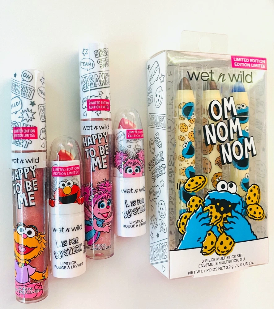 Includes... 5pc. Sesame Street Limited Edition Bundle! Zoe LipGloss (Fun Sized) ELMO Red Lipstick (Giggles) Abby Cadabby Pink Lipstick (Be Kind) Abby Cadabby Pink Lip Gloss (Fairy Tales) & Cookie Monster 3pc. Eyeshadow - Liner Multi sticks in Blue Brown Bronze