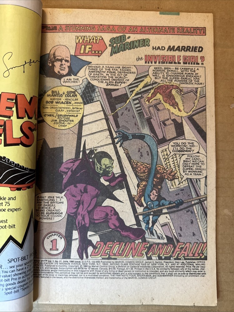 Dive into the alternate realities of the Marvel Universe with What If #21, a classic addition to any comic book collection. Published in 1980, during the vibrant Bronze Age of comics, this single-issue gem features the iconic Fantastic Four team, including Human Torch, Invisible Girl, Mister Fantastic, and Namor, the Sub-Mariner. Pondering the "what if" scenarios that have captivated fans for decades, this comic is a must-have for enthusiasts of action-packed superheroes and adventure. The issue, graded as a 3.5 Very Good- by CGC standards, boasts a first printing and comes boarded for added protection. With art by the talented Gene Colan and storytelling by Bill Mantlo, it reflects the rich tradition of US Comics and the Marvel (MCU) universe. Fans of the genre will appreciate the blend of action and superheroes in a color style that brings the narrative to life.