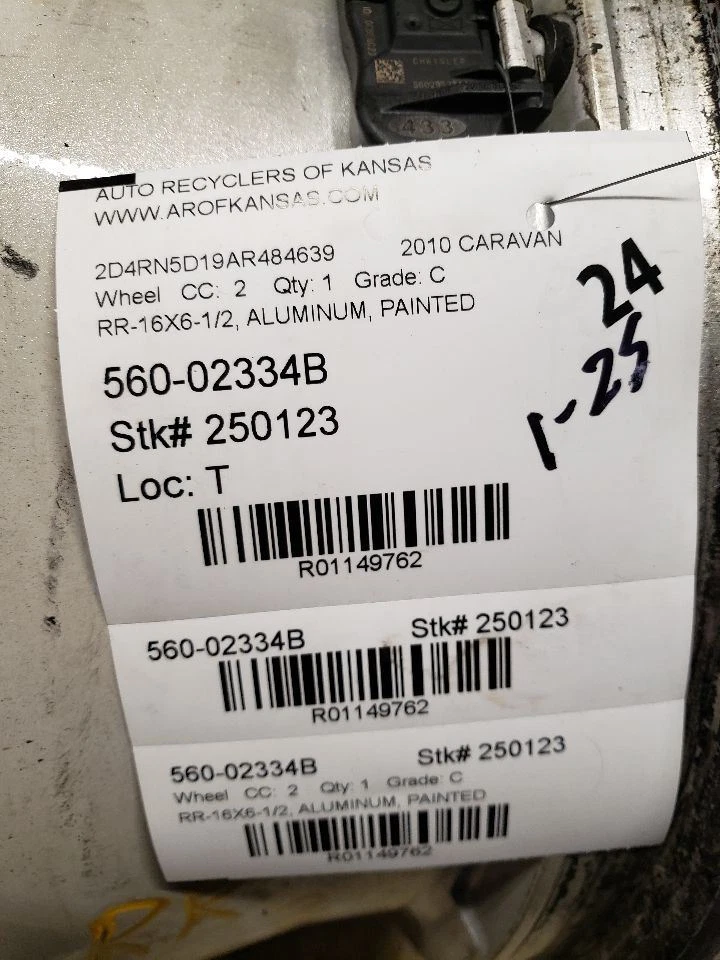 Welcome to our eBay Store! Wheel 16x6-1/2 Aluminum 5 Spoke Painted Finish Fits 08-13 CARAVAN 1149762 Description Please read the entire listing before bidding. Our parts are not new! We sell only recycled automotive parts! All parts are tested to the fullest means possible to ensure only the highest quality products are listed in our eBay Store. We make every effort to provide you with the best photos of the product listed. All our wheels are sold individually without tires, center caps and TPMS sensors are not guaranteed. Donor Vehicle VIN: 2D4RN5D19AR484639 Model: CARAVAN Year: 2010 Mileage: 0 (0 = not available or unknown) Stock Number: 250123 Store Number: 1 Part Detail Part Grade: C Part Category: U Part Placement: Notes: RR-16X6-1/2, ALUMINUM, PAINTED This part will fit these makes and models with these options CARAVAN 08-12 16x6-1/2, aluminum, painted finish CARAVAN 13 16x6-1/2, aluminum (5 spoke), painted finish WARRANTY / GUARANTEE Most parts we sell through eBay Motors come with a 30-day money back guarantee unless otherwise stated. The 30 day period starts when you take possession of the part. No labor warranty is provided. In the event a part sold with a warranty fails to operate within the warranty period we will replace the part(s) with a functionally equivalent part or refund the part purchase price, at our option. To return an item you must contact us via eBay Message within the 30 day period to obtain a RMA number (return material authorization). Original shipping charges and return shipping charges are not refunded. Once you obtain an RMA number, ship the item back to Auto Recyclers of Kansas, 1200 E Macarthur, Wichita, KS 67216 along with the RMA number. SHIPPING NOTES ABOUT US HELP Auto Recyclers of Kansas ships to US addresses within the 48 states only via UPS ground. International orders are sent via ebay's Global Shipping Program . Pick up at our facilities is available. Please message us prior to your purchase to arrange pick up. Items will be shipped within 1-2 days of purchase. Please allow up to 10 days for delivery unless item falls under ebay's Guaranteed Delivery p rogram. Most areas in the US are within 5 days. If an item arrives damaged, please contact us via eBay Message within 24 hours for instructions. If you have a question about a part please contact us BEFORE purchasing. Our main contact method is by eBay Messages. We try to answer all messages within 24 hours. If we are unable to answer your questions before the listing ends the item will be re-listed again soon for you to purchase. Core Charge. Core is an acronym for ‘Cash On Return’. A core charge is sometimes applied to rebuildable parts such as engines or alternators that can be redeemed for a portion of their original price. If the part you are purchasing has a core charge applied, it will be noted in the description. Parts Grading. A standard code system is used to communicate the condition and quality of a part between automotive recyclers, automotive repair shops, and insurers. Knowing how these codes are used will help you understand whether the part meets your expectations before you buy it and what you can expect from the part when you receive it. A Grade - The highest quality part. It is of low miles and/or exceptional condition for its age. B Grade - The second level quality part. It is of average miles and normal condition for its age. C Grade - The third level quality part. It has high miles and/or light damage. No Grade - A part that has not yet been graded.