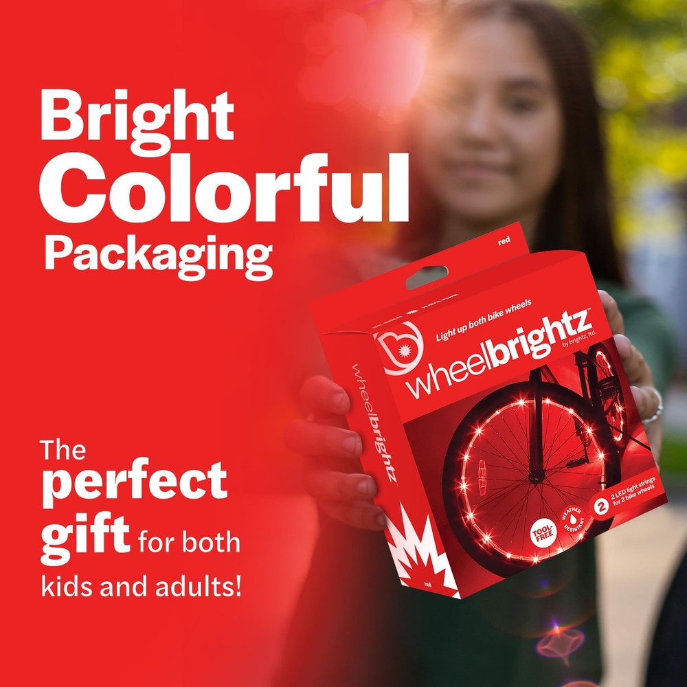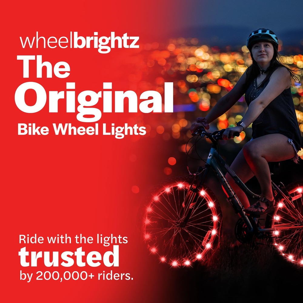 Illuminate your night rides with WheelBrightz LED Bike Wheel Lights, the perfect blend of safety and style for any cycling enthusiast who likes led lights for bikes. Designed to shine, our LED lights for bikes riding at night and bike reflectors for night riding are not just regular bike wheels & accessories; they are essential gear for visibility and flair. Whether cruising city streets or navigating country roads, our LED light for bike ensures you're seen and safe. With WheelBrightz led lights for bicycle, customizing your ride has never been easier. Our LED lights for bike wheels are tailored to fit any wheel size, turning your ride into a moving light show. Ideal for both serious cyclists and casual riders, our products are the epitome of biking accessories, combining functionality with fun. Equip your bicycle with mini bike lights for that extra sparkle, or choose from our specialized collections like bike lights kids and bike lights for kids, designed to keep your loved ones safe and sound. But WheelBrightz doesn't stop at illumination. Our range includes girl bike accessories and cute bike accessories to personalize your bicycle, making every journey uniquely yours. For the younger riders, our kids bike accessories girls and kids bicycle accessories offer both safety and style, ensuring they're equipped and excited for every ride. Our products are crafted for durability and ease of use. The bike led lights for night riding not only enhance visibility but also add a cool factor to your night-time adventures. Boys bike accessories, light for bike, and bicycle tire lights – we have everything to make your bike stand out. Our bicycle spoke lights add a touch of elegance to any wheel, while our lights for bicycle keep you visible from all angles. WheelBrightz ensures that every ride is a bright one. Whether it's for you or your kids, our kid bike accessories, including the kids bike light and bike wheel light, are designed to light up the path ahead. UNIVERSAL FIT - wheel lights for bike tires designed for night riding ensure safety with style. These lights fit 20" - 29" wheels but can be cut-to-size to fit all wheel sizes making them perfect kids bike accessories for all ages BATTERY POWERED - With a 48+ hour battery life using 3 AA lights per bike wheel (not included), these colorful bicycle lights are great as bike accessories for kids. The bright colorful packaging also makes these perfect Christmas or birthday gifts VERSATILE & WATERPROOF - Designed to be cut or spiraled for a custom fit, these make for a versatile bicycle light. They're perfect as bike accessories for kids, ensuring visibility and style for bike lights for wheels and bike spoke decorations BE COOL! BE SEEN! - Equip your bike with our versatile LED bicycle lights for night riding. Designed for universal wheel compatibility, these decorative bike led lights enhance safety and style, enchanting paths for kids, teens, and adults alike INSTALLATION IN A SNAP - Our easy-to-install bike spoke lights are battery-powered and ready to go. Perfect as kids bike accessories for boys, and girls of all ages, and even bike enthusiasts at raves like burning man. Ride and shine in style