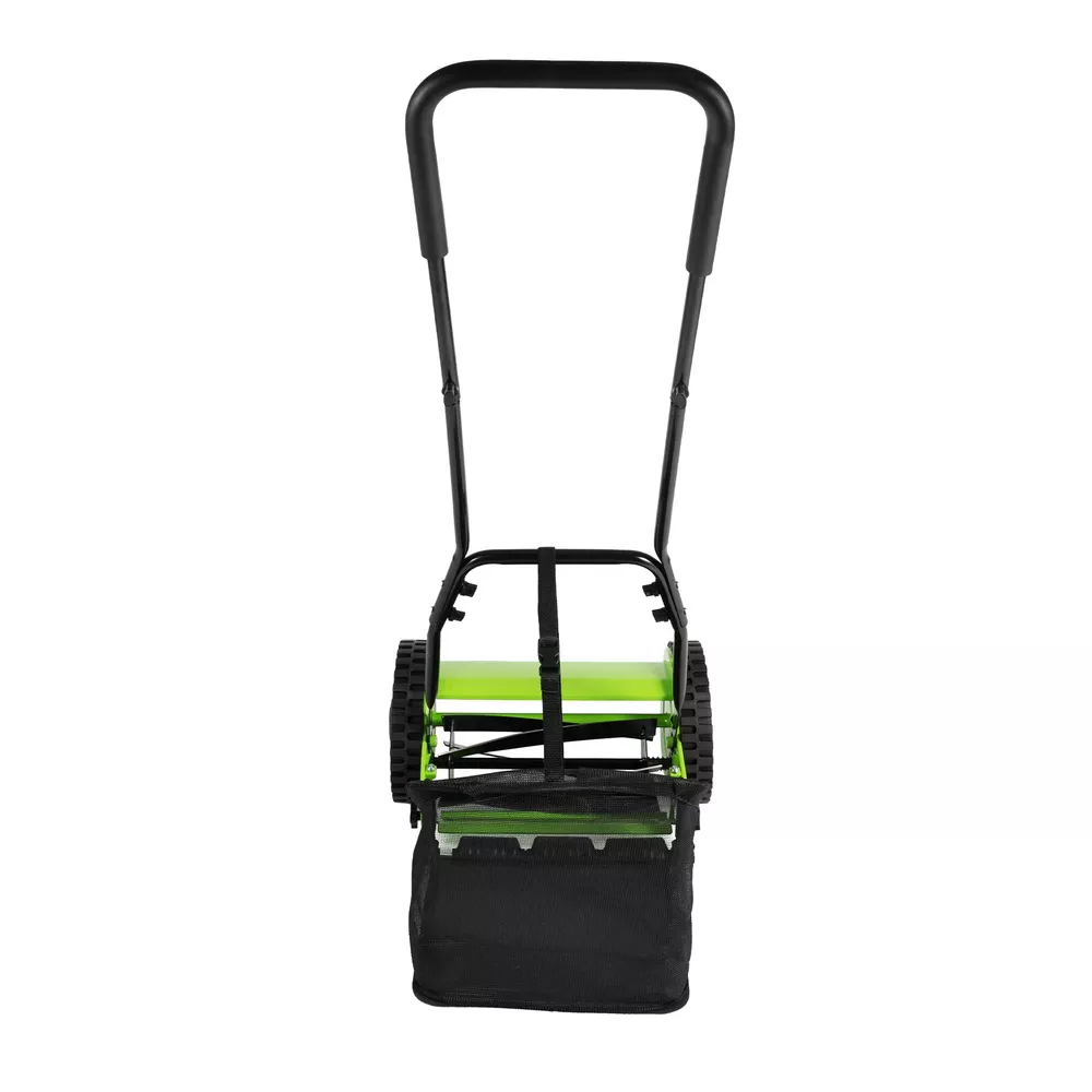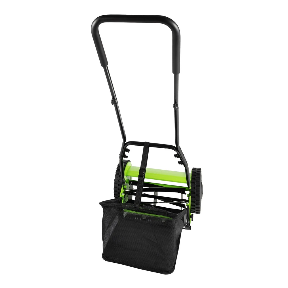 Specifications Material: Iron, Plastic, 65 Manganese Steel, Nylon, Sponge Surface Treatment: Spray Paint Process, Electroplating Process, Heat Treatment Process Color: Green, Black Style: Simple, Practical Assembly Required: Yes Power Source: Manual Cutting Width: 300mm/11.81inch Adjustable Cutting Grass Height: 12-45mm/0.47-1.77inch Grass Catcher Max Capacity: 23L/6 Gallons Number of Blades: 5 PCS Wheel Diameter: 21.5cm/8.46inch Distance Between Two Wheels: 34cm/13.38inch Grass Catcher Size: 26*32*27cm/10.23*12.59*10.62inch U-shaped Tube Diameter: 1.9cm/0.75inch Two Extension Pipes Length: 42cm/16.53inch Gross Weight: 6.85kg/15.1lbs Net Weight: 6.05kg/13.33lbs Product Size After Installation: 61*44*109cm/24.01*17.32*42.91inch Package Size: 50*40*23cm Wheeled 5-Blade Lawn Mower Manual Reel Push Walk Behind Dual Adjustable Height Description Are you still worried that weeds make the garden messy and ugly? Our manual lawn mower can help you solve this problem very well. It has 5 blades with 65manganese steel material, a big nylon material grass catcher, and iron pipes, which is a good assistant in your weeding work and gives you a smooth and beautiful lawn in a short time. Key Features Durable and Sturdy: It consists of 65manganese steel blades with a heat treatment process, a thicken iron U-shaped tube, a nylon grass catcher, and iron extension pipes with an electroplating process, making it wear-resistant , rust-resistant , corrosion-resistant , and sturdy. Large Capacity: The capacity of the grass catcher with a sling is about 6 gallons, which can collect more grass at one time, so you can use it for a long time without frequently removing weeds in the grass catcher. High Working Efficiency: This lawn mower is equipped with 5 manganese steel blades and has a cutting width of up to 11.8 inches. It takes less time to mow the same amount of lawn area, so you get a smooth and tidy lawn in a short time. Adjustable Height: The grass-cutting height is 0.47-1.77 inches, which can be adjusted by a triangle knob behind wheels according to the actual situation of the lawn and your actual needs. It is possible to keep the grass at the same height even on lawns of different heights, making the lawns more neat and beautiful. Easy to Clean: The detachable design and smooth surface make this lawn mower convenient to rinse with water directly, saving your time and energy. User-friendly Design: The U-shaped handle is wrapped with sponge material that can prevent slipping and protect your hands. Also, the two 8.46-inch diameter wheels with grooves surface make it have high friction force and anti-slip , allowing you to push it easily on the grass. Simple Installation: This lawn mower can be assembled easily by using screws, and the detailed installation instructions can help you quickly complete the installation in a short time. Guaranteed Customer Service: Your satisfaction is our primary goal. If you have any question about this manual lawn mower, please feel free to contact us, we will reply and provide the solution to you as soon as possible. Details Blades Cover: It is made of high-quality plastic with a spray paint process, which can protect you from getting hurt. Two Extension Pipes: They can be fixed with the U-shaped handle, making the handle longer. So you don't need to bend down during weeding, making weeding work easier. Plastic Auxiliary Wheel: It can help the lawn mower move forward stably and easily when you use this lawn mower, which makes you feel as easy as on flat ground. Application The lawn mower has a 11.81-inch cutting width and can cut the 0.47-1.77inch height of grass, and can be widely used for sidewalks, driveways, courtyards, park greenings, factory greenings, gardens, meadow forests, residential villages, and other kinds of lawns. Specifications Material: Iron, Plastic, 65 Manganese Steel, Nylon, Sponge Surface Treatment: Spray Paint Process, Electroplating Process, Heat Treatment Process Color: Green, Black Style: Simple, Practical Assembly Required: Yes Power Source: Manual Cutting Width: 300mm/11.81inch Adjustable Cutting Grass Height: 12-45mm/0.47-1.77inch Grass Catcher Max Capacity: 23L/6 Gallons Number of Blades: 5 PCS Wheel Diameter: 21.5cm/8.46inch Distance Between Two Wheels: 34cm/13.38inch Grass Catcher Size: 26*32*27cm/10.23*12.59*10.62inch U-shaped Tube Diameter: 1.9cm/0.75inch Two Extension Pipes Length: 42cm/16.53inch Gross Weight: 6.85kg/15.1lbs Net Weight: 6.05kg/13.33lbs Product Size After Installation: 61*44*109cm/24.01*17.32*42.91inch Package Size: 50*40*23cm/19.68*15.74*9.05inch Package Included 1*Manual Lawn Mower 1*U-shaped Handle 1*U-shaped Tube 1*Grass Catcher 2*Extension Pipes 1*English Manual All Accessories for Assembly Notes Please read the operating manual completely before use. And pay particular attention to the safety instructions included. It only can be applied for regular lawns, not for messy weeds. Please allow the slight color difference caused by the shooting light and 1-3cm error due to manual measurement, and make sure you do not mind before you order. Payment Delivery details Terms of sales About us Contact us Payment We accept ebay payment 。 Fees such as import duties, taxes are not included in the item price or shipping costs. These charges are the buyer's responsibility. Delivery details Shipping: 2-9 working days to: USA Terms of sales We maintain high standards of excellence and strive for hundred percent customer satisfaction. Feedback is very important to us. We hope that you contact us immediately before you give neutral or negative feedback, so that we can address your concerns. It is impossible to address issues if we do not know about them! About us Your satis faction is our ultimate goal. We work hard to earn your trust and future business. Our certified technicians have tested each item before shipping. The unit comes with 1 year limited warranty on all manufacturing defects. a) If you receive a defective item, you may re
