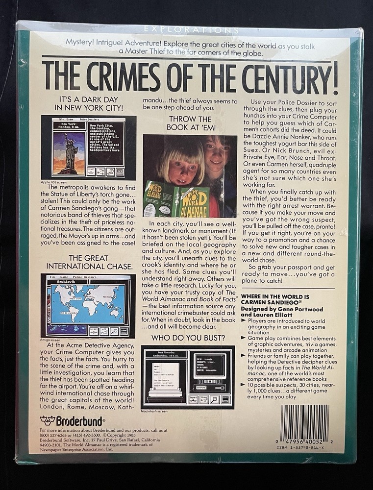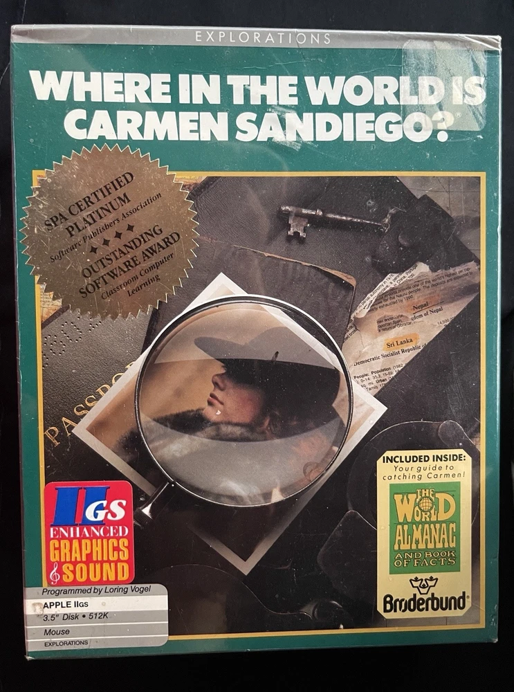Where in the World Is Carmen Sandiego? 3.5" Apple II GS Brand New 1985 Vintage Apple video game Complete with the world almanac as seen in pictures