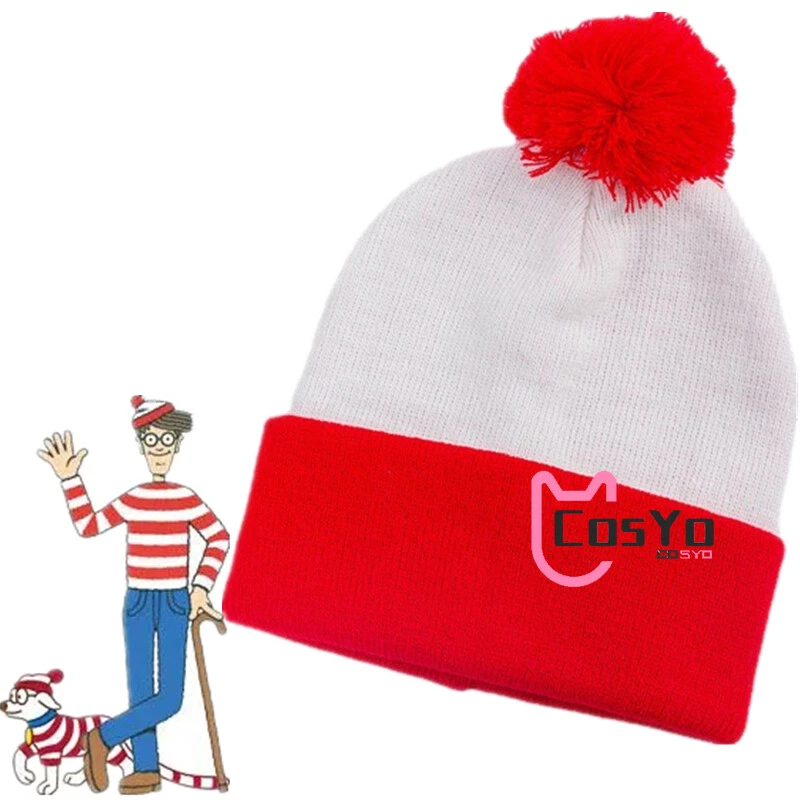 Where's Wally Waldo Costume Winter Warm Beanie Christmas Red White Knitted Hat