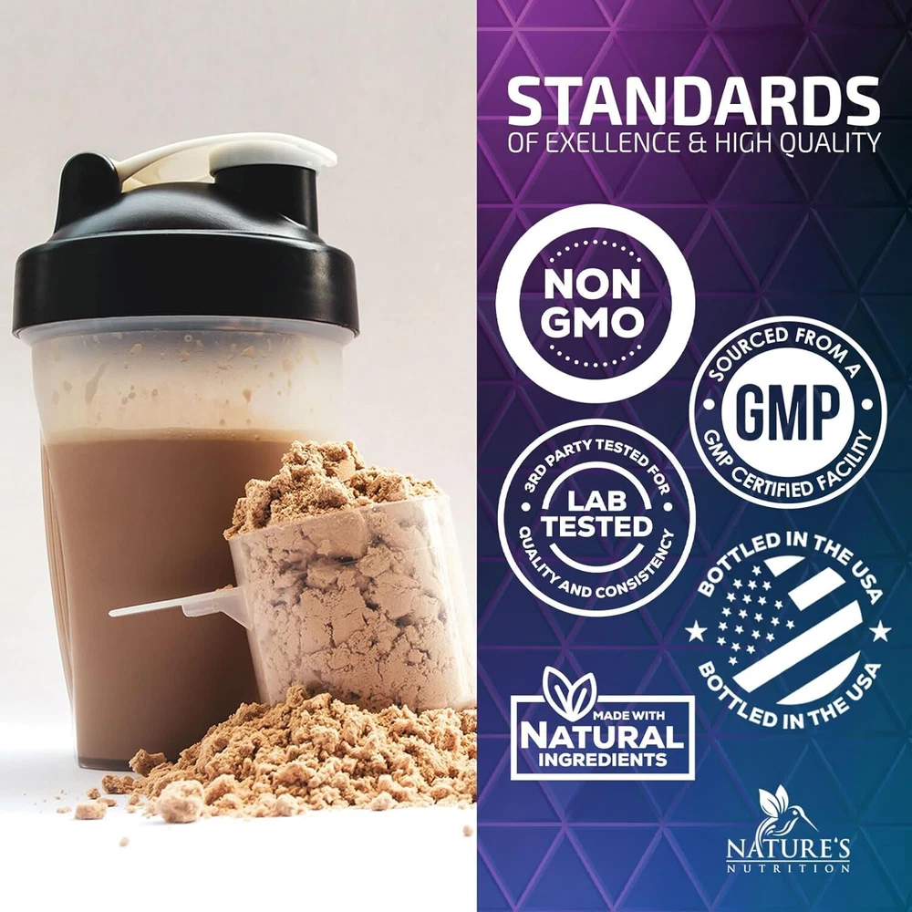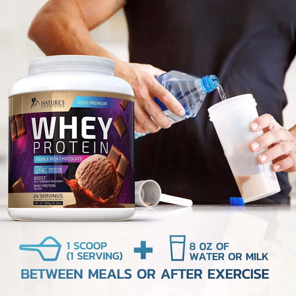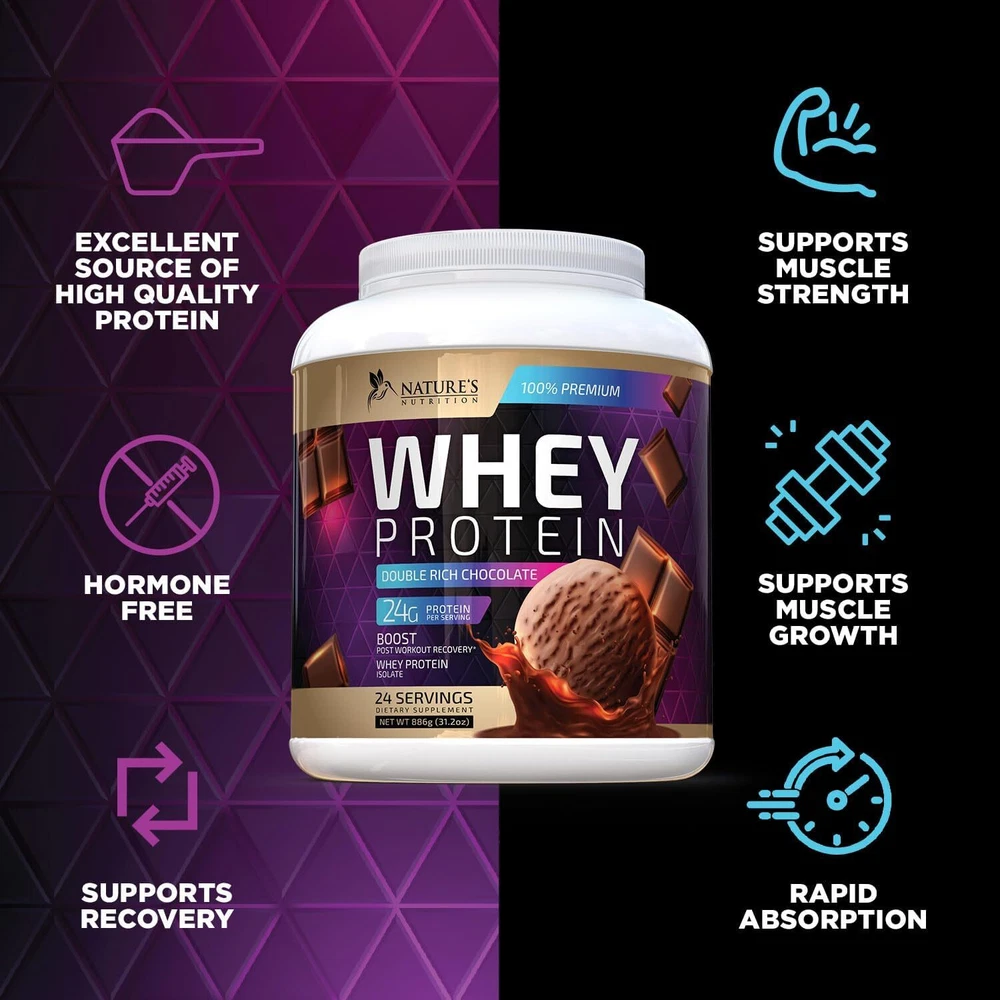 Whey Protein Powder 24g - Isolate for 31.02 Ounce (Pack of 1) Product Details Package Dimensions : 9.53 x 5.47 x 5.43 inches; 1.94 Pounds Item model number : NNProteinChocolate24 Manufacturer : Nature's Nutrition Brand: Nature's Nutrition Flavor: Chocolate Item Weight: 31.06 Ounces Protein Source: Whey Unit Count: 31.02 Ounce Premium Whey Protein Isolate: Each serving delivers 24g of high-quality whey protein, engineered for optimal muscle growth support; It's a top choice for those seeking the best protein powder to support muscle recovery and building efforts Rapid Absorption: Featuring fast-absorbing whey protein, our premium formula helps nutrition delivery to muscles post-workout, Ideal for post-workout recovery, it's among the best protein powders for quick muscle support Chocolate Ice Cream Flavor: Indulge in the guilt-free taste of chocolate ice cream; This whey protein powder mixes into a delicious, creamy shake, making it a delightful treat for both men and women Easy Digestion: Our gluten-free whey protein powder is easy on the stomach, ideal for individuals with sensitive digestive systems, ensuring comfort and effective nutrient absorption Whey Protein Powder is a versatile supplement designed for muscle support and overall nutrition. It comes in various forms such as hydrolyzed, grass-fed, clean formulations. Available flavors like chocolate, vanilla, unflavored, it can be used shakes smoothies. Popular options include whey isolate concentrate. 1 100 2 30g body bulk calorie carb chocolate dairy double fed free gain gainer gluten gold grass high hydrolyzed ingredients keto lactose low may men milk na natures no non nutrition of on packaging plant poweder premier proteina protien shake smoothies soy standard sugar unflavored vanilla vegan women workout zero Whey Protein Powder 24g - Chocolate Ice Cream Whey Isolate Protein for Muscle Growth Support - 100% Whey Powder for Fast Absorbing and Easy Digesting for Men and Women, Gluten Free