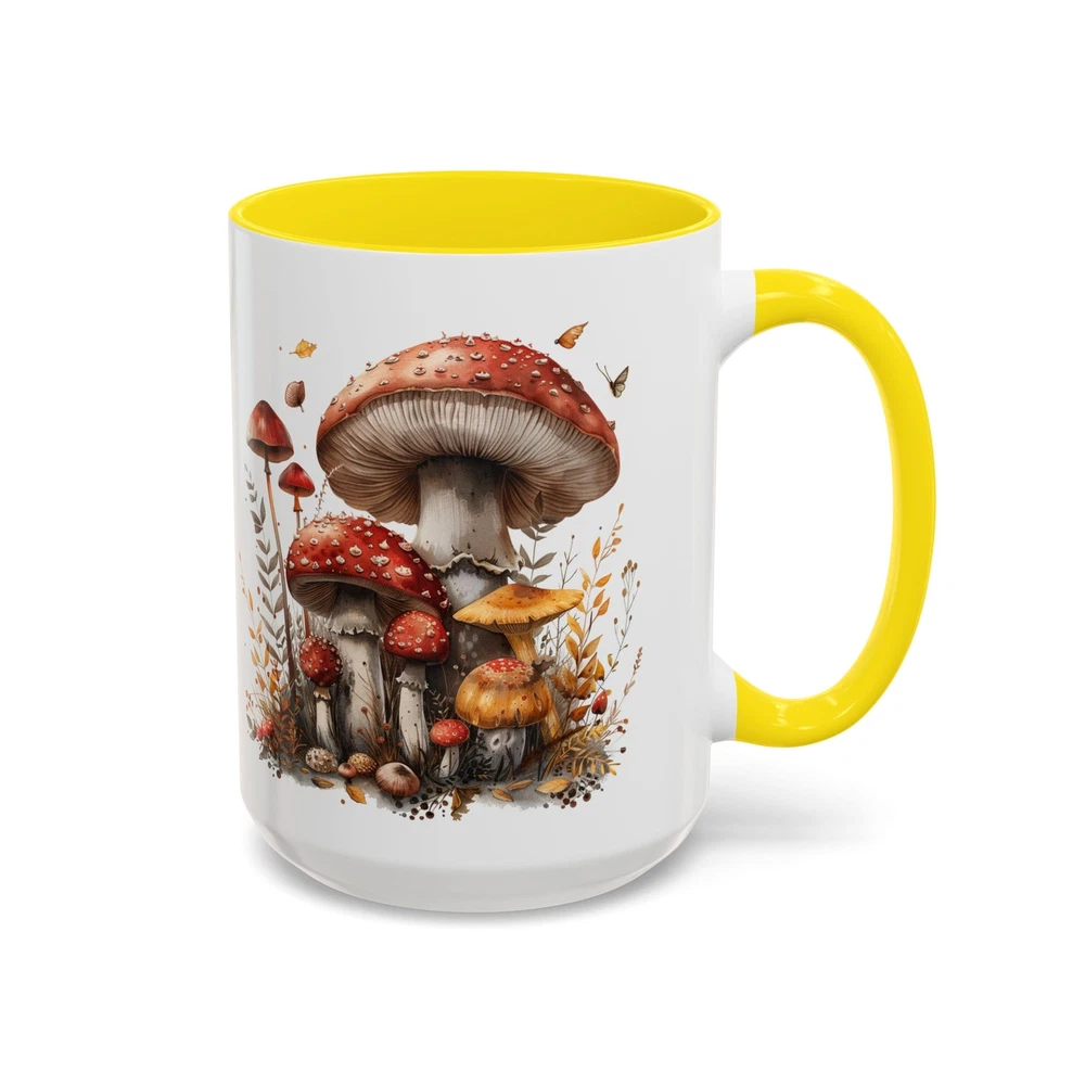 Vintage vibes mushroom mug. Perfect for coffee enthusiasts and tea lovers alike, this mug elevates your morning rituals with its eye-catching design and colorful interior. The mushroom design brings a touch of whimsy to your daily routine, making every sip a delight. Let this mug be a part of your life's simple pleasures and celebrations, resonating with anyone who appreciates playful, functional art in their kitchen. Product features - Microwave-safe for convenient heating - Dishwasher-safe for easy cleaning - Vibrant colors for a striking appearance - Crafted from durable white ceramic - Available in two sizes: 11oz and 15oz Care instructions - Clean in dishwasher or wash by hand with warm water and dish soap