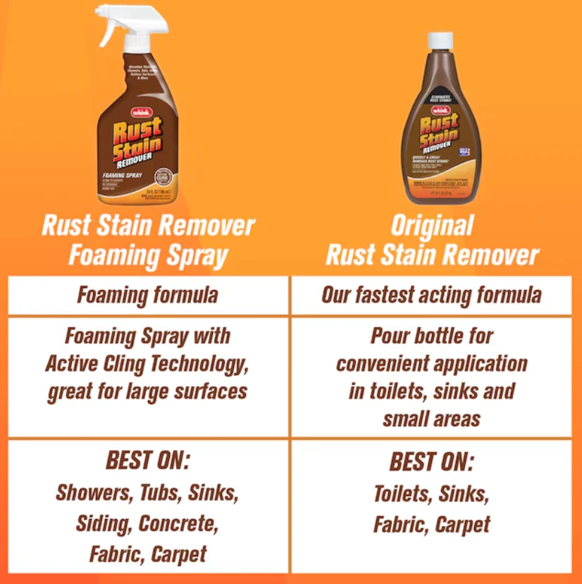 Whink 349944 Foaming Rust Stain Remover 24 Oz Remove stubborn rust stains quickly and effectively with Whink Foaming Rust Stain Remover . This fast-acting formula is specially designed to break down tough liquid rust stains, restoring surfaces to a clean, bright finish without heavy scrubbing. About This Product Whink’s powerful foaming action works immediately to dissolve rust stains on a variety of household surfaces. Unlike products that simply fade or mask stains, this formula completely removes rust discoloration , leaving sinks, toilets, and other affected areas sparkling clean. Ideal for use on white sinks, white toilets, colorfast fabrics, and carpets , this easy-to-use liquid solution requires no scrubbing for most applications. It is safe for all pipes and septic systems, making it a convenient and reliable addition to your cleaning routine. (Not intended as a general-purpose rust remover.) Key Features & Benefits Foaming Rust Formula: Breaks down tough liquid rust stains No Scrubbing Required: Easy and convenient stain removal Fast-Acting Treatment: Works immediately on stubborn stains Surface Brightening: Leaves a clean, sparkling finish Multi-Surface Use: Safe for white sinks, toilets, fabrics & carpets Septic Safe: Safe for all pipes and septic systems Perfect For Bathroom sinks & toilets Laundry rust stains Carpet & colorfast fabric spots Household rust treatment applications Product Specifications Brand Whink Model 349944 Product Type Foaming Rust Stain Remover Size 24 Oz Application Liquid Rust Stain Removal Septic Safe Yes Condition New ✔ Fast and effective rust stain removal ✔ No scrubbing required ✔ Safe for septic systems ✔ Restores surfaces to a bright finish