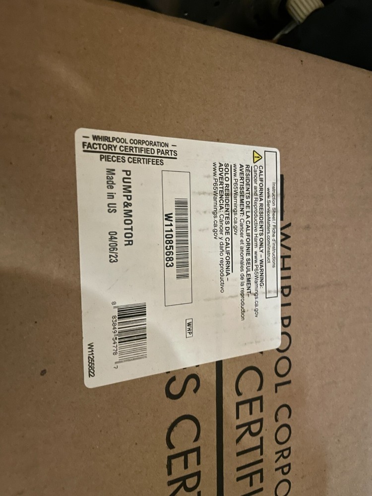 NEW OEM Whirlpool Dishwasher Pump & Motor W11085683 Part Number W11665769 replaces W10917110, W11085683, W11164469 Models it applies to: ADB1500ADB4-MAC ADB1500ADS4-MAC ADB1500ADW4-MAC ADB1700ADB4-MAC ADB1700ADS4-MAC ADB1700ADW4-MAC ADB1500ADB4-WPL ADB1500ADS4-WPL ADB1500ADW4-WPL ADB1700ADB4-WPL ADB1700ADS4-WPL ADB1700ADW4-WPL IDT830SAGS0-WPL KDFE104DBL5-WPL KDFE104DSS5-WPL KDFE104DWH5-WPL KDFE104HBL0-WPL KDFE104HBL1-WPL KDFE104HBS0-WPL KDFE104HBS1-WPL KDFE104HPS0-WPL KDFE104HPS1-WPL KDFE104HWH0-WPL KDFE104HWH1-WPL KDPE234GBS0-WPL KDPE234GPS0-WPL KDTE104EBL4-WPL KDTE104EBS4-WPL KDTE104ESS4-WPL KDTE104EWH4-WPL KDTE234GBL0-WPL KDTE234GBL1-WPL KDTE234GBS0-WPL KDTE234GBS1-WPL KDTE234GPS0-WPL KDTE234GPS1-WPL KDTE234GWH0-WPL KDTE234GWH1-WPL WDF560SAFB2-WPL WDF560SAFM2-WPL WDF560SAFT2-WPL WDF560SAFW2-WPL WDF590SAJB0-WPL WDF590SAJM0-WPL WDF590SAJW0-WPL WDT705PAKB0-WPL WDT705PAKW0-WPL WDT705PAKZ0-WPL WDT710PAHB1-WPL WDT710PAHW1-WPL WDT710PAHZ1-WPL WDT730PAHB0-WPL WDT730PAHV0-WPL WDT730PAHW0-WPL WDT730PAHZ0-WPL