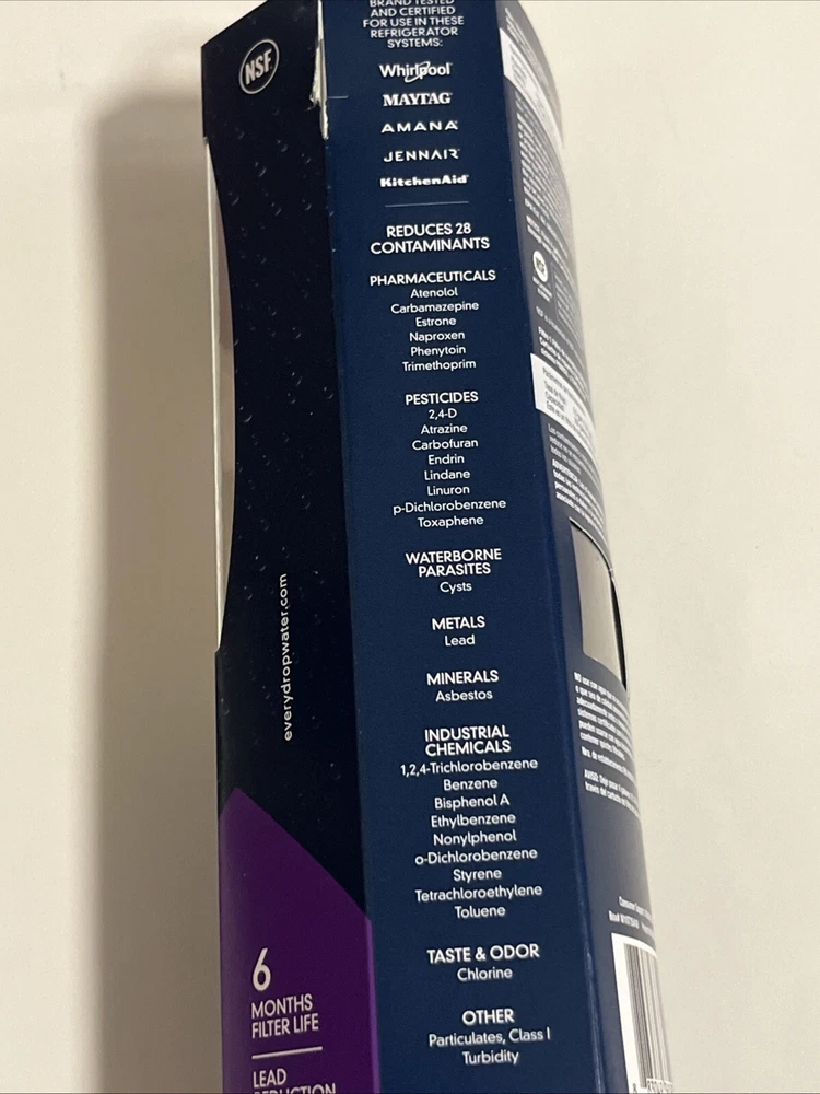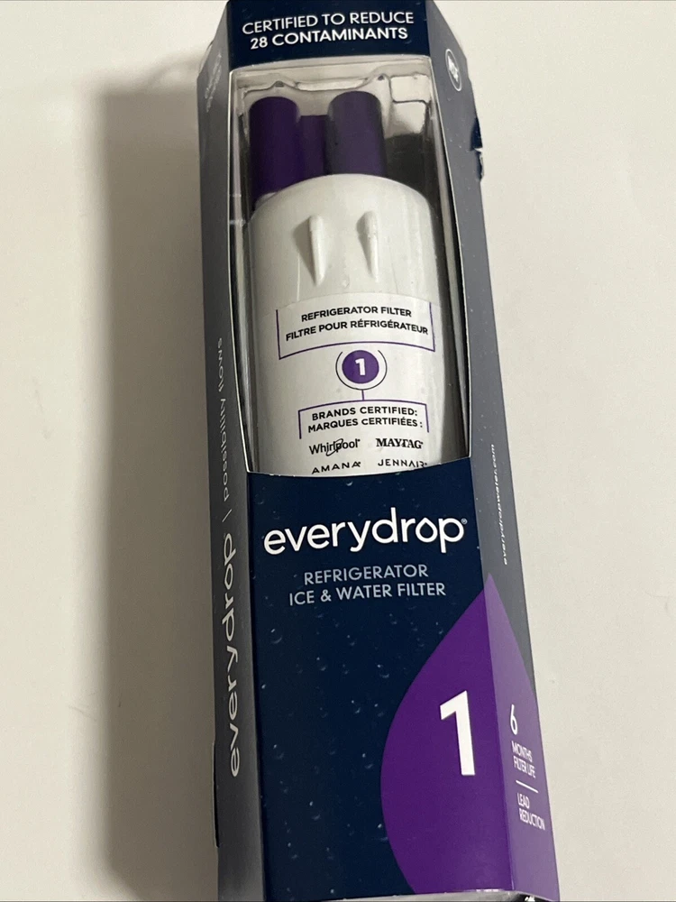 This EveryDrop water filter is the perfect addition to any household refrigerator. It effectively removes chlorine taste and odor from your drinking water, ensuring that you always have clean and refreshing water on hand. With a capacity of .5 gpm, this unit is suitable for small to medium-sized households.The filter is compatible with many different models and brands of refrigerators, and the plastic material ensures that it will last for a long time. EveryDrop 1 is the model name of this unit, and it comes in a pack of one. Whether you're looking to purify your water for drinking or simply want to remove impurities from your ice, this filter is the ideal solution. Please review photos.