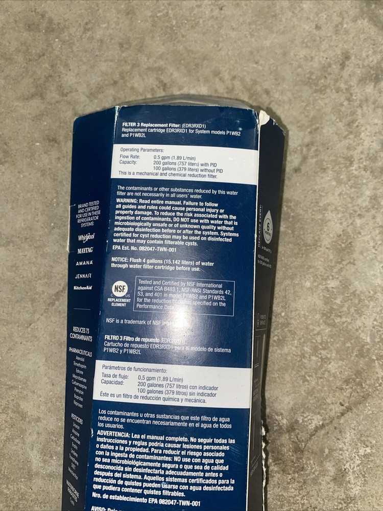 Model: Everydrop Filter 3 Brand: Whirlpool Type: Water Filter gtin13: 883049361161 Suitable For: Household Color: White UPC: 883049361161 Compatible Model: Does not apply MPN: Does not apply Contaminant Removal: Chlorine Taste & Odor Number in Pack: 1 Size: 1 Count (Pack of 1)