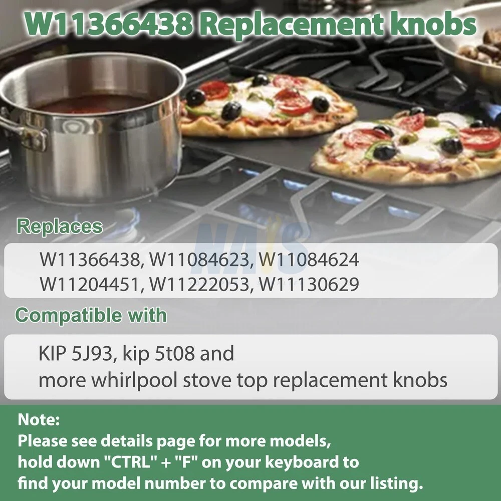 Durable: The metal sleeve on the back of the W11366438 Whirlpool oven knobs, which fits over the burner control rod on the range, is durable and designed to resist movement during use and can withstand heat and regular use. Easy to install: 1. Take off the Existing Knobs: Ensure that the knobs on the Whirlpool gas range are turned off securely, then grab the replacement knobs for the Whirlpool range and pull them away from the stove. 2. Put on the New Knobs: Line up the replacement knobs for the Whirlpool stove with the stem or shaft of the replacement parts and ensure that the Whirlpool cooktop knobs are in the “off” position. 3. Check the Functionality: Turn the Whirlpool knob slightly to confirm that the replacement accessories are functioning correctly. Compatible with Whirlpool Range Parts Number: Whirlpool W11366438, W11084623, KIP 5T08, KIP5T08, W11084624, W11204451, W11222053, W11130629, KIP 5J93 and more, wcg77us0hs knobs, wcg55us6hs00 knobs, wcg55us0hs00 knobs, wcg97us0hs00 knobs, wcg97us6hs00 gas knob, whirlpool range knob 5j93 part w11222053 w10850010, wcg77us0hs00 knob, wcg55usohs00 knob whirlpool, wcg97us6hsoo stove control knobs. Compatible with Whirlpool Gas Stove Parts: Whirlpool WCG55US6HS00, WCG55US6HS, WCG77US0HS, WCG97US0HS05, WCG55US0HS00, WCG97US6HS00, WCG97US0HS00, WCG97US6HS, WCG55US6HS05, WCG77US0HS00, WCG77USOHS00, WCG77USOHS00, WCG55USOHS00, WCG97US6HSOO, WCG55US0HS05, WCG55US0HS and more, wcg55us6hs knobs. Precautions: Make sure to turn off and allow the gas stove parts to cool down before beginning the removal process to avoid any accidental burns or injuries. If you are unsure about the compatibility of the W11366438 electric stove knobs assembly with your Whirlpool range knobs, we are happy to help you. On Jun 9, 2025 at 10:07:07 PDT, seller added the following information: