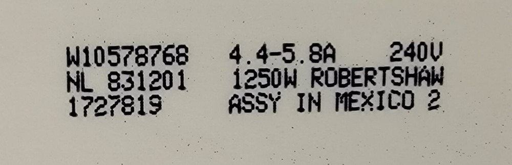 Whirlpool Genuine Broil Element Replacement Part W10544951