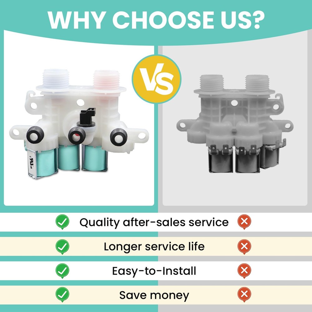 W11096268 (W11220230) Water inlet valve This water inlet valve part number W11096268(W11220230) is for washers. Water inlet valve W11096268(W11220230) controls the water flow into the washer. Package Includes: 1 × W11096268 (W11220230) Water inlet valve Specifications: 120V 60Hz Fixes the following symptoms: Fixes whirlpool error codes: E1 F8 FL LF LO etc. The washer not to fill properly or not fill at all etc. Directly Replaces: W11220230 W10632527 W10758829 W10853296 W11096268 AP6329544 4591408 PS12349461 EAP12349461 etc. Fits Brands and Compatible Models: whirlpool & Kenmore etc. Compatible Models:7MWTW7000EW1 7MWTW7300EW0 7MWTW7300EW1 MVW6200KW0 MVW6230HC0 WTW6120HC0 WTW6120HC1 WTW6120HW0 WTW7000DW0 WTW7000DW1 WTW7000DW2 WTW7000DW3 WTW7000DW4 WTW7040DW0 WTW7040DW1 WTW7040DW2 WTW7120HC0 WTW7300DC0 WTW7300DW0 WTW7300DW1 WTW7300DW2 WTW8000DW0 WTW8000DW1 WTW8000DW2 WTW8000DW3 WTW8000DW4 WTW8000DW5 WTW8040DW0 WTW8040DW1 WTW8040DW2 WTW8040DW3 WTW8040DW4 etc. Please Note: 1.Unplug the washer and shut off the water supply before installing this part. Wear work gloves to protect your hands. 2.The brands mentioned above are their own and are mentioned here only to prove compatibility. 3. If you are unsure our replacement part will fit your appliance model, you can ask in Customer questions & answers section. W11096268 (W11220230) water inlet valve:W11096268 (W11220230) water inlet valve controls the water flow into the washer.W11096268 (W11220230) water inlet valve has two threaded ports to control hot and cold water respectively.(120V 60Hz) Directly Replaces:W11220230 W10632527 W10758829 W10853296 W11096268 AP408 PS12349461 EAP12349461 etc. Solve The Following Problems:Compatible with whirl-pool ken-more error codes: E1 F8 FL LF LO etc. The washer not to fill properly or not fill at all etc. Fits Brands and Compatible Models :Compatible with whirl-pool ken-more etc.Compatible Models:7MWTW7000EW1 7MWTW7300EW0 7MWTW7300EW1 MVW6200KW0 MVW6230HC0 WTW6120HC0 WTW6120HC1 WTW6120HW0 WTW7000DW0 WTW7000DW1 WTW7000DW2 WTW7000DW3 WTW7000DW4 WTW7040DW0 WTW7040DW1 WTW7040DW2 WTW7120HC0 WTW7300DC0 WTW7300DW0 WTW7300DW1 WTW7300DW2 WTW8000DW0 WTW8000DW1 WTW8000DW2 WTW8000DW3 WTW8000DW4 WTW8000DW5 WTW8040DW0 WTW8040DW1 WTW8040DW2 WTW8040DW3 WTW8040DW4 etc. Azdele Professional Customer Service:I hope our W11096268 (W11220230) water inlet valve can solve your problem.If you need any assistance, please contact our 24-hour online service team. Azdele continually provides the warm shopping experience for all customers.We will show you a sincere attitude and satisfactory solution.