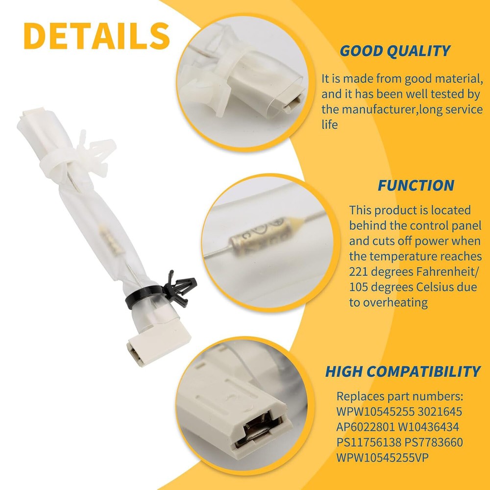 Item always Will Be Sent Out in 24 Hours From Monday to Saturday From California USA With USPS Tracking No. This thermal fuse (part number WPW10545255) is for wall ovens. This fuse prevents the oven controls from damage if there is overheating or a power surge Part # WPW10545255 Replaces : W10545255, WPW10545255VP, W10436434, AP6022801, PS11756138, 3021645 Compatible with Brands : KitchenAid, Maytag, Whirlpool, Jenn-Air, Kenmore, Amana, Magic Chef, Admiral, Roper, Norge Wide Compatibility: This replacement thermal fuse is compatible with a range of Whirlpool oven models, including but not limited to: WEGA25H0HZ, WFG975H0HV, WLSCOG1JOB, WML35011KB, WOS72EC0HS, WOS72EC7HS, WRB533CZJB, WRB543CMJV, WRQA59CNKZ, WUB35X24HZ, WVU37UC4FS, WVU37UC6FS, WVU57UC0FS, WVU57UC6FS, WVU7130JS Payment 1.We only accept PayPal. Credit card payment can also be made via PayPal.eBay Immediate Payment via PayPal. 2.Please fill in a valid contact address. Shipment Items are usually shipped 1 business days after payment has been received. We do not ship on weekends and holidays. Sellers are not responsible for service transit time. Transit times are provided by the carrier, exclude weekends and holidays, and may vary with package origin and destination, particularly during peak periods. Return Policy Out 30-day Satisfaction Guarantee assures our customers that they will receive all orders promptly and exactly as described. In addition , it allows customers to return new and unused products in their original factory condition for any reason within 30 days from the date of purchase. Notice: 1.All returns must be pre-approved by Seller and have a return merchandise authorization (RMA) number. Any problem about item, Please Send the eBay message to us ,we will respone in 24 hours 2.Buyers are responsible for appropriate packing, returning shipping cost, insurance and returning the item in “new” condition. Used items will not be accepted for return. 3.We will replace the returning item with an identical item, issue a full refund. Contact us 1.If for some reason there is any issue with the purchase, please contact us prior to leaving any negative or netrual feedback, and we will work with you to have it resolved.
