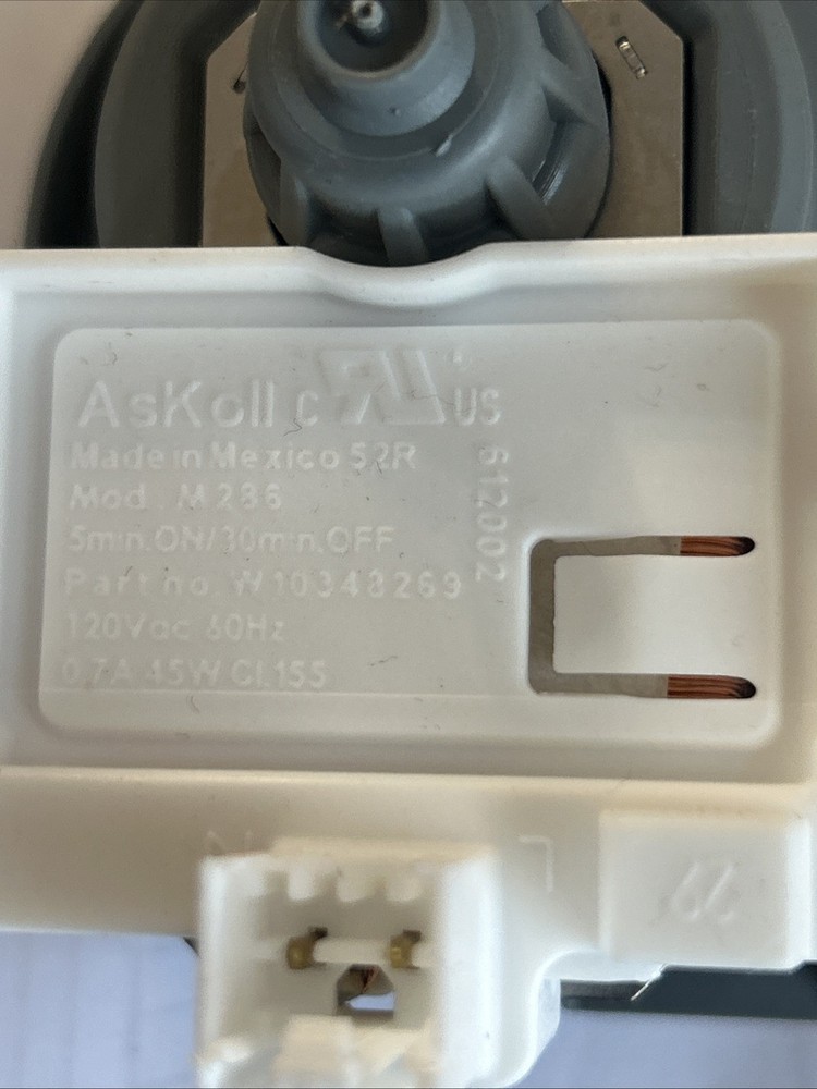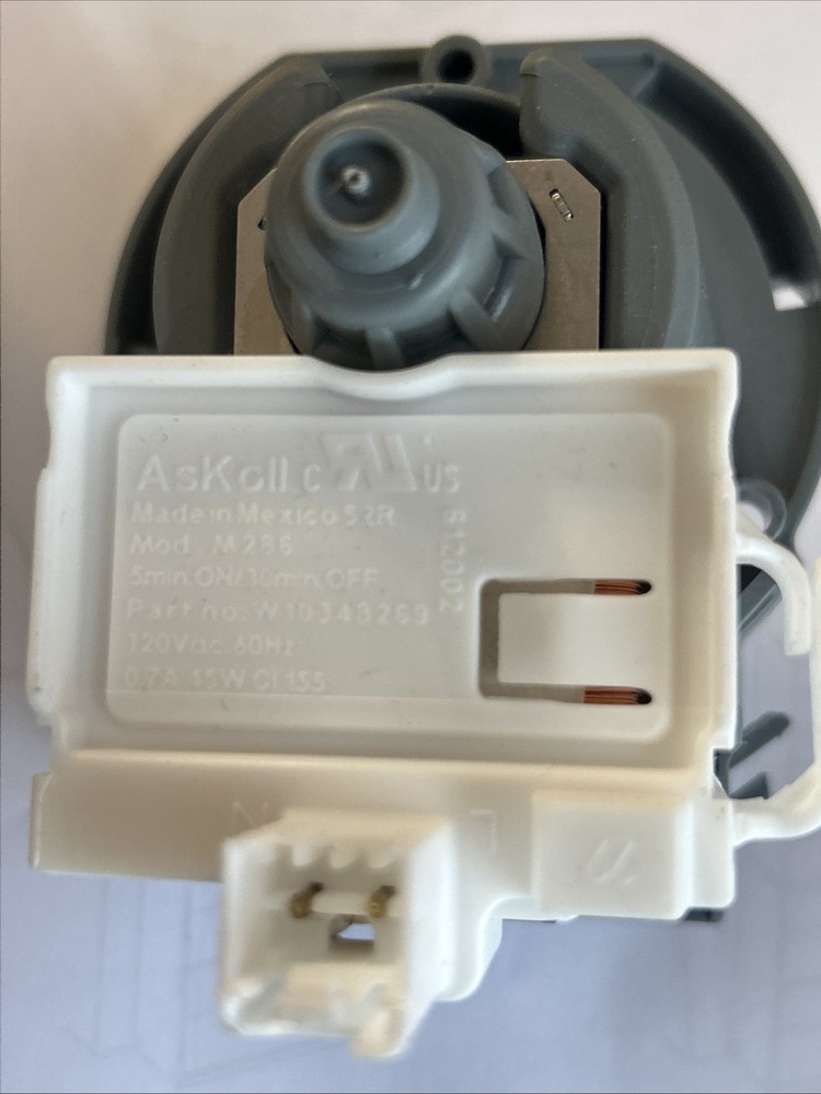 New Item Open box This high-quality Askoll M286 drain pump motor is the perfect replacement part for your Whirlpool W10348269 dishwasher. Designed to fit seamlessly with compatible model W10158351, this motor is made in Mexico and suitable for use with dishwashers. With a powerful 45W output, this motor is reliable and efficient, ensuring that your dishwasher runs smoothly and efficiently. The set includes the motor, making it easy to install and replace your old part. Say goodbye to clogged drains and malfunctioning pumps with this top-of-the-line Askoll M286 drain pump motor.