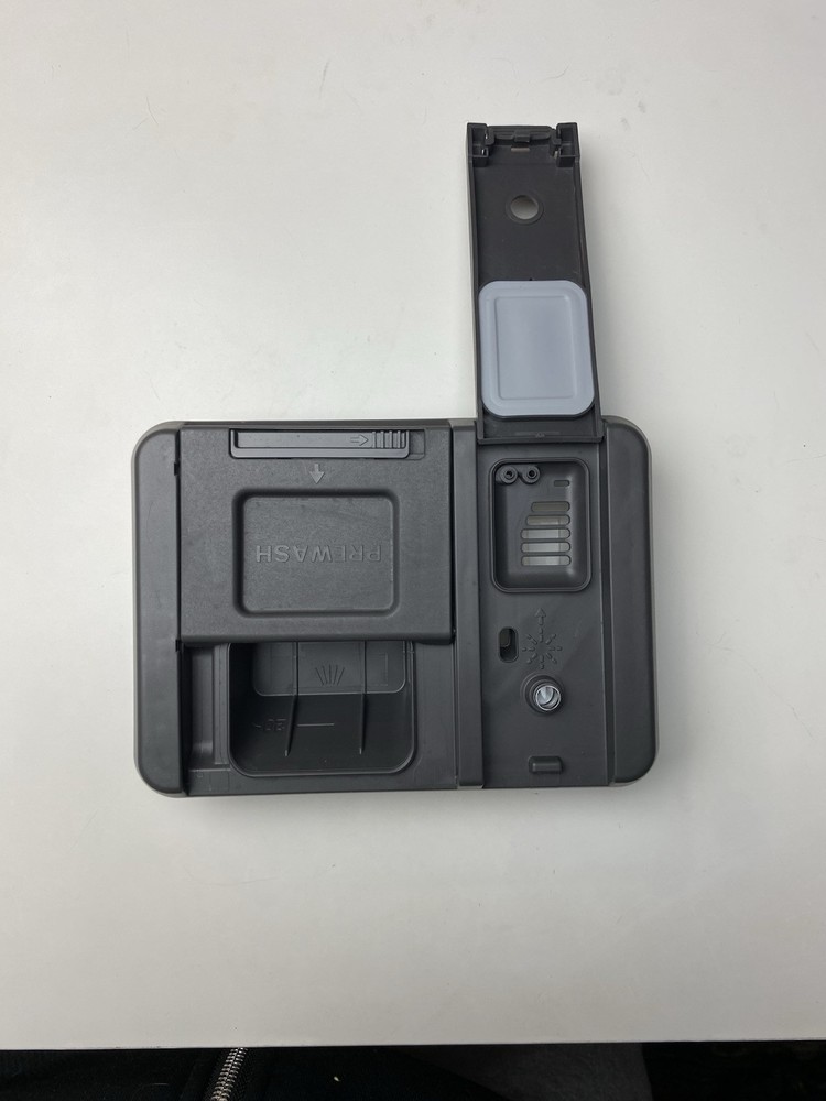 Whirlpool W11092649 Dishwasher Detergent Dispenser is a gray dispenser suitable for a dishwasher. It is a part for Whirlpool dishwashers and efficiently dispenses detergent during the wash cycle. It remove from brand new scatched dishwasher