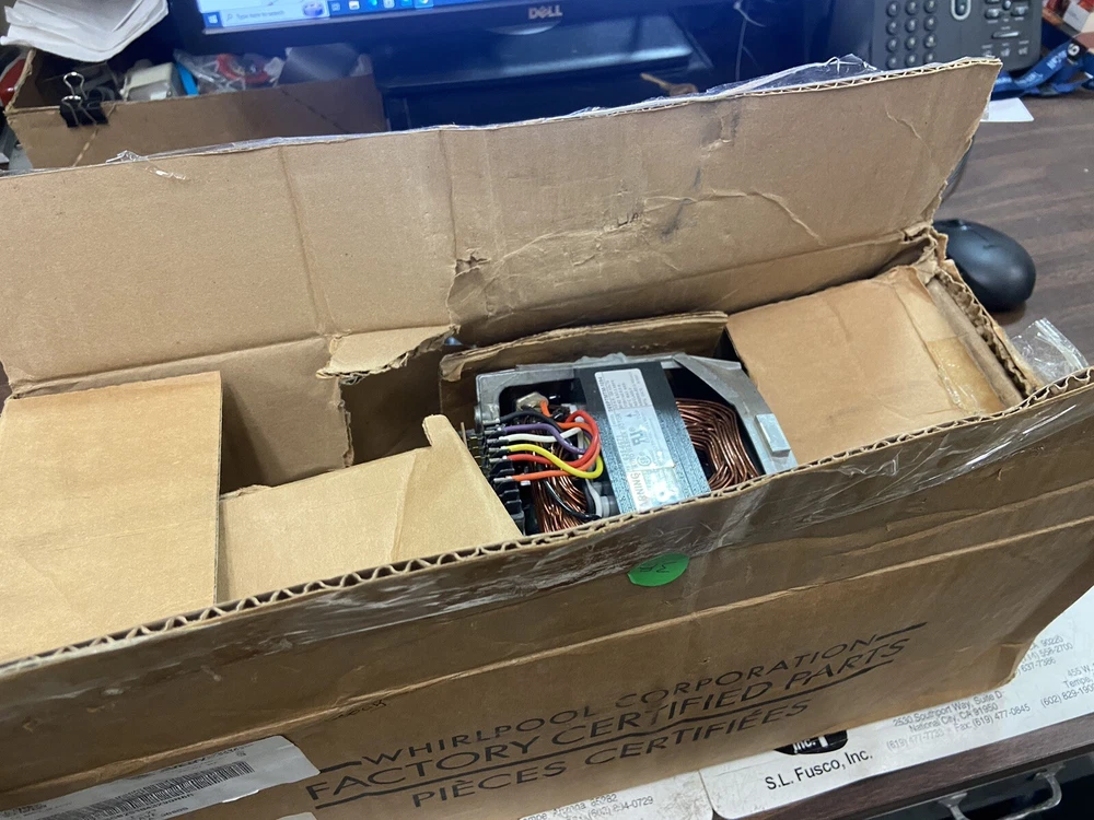 This Whirlpool WP21001950 motor has never been used and is just getting old in its original box. It is compatible with high-efficiency/importer washing machines and is suitable for anyone looking to upgrade their washer. The motor is made by Whirlpool and is designed to be reliable and efficient. The silver color of the motor adds a sleek touch to any laundry room décor. It was manufactured in Mexico and has a model number of Whirlpool WP21001950. This item falls under the categories of Washer & Dryer Parts, Major Appliances Parts & Accessories, Major Appliances, and Home & Garden.