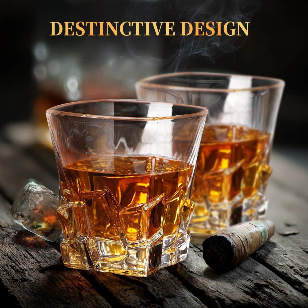 This luxury whiskey decanter set is a perfect blend of style, craftsmanship, and functionality, designed to elevate your drinking experience. Expertly crafted from premium non-lead crystal, the set features a unique and elegant design that is both visually stunning and highly functional. The 25oz decanter, complete with a glass stopper, is paired with four sophisticated 10oz whiskey glasses, offering generous capacity for serving your favorite spirits without the need for constant refills. Unique Design & Expert Craftsmanship - This whiskey decanter set boasts a distinctive and elegant design, showcasing fine craftsmanship that enhances its visual appeal and functionality. Each piece is meticulously crafted by skilled artisans, ensuring a high-quality product that stands out in any collection. The combination of innovative design and precision work makes this decanter set a true conversation starter, ideal for those who appreciate both style and sophistication. Non-Lead Crystal Decanter Set - Made from premium non-lead crystal, this decanter set offers superior clarity and brilliance compared to traditional glass. Not only does it enhance the aesthetic appeal of your bar, but it also ensures the safety and purity of your beverages. Non-lead crystal is free of harmful chemicals, making it a healthier and more environmentally friendly option for discerning whiskey lovers. Luxury Whiskey Decanter Set for Any Occasion - Whether it’s a celebration, a casual gathering, or a formal dinner, this luxury whiskey decanter set adds a touch of refinement to any occasion. Its timeless design makes it a perfect gift for birthdays, anniversaries, or even corporate events. An excellent gift choice for men dads, husbands, fathers, boyfriends, grandpa, boss, uncle, son, friends, brother who seem to have everything! Generous Capacity for Your Drinking - Stylish whiskey decanter sets for men include 25oz decanter with glass stopper and 4 sophisticated 10oz whiskey glasses. Allows you to store and serve your favorite spirits with ease. The matching glasses complement the decanter’s size, allowing you to serve drinks in style without the need for constant refilling. 100% Satisfaction Guarantee - We stand behind the quality of this whiskey decanter set with a 100% satisfaction guarantee. If for any reason you are not completely satisfied with your purchase, we offer a hassle-free return or exchange. Your happiness and enjoyment of this premium decanter set are our top priority, and we are committed to providing you with a product that exceeds your expectations.