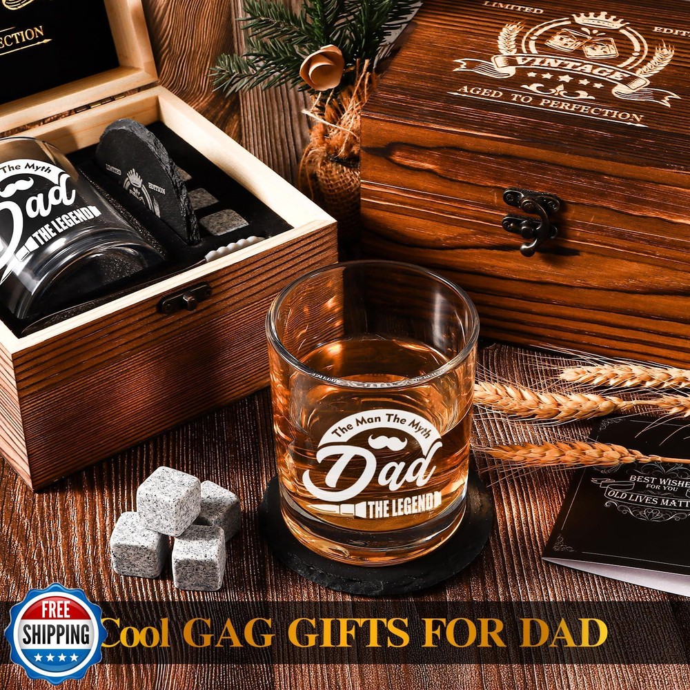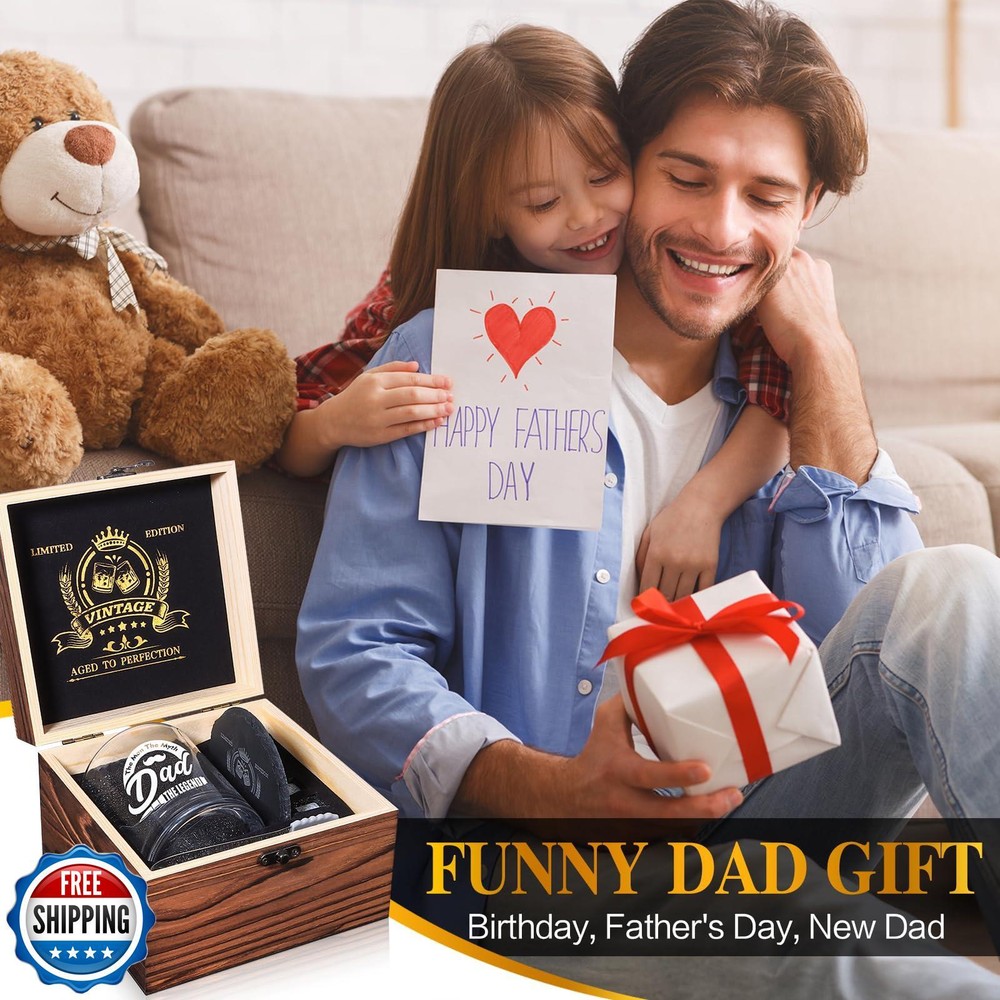 Fathers Day Whiskey Glasses 12 oz, veecom Rock Glasses Gifts for Dad Birthday, Cool Gag Gifts for Dads Who Wants Nothing, Unique Daddy Gift Ideas from Daughter, Kids Features 【 Cool Dad Gift Ideas 】All that whiskey lover needs in the wood box for dad: 12oz whiskey glass, slate coaster, 4pcs natural granite stones, ice tongs and gift card. More than just a whiskey glass set, it's the perfect dad gifts on fathers day, dad birthday, thanksgiving day, christmas,etc. Crafted wooden box engraved with vintage pattern resonate with his journey into fatherhood, surprised them with the cool gag gifts for dad who has everything 【 Wooden Gift Box 】 Whiskey gifts packaged well by foam padded inside, wood box will make your gift out of the ordinary on fathers day, dad birthday, baby shower party, christmas,etc. When your dad open this gift box and sees this whiskey glass set with "best dad", just picture how affected and delighted they will be. 【 12oz Whiskey Glass 】Old Fashioned style with heavy base, clear and smooth glass with non-faded vintage pattern, all is cater to the refined taste of whiskey connoisseurs. Each whisky has its own distinctive flavor, tasting slowly its flavor is just like to aftertaste those surprises and memories in life, "BEST DAD" whisky glasses adds a special meaning to every sip. 【 Premium Whiskey Set 】The Dad Gifts include natural slate, no-slip based coaster engraved with unique pattern adds to the special sense of ritual; Odorless granite whiskey stones ensure an original whiskey without dilution; Stainless steel ice tongs, silicone cover make it easier to put the whiskey stones in the glass; With the card show your sincerest wishes for dad to his important role in the family. 【Best Dad Ever Gifts】 made of wood texture can be treasured and preserved for a long time, it will be a good decorative ornament at home, visually looks retro and elegant. Dad is always the important role of the family. it's a heartfelt gift for your dad, daddy, father, stepfather, father-in-law. Birthday gifts for dad who wants nothing, new dad gifts, father birthday gift, cool gifts for dad, dads birthday gifts ideas. Shipping Free & Fast Shipping: We offer free shipping to most of the USA with a normal delivery time of 3-7 days. However, due to the current situation, additional delivery time (up to 3 weeks) may be required for some items. Alternative Carriers: We may use alternative carriers (e.g., USPS, FedEx, UPS) to ensure your package arrives safely and on time. Due to the use of multiple carriers, we are unable to provide a tracking number automatically. Handling Time: Orders are processed and shipped within 1-2 business days of receiving cleared payment. Shipping Restrictions: Shipping to Alaska, Hawaii, Puerto Rico, Guam, and other US territories may incur shipping charges or delivery restrictions. Please contact us before ordering, or your order can be refunded/cancelled. State Restrictions: Certain items may not be shipped to California due to state regulations. Contact for Tracking Updates: If you require tracking updates or have any concerns about the delivery of your order, please feel free to contact us, and we will be happy to assist you. Return Policy 30-Day Hassle-Free Returns: If you are not completely satisfied with your purchase, you can return the item for free within 30 days of receiving it for a full refund or exchange. Easy Return Process: Contact us, and we will provide you with a prepaid return shipping label and detailed instructions. No Restocking Fee: There are no restocking fees for returns. However, the buyer is responsible for return shipping costs if the return is not due to a seller"s error. Refund Processing: Refunds will be processed within 1 business day of receiving the returned item in its original condition. Feedback Your feedback is extremely important to us. We strive to provide the best products and customer service possible. If you are satisfied with your purchase, please take a moment to leave us a positive review. If you have any concerns or issues with your order, please contact us before leaving negative feedback. We are committed to resolving any problems and ensuring your satisfaction. Contact Us If you have any questions or concerns, please feel free to reach out to our customer support team. You can contact us through the eBay messaging system. We are available Monday to Friday, 9:00 am to 5:00 pm EST, and we will do our best to respond to your inquiry within 24 hours. Thank you for supporting our small family business!