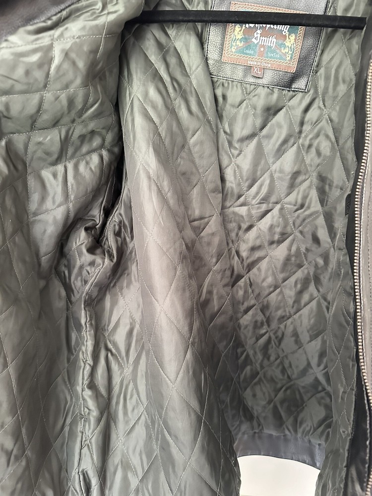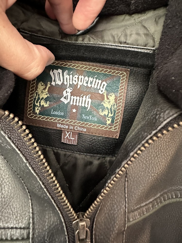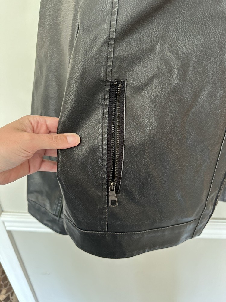 Chest Size: 46 in Size: XL Personalize: No Insulation Material: Polyester Garment Care: Machine Washable Department: Men Country of Origin: China Brand: Whispering Smith Fabric Type: Faux Leather Color: Black Size Type: Regular Style: Motorcycle Jacket Pattern: Solid Accents: Zipper Fit: Classic Features: Collared, Lined, Pockets, Zipped Pockets Performance/Activity: Walking Closure: Zip Season: Fall, Spring, Winter Outer Shell Material: Faux Leather Collar Style: Stand-Up Occasion: Casual, Travel Lining Material: Polyester Type: Jacket Jacket/Coat Length: Mid-Length Theme: 90s, Biker, Classic, Dad, Punk, Retro, Rock Vintage: No Handmade: No