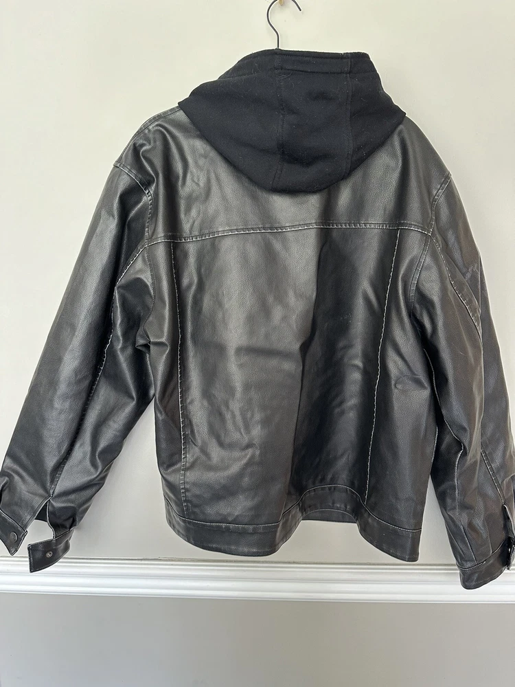 Whispering Smith Faux Leather Jacket Men's XL Black Hooded Zipped Pockets