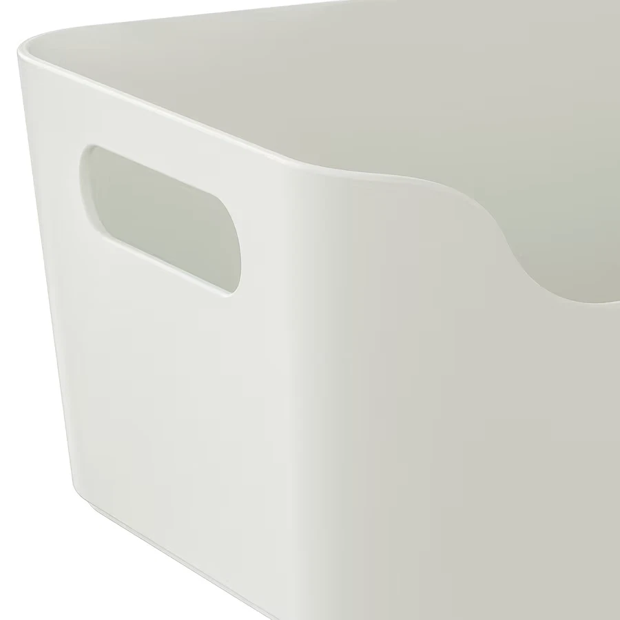 Product Description: Stay organized with this White Storage Box (24x17 cm) —a smart solution for managing small items in your kitchen, office, or any storage space. Designed with functionality in mind, it features a lowered front for easy access and visibility, along with two grip-friendly side handles for convenient carrying. Its smooth, rounded corners and durable plastic construction make it both easy to clean and long-lasting. Key Features: Efficient Storage – Keeps small items organized and easy to locate Lowered Front Design – Provides quick visibility and easy access to contents Grip-Friendly Handles – Comfortable side handles for easy carrying and pulling Rounded Corners – Safe and smooth design for added ease of cleaning Durable & Lightweight – Made from sturdy plastic while remaining easy to handle Sleek Neutral Look – White finish complements all decor styles Eco-Friendly Material – Made with a minimum of 50% recycled polypropylene Multi-Room Use – Suitable for kitchen, office, bathroom, or closet organization Material: Polypropylene plastic (min. 50% recycled) Care Instructions: Wipe clean with a cloth dampened in a mild cleaner Wipe dry with a clean cloth Measurements: Width: 17 cm Height: 11 cm Length: 24 cm Weight: 0.29 kg Package(s): 1