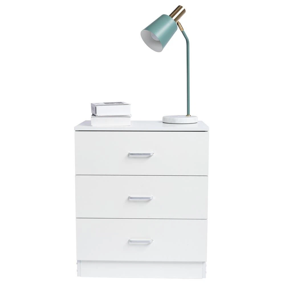 White 3-Drawer Nightstand Dresser for Bedroom Storage