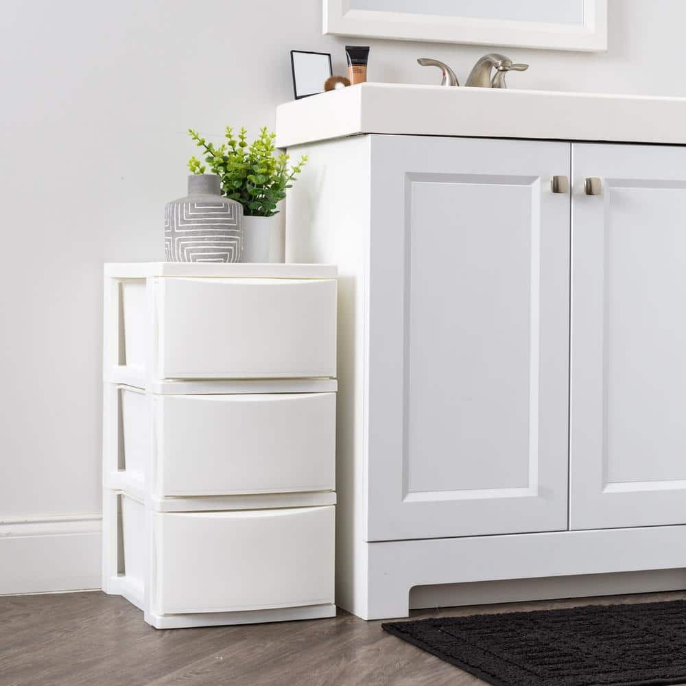 White 3-Drawer Plastic Storage Bin Chest, 2-Pack Organizer