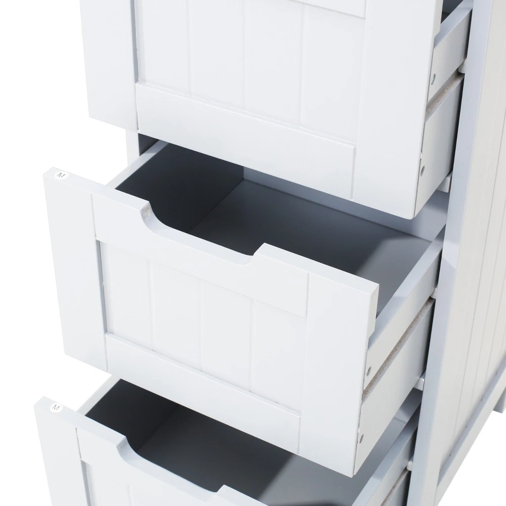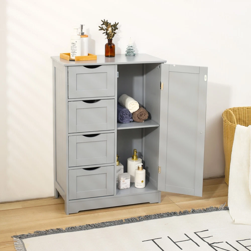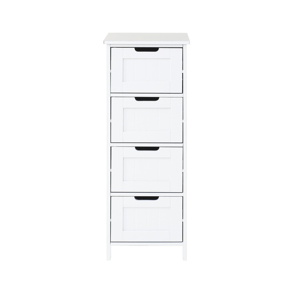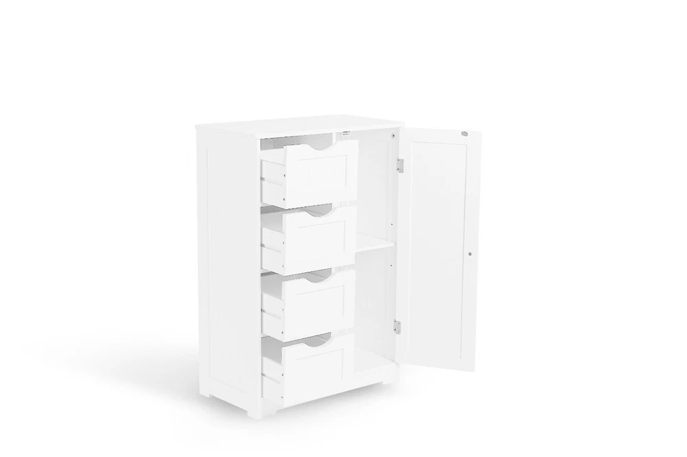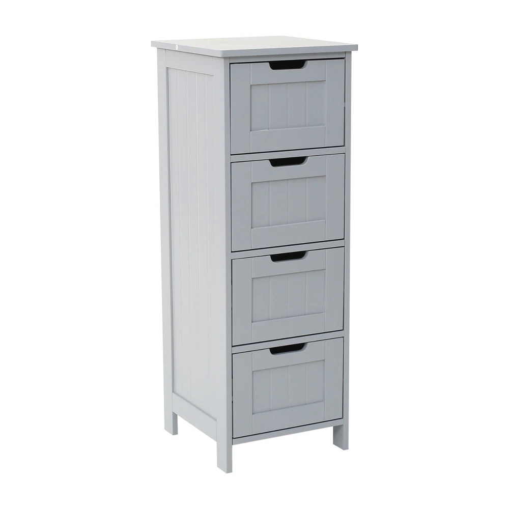 Features 4 Drawers : 4 Drawer Storage Cabinet: This bathroom cabinet features 4 deep drawers. It provides enough room to place towels, rolls, toiletries, soap, shower gel, ect. And the slide-free design simplifies the assembly steps, which is friendly to the user. Thoughtful Design: The handle-free design of the hollow pullout panel brings a simpler appearance and more convenient use. The stripe carvings on the panel are designed with complex craftsmanship just to present a more exquisite appearance. Suitable storage Space: Small bathroom floor cabinet of size 12"W x 12"D x 32"H fits neatly in narrow space between sink and toilet for easy access to bath salts and towels. It is a smart way to maximize the use of your bathroom space. Widely Use: The surface of the bathroom cabinet and the door have vertical carving patterns. This farmhouse cabinet looks sleek and design-like, suitable for your modern or country home decor. It can also be placed in the kitchen, living room, ect. Easy to Install: This cabinet unit is easy to assemble with the instructions, even if you are fresh to do it. If you have any questions with our cabinet or its operating steps, please contact us freely. We will support you within 24 hours. Specifications 4 Drawers : Color : Grey / White Recommended Uses For Product : Towels Product Dimensions: 11.81" x 11.81" x 32.50" Inches Special Feature: Removable Shelf Material: Engineered Wood Style: Modern Number of Drawers: 4 Shape: Rectangular Package Contents 4 Drawers Bathroom Floor Cabinet Features 4 Drawers & 1 Door : The Bathroom 4 Drawer 1 Door Free Standing Unit has a modern and stylish design that will complement any bathroom decor. The elegant smooth white finish adds a touch of sophistication to the unit, making it a great addition to any home. The Bathroom 4 Drawer 1 Door Free Standing Unit features four drawers and 1 cupboard, providing plenty of storage space for your bathroom essentials. You can easily store your towels, toiletries, and other items in this unit, keeping your bathroom tidy and organized. This bathroom drawer unit is made from MDF, a sturdy and durable material that can withstand daily wear and tear. MDF is also resistant to warping and cracking, ensuring that this unit will last for many years. Cleaning this unit is effortless. You only need to wipe it with a dry cloth to remove any dust or dirt, making it easy to maintain its pristine appearance. This free-standing unit is not limited to the bathroom only. You can use it in other rooms of your home, such as the bedroom or laundry room, to store your items. Specifications 4 Drawers & 1 Door : Color : White / Grey Recommended Uses For Product : Towels Product Dimensions: 22"L : x 12"W x 32.5"H In. Special Feature: Removable Shelf Material: Engineered Wood Style: Modern Number of Drawers: 4 Number of Cabinet : 1 Shape: Rectangular Package Contents 4 Drawers & 1 Door : Bathroom Floor Cabinet