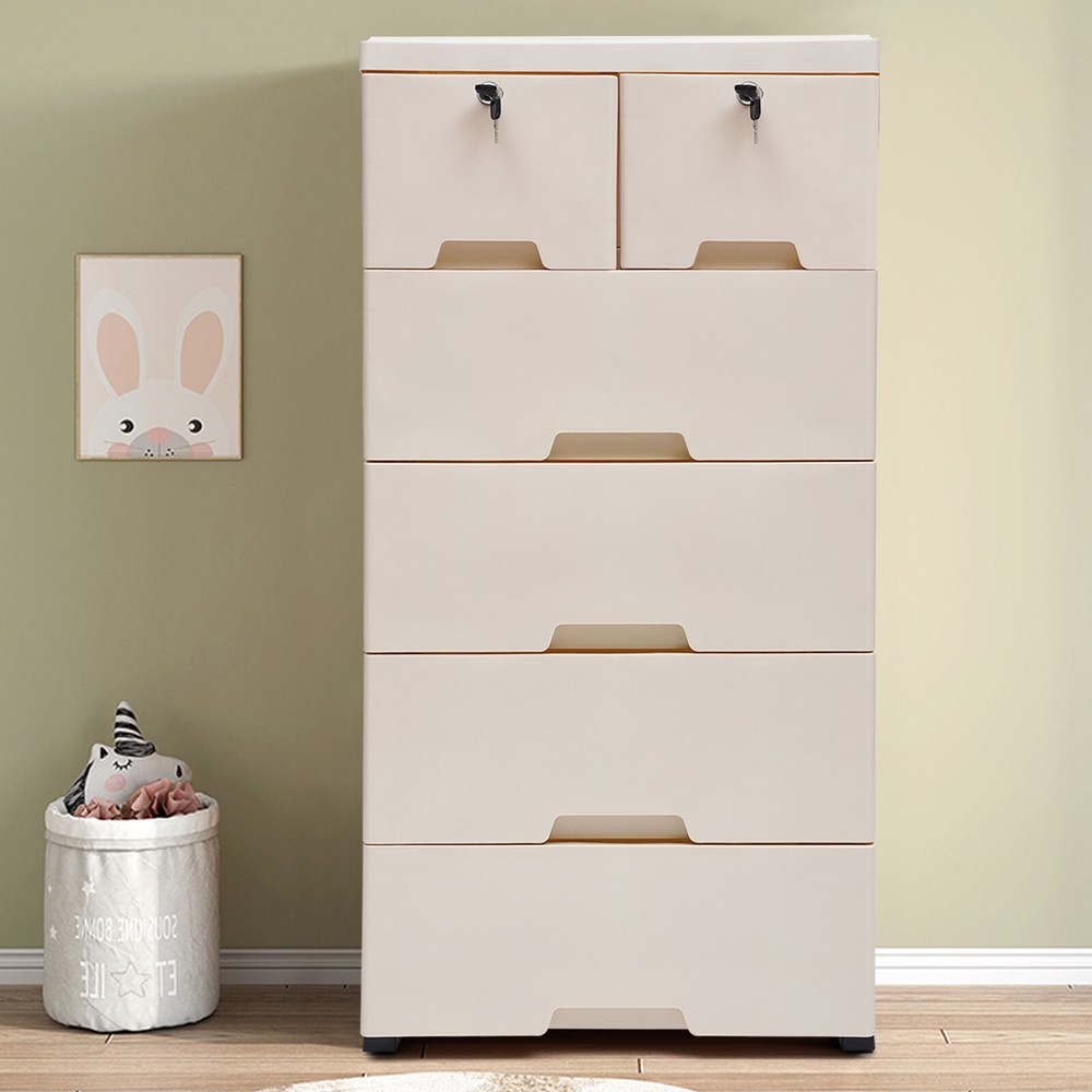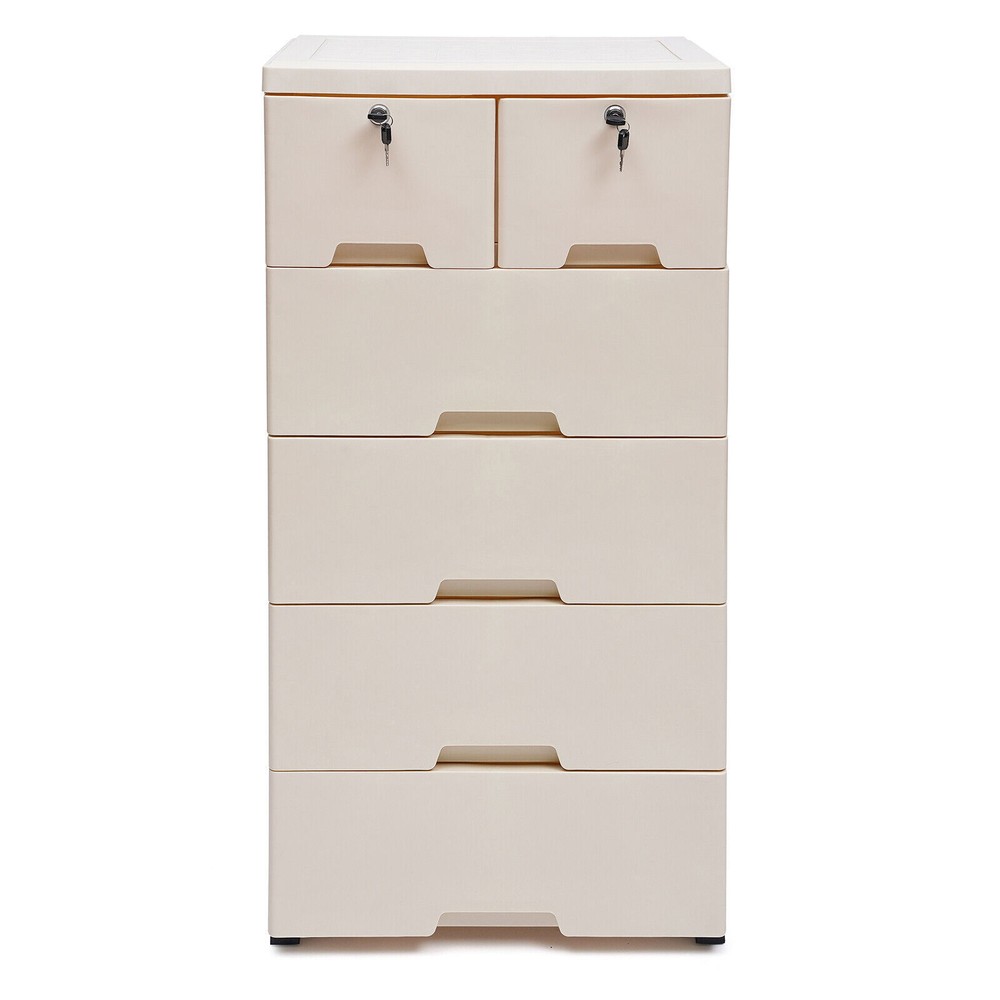 Description Are odds and ends cluttering your room? Are you still worried that the space at home is too small? Don't worry, this product can help you. This storage cabinet has 6 drawers that can store a lot of items to meet your storage needs and give you a neat space. Specification Color: Beige Color Material: Food-grade PP Shape: Rectangular Style: Modern Number of Layers: 5 Number of Drawers: 6 Load-bearing Capacity: 30kg/66lbs Product Size: 50*35*102cm/19.69*13.78*40.16inch Gross Weight: 7.9kg/17.42lbs Package Size: 51.5*40.5*49cm/20.2*15.9*19.2inch Package Included 6* Drawers 6* Drawer Panels 1* Top Panel 5* Frames 16* Panels 4* Wheel Covers 5* Wheels 4* Keys 1* Chinese Manual Notes Key Features High-quality Material: This product is made of high-qu Bedroom 6Drawer Dresser Storage Organizer Chest of Tower Closet Nightstand White Description: Are odds and ends cluttering your room? Are you still worried that the space at home is too small? Don't worry, this product can help you. This storage cabinet has 6 drawers that can store a lot of items to meet your storage needs and give you a neat space. Specification: Color: Beige Color Material: Food-grade PP Shape: Rectangular Style: Modern Number of Layers: 5 Number of Drawers: 6 Load-bearing Capacity: 30kg/66lbs Product Size: 50*35*102cm/19.69*13.78*40.16inch Gross Weight: 7.9kg/17.42lbs Package Size: 51.5*40.5*49cm/20.2*15.9*19.2inch Package Included 6* Drawers 6* Drawer Panels 1* Top Panel 5* Frames 16* Panels 4* Wheel Covers 5* Wheels 4* Keys 1* Chinese Manual Notes Key Features High-quality Material: This product is made of high-quality PP, which is strong, durable, and not easy to deform. Good material can extend its service life. Elegant Appearance: The beige color, as well as the classic design, makes it look elegant. It is a good decorative piece that can blend in with different home decor styles and add color to the home. Saving Space: This product is designed vertically. It makes full use of the unused vertical space to store items and occupies a small area of 50*35cm/19.69*13.78inch, which can save you a lot of space. Strong Load-bearing Capacity: The load-bearing capacity of this product is 30kg/66lbs, which is strong enough for you to store items without worrying about it shaking and tipping. Large Capacity: This product includes two small drawers and four large drawers, which allows you to distinguish the placement according to the size of the items. The 6 drawers make it possible to hold more items and meet your daily storage needs. Makes Space Neat: It has six drawers that make it easy for you to store as well as access your items. It can get your room out of clutter and back to a neat and organized state. Excellent Sealing: The drawer design makes this product well sealed to prevent dust as well as insects from entering. You can use it with peace of mind. Stackable Design: The stacking design allows you to combine and disassemble them according to your needs. You can store flexibly. Protect Your Privacy: This product comes with two drawers with locks, which can protect your privacy very well. Good Stability: This product is designed with a dense frame and has a large landing support area, so it is very stable. You can use it without worrying about it shaking and tipping over. Eco-friendly : The food-grade PP material is non-toxic, odorless, and good for human health, and it is also recyclable, which is very environmentally friendly. Convenient to Move: The four wheels on the bottom of the product are hard-wearing and make very little noise when in use, providing you with a quiet environment. At the same time, it slides flexibly, making it easy for you to move the product and for cleaning. Easy to Clean: The surface of this product is smooth and flat, which is easy to clean. You just need to wipe it with a wet rag. Easy to Install: This product is simple in structure and complete in the package. You only need a few simple steps to install it, which is very time-saving and labor-saving. Guaranteed Customer Service: We aim to provide quality products and services. If you have problems, please feel free to contact us. We will reply and solve the problem for you as soon as possible. Details Drawer Stops: Each drawer has raised stops on both sides to prevent the drawer from slipping out easily. Rounded Corners: The corners of this product are very rounded and smooth, which can protect you from collisions and is very safe to place in your home. Thickened Top Panel: The thickened top has a strong load-bearing capacity, which allows you to put a lot of items on it with peace of mind. It can also facilitate your access to commonly used objects. Recessed Handles: The drawers are designed with recessed handles, which makes it easier to access items and saves surface space. At the same time, the rounded handles protect your hands from scratches and are more aesthetically pleasing. Application It is suitable for storing clothes, toys, children's books, and other items. It can be placed in the crevice space next to beds, closets, sofas, and cabinets. Its load-bearing capacity is 30kg/66lbs. Please read the manual completely before installation and use, and pay particular attention to the safety instructions included. Please allow the slight color difference caused by the shooting light and 1-3cm error due to manual measurement, and make sure you do not mind before ordering.