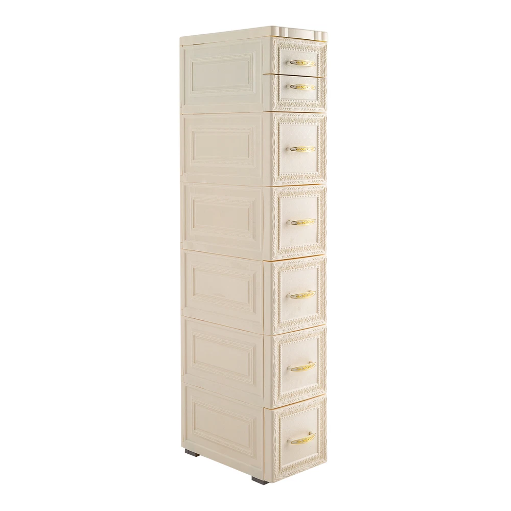 Application This product is suitable for storing clothes, toys, covers, children's books, and other items. It can be used on various occasions, such as in bedrooms, living rooms, studies, powder rooms, beauty stores, closets, nurseries, playrooms, entrances, and dressers. Specification Material: PP, ABS Color: Milky-white Modern: Style Shape: Rectangular Number of Drawers: 7 Number of Tier: 6 Assembly Required: Yes Mounting Type: Floor Mount Weight Capacity of Each Tier: About 5kg/11.0 lbs Product Size: 18*32*100cm/7*12.6*39.4inch Package Included 1 * Floor Cabinet 1 * English and Chinese Instruction 4* Casters WELCOME Description This floor cabinet features seven drawers to help keep your space organized. With this product, you can categorize items. This not only makes the distribution of items cleaner, but also saves search time. Say goodbye to the clutter in the bedroom and living room, and enjoy a cleaner and more efficient life! Specification Material: PP, ABS Color: Milky-white Modern: Style Shape: Rectangular Number of Drawers: 7 Number of Tier: 6 Assembly Required: Yes Mounting Type: Floor Mount Weight Capacity of Each Tier: About 5kg/11.0 lbs Product Size: 18*32*100cm/7*12.6*39.4inch Package Included 1 * Floor Cabinet 1 * English and Chinese Instruction 4* Casters Key Features Nice Appearance: The classic color scheme and exquisite three-dimensional relief make it highly attractive and decorative, and can be paired with various decoration styles. Durable and Sturdy: Made of high-quality PP, it is environmentally friendly, practical, durable, safe, odorless , and lightweight, ensuring a long service life. Space-saving Design: Its compact size(7*12.6*39.4inch) fits into small spaces and gaps, and can easily slide into seemingly useless tight spaces next to cabinets or refrigerators. Spacious Storage Space: The 7 drawers plastic drawers are convenient for classifying and storing your items and ensuring orderly storage. In addition, its top can also be placed, greatly improving the utilization of space. Easy to Access: The pull-opening method makes it more convenient for you to get items. And the smooth handle doesn't hurt your skin and protects you and your family. You can use it without any worries. Easy to Move: Four wheels at the bottom allow you to easily move it anywhere, which saves energy and time. Strong Stability: The high-quality PP and reinforced structure ensure high stability, making each tier can support up to 11.02 lbs, so it is more secure to use. Easy to Clean: The smooth surface allows you to easily clean the dust with a soft towel, making it clean and new-like. Easy to Install: Its simple structure and detailed instructions let you easily and quickly install it. Customer Service: We aim to provide quality products and services. If you have any problems, please free to contact us. We will reply and solve the problem for you as soon as possible. Details Protective Snap: The snap on each drawer makes it difficult for the drawer to fall off, so your safety can be effectively guaranteed. Rounded Corners: Compared with the traditional square corners, the curved design can better protect your safety. Application This product is suitable for storing clothes, toys, covers, children's books, and other items. It can be used on various occasions, such as in bedrooms, living rooms, studies, powder rooms, beauty stores, closets, nurseries, playrooms, entrances, and dressers. Notes 1. Please read this manual carefully and make sure fully understand it before installation. 2.Please allow the slight color difference caused by the shooting light and 1-3cm error due to manual measurement and make sure you do not mind before ordering. Payment Delivery details Terms of sales About us Contact us Payment We accept ebay payment 。 Fees such as import duties, taxes are not included in the item price or shipping costs. These charges are the buyer's responsibility. Delivery details Shipping: 2-9 working days to: USA Terms of sales We maintain high standards of excellence and strive for hundred percent customer satisfaction. Feedback is very important to us. We hope that you contact us immediately before you give neutral or negative feedback, so that we can address your concerns. It is impossible to address issues if we do not know about them! About us Your satis faction is our ultimate goal. We work hard to earn your trust and future business. Our certified technicians have tested each item before shipping. The unit comes with 1 year limited warranty on all manufacturing defects. a) If you receive a defective item, you may return it or ask for a discount. Please contact us within 14 days after you receive the package. b) What you returned must be intact and in its original packaging as re? u. Customer is responsible for shipping costs of the returned item. c) We will cover the cost of shipping back t with the shipping rate indicated in the registration page. We will send you a new unit or refund the full payment you paid. Thank you. Contact us Business Hour Business Hour: Monday To Friday: 8:30 AM to 5:00 PM (Beijing China time) Due to time zones, our reply to your questions may not be immediately. But within above working time, we will reply your email within 24 hours. If it's non-workdays, please kindly be patient and wait till Monday. Please contact us with ebay message. Please feel free to contact us if you have any questions. Monday To Friday: 8:30 AM to 5:00 PM (Beijing China time) Due to time zones, our reply to your questions may not be immediately. But within above working time, we will reply your email within 24 hours. If it's non-workdays, please kindly be patient and wait till Monday. Please contact us with ebay message. Please feel free to contact us if you have any questions.