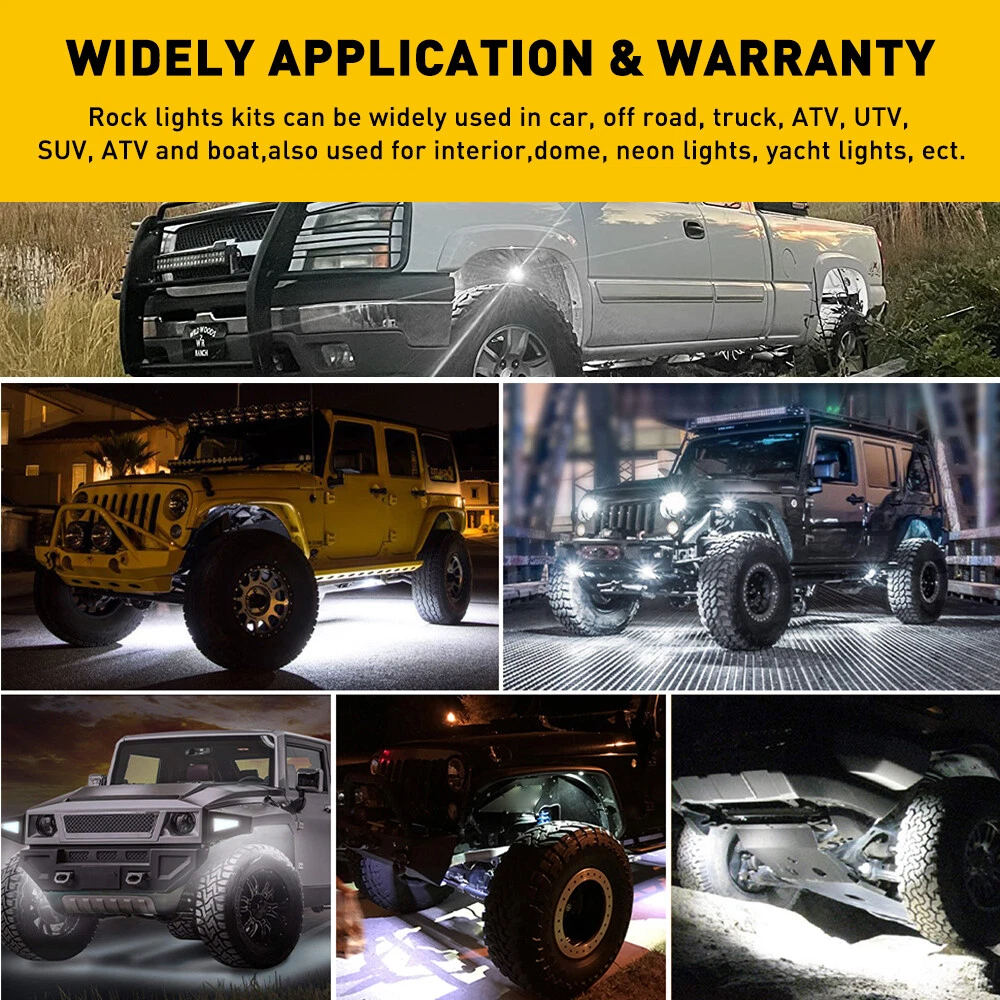 Specification: Suitable models: Universal, including cars, SUVs, JEEP, truck, etc Connection mode: red wire to the positive pole, black wire to the negative pole Placement on vehicle:Under,Fender,Wheel eyebrow, grill,wheel arch etc. LED Quantity: 9 LED Per Light Voltage: DC 10V-14V Material: Diecast Aluminum Housing Color: White Service life: 50000+ hours Waterproof:IP68 Housing color:Black Features: *Brilliant brightless: High intensity chip to light up the entire under car. *Wateproof design: High waterproof rating (IP68)with long service life. White 8Pods Rock LED CSP Underbody Light JEEP for Truck ATV UTV Boat Motorcycle Specification: Suitable models: Universal, including cars, SUVs, JEEP, truck, etc Connection mode: red wire to the positive pole, black wire to the negative pole Placement on vehicle:Under,Fender,Wheel eyebrow, grill,wheel arch etc. LED Quantity: 9 LED Per Light Voltage: DC 10V-14V Material: Diecast Aluminum Housing Color: White Service life: 50000+ hours Waterproof:IP68 Housing color:Black Features: *Brilliant brightless: High intensity chip to light up the entire under car. *Wateproof design: High waterproof rating (IP68)with long service life. *Universal Application: This LED rock lights widely fit for JEEP, Rock crawlers, rock bouncers, off-road, truck, UTV, ATV, SUV, RV, boat, golf cart, tow vehicles, Camp trailer trailers, trikes, street rods, drifters, low riders, racers, etc *DIY Style: Mini design makes the rock lights easy to mount anywhere you want. Perfect for car lights, off-road lights, truck bed lights, van lights, camp trailer lights, tow vehicles lights, boat lights, etc. Packaging included: 8 PCS LED Rock Lights 1 SET Installation Kit Item Specifics Features CANbus Compatible Bulb Fitment Code C5W Manufacturer Warranty One Year Warranty Application 2 for trikes, street rods, drifters, low riders, racers, etc. MPN Does Not Apply Lifetime 50,000 Hours OE/OEM Part Number AUXITOLED Voltage DC 10V~14V Fitment Type Performance/Custom Performance Part Yes Lighting Technology LED Suitable For Accessory Light Underbody Light Size 2 Inch Lumens 6000 lm Display title in Boldface off Material Diecast Aluminum Housing To Fit underbody underglow wheel well decoration lights Interchange Part Number Widely used under vehicles, interior light, Grill lights, card li Color Temperature 6500K Light Color White Number of Bulbs 8 Placement on Vehicle Under, Fender, Wheel Eyebrow, Grill, Wheel Arch, Mudgua, Front, R Wattage 9W Housing Color Black Application for JEEP, Rock crawlers, rock bouncers, off-road, truck,UTV, ATV Waterproof Rate IP67 Application 1 for SUV, RV, boat, golf cart, tow vehicles, Camp trailer trailers Manufacturer Part Number Underbody Light Brand Unbranded Bulb Life Hours Up to 30,000 Hours Type Rock Light UPC 608374287890 Bulb Life Hours Up to 30,000 Hours Other Lights We Have Accessory Light Brake Light Center Brake Light Combination Light Daytime Running Light Dome Light Emergency Light Fog Light Footwell Light Glove Box Light Headlight High Beam Instrument Panel Light License Plate Light Light Bar Low Beam Other Light color we have Map Light Off-Road LightOff to Road Light Parking Light Reverse Light Side Marker Light Side Repeater Light Tail Light Third Brake Light Trunk Light Turn Signal Light Underbody Light Warning Strobe Light Wheel Light Work Light Other Light color we have Blue Cold White Green Multicolor Orange Pink Purple Red Ultraviolet Warm White Other light bulb we have C5W D1C D1R D1S D2C D2R D2S D3S D4S H1 H10 (9145) H11 H11B H12 (9055) H13 (9008) H13A H14 H15 H16 H16B H2 H21W H27W/1 (880) H27W/2 (881) H3 H3C H4 H6W H7 H8 Other light bulb we have H8B H9 H9B HB1 (9004) HB12 HB2 (9003) HB3 (9005) HB3A (9005XS) HB4 (9006) HB4A (9006XS) HB5 (9007) HIR1 (9011) HIR2 (9012) HP24W HPY24W P21W P22W PSX24W PSX26W PX24W PY21W R10W R2 R5W T4W W21W (7440) W3W (194) W5W (168) WY5W FAQ ♥ If you have a decoding problem or any other problems, please contact us first, we will help you with it. We will reply you within 24 hours in working days. I'm a new seller, thanks a lot for your trust and convince! I will serve you with all my heart. ♥ Q1: Will this bulb fit my vehicle? A: We can match almost any vehicle to one of our bulb sizes. eBay only lets us include some vehicle fitments per listing, but if your vehicle does not show up on the compatibility table at the top of our listings, welcome you to contact us for free consulation before purchasing a product. Q2: My item has not arrived, what's taking so long? A: Sometimes items take longer than expected, especially if it’s going far or to rural area. Check with your post office to see if your item has been held up. Sometimes Royal Mail will not update a tracking number until it has arrived at its destination. If your item still don't arrive after a few days, let us know so we can double check for you and help solve it asap. Q3: My bulbs won't fit, help! A: Special bulb holder may be required. See if you can take the holder from the stock bulb. If not, let us know. The bulb size may be wrong, double check the item you received with the item you ordered. Do you have an aftermarket lighting housing? These may not be perfectly fitted for aftermarket bulbs and will require some manual modifications. Q4: Neither side lighting up? Both sides flicker, hyper flash, or work inconsistantly. A:Check the light fuses, and then check the ballast plugs to insure correct installation. If this doesn't work, there may be a voltage problem with the vehicle. You probably just need a relay or capacitor. Even though some bulbs are builtin resistors, they may still need a decoder. Pay & Ship (1). We gladly accepts payment via PayPal, We will ship your item(s) within 24 hours. (2). Before payment, please keep the consistency of Paypal address and ebay address. (3). Quantity orders are welcome! Returns (1). We offer 60 days free return policy. Please contact us within 60 days from the date you receive your order if you ha