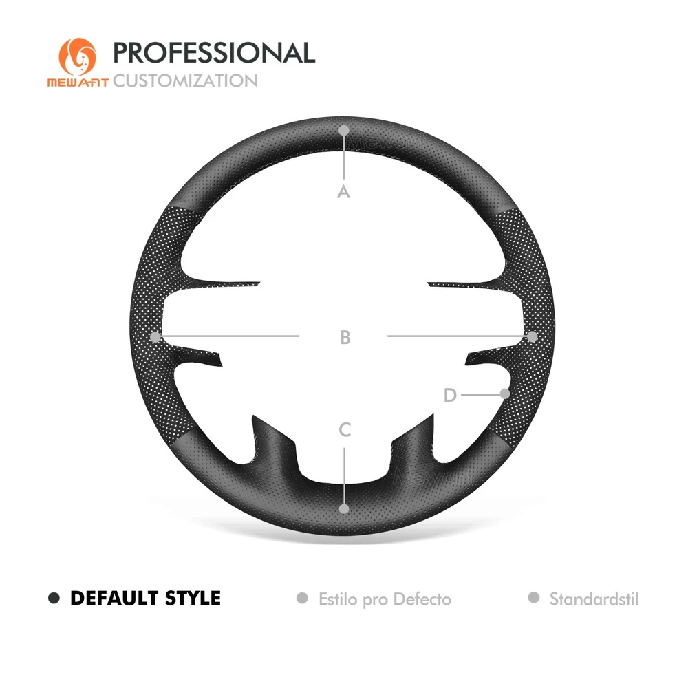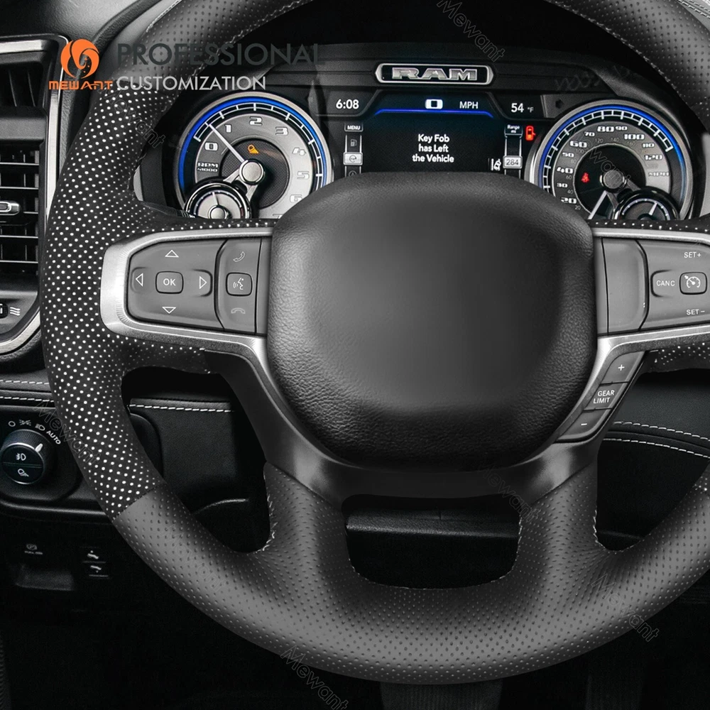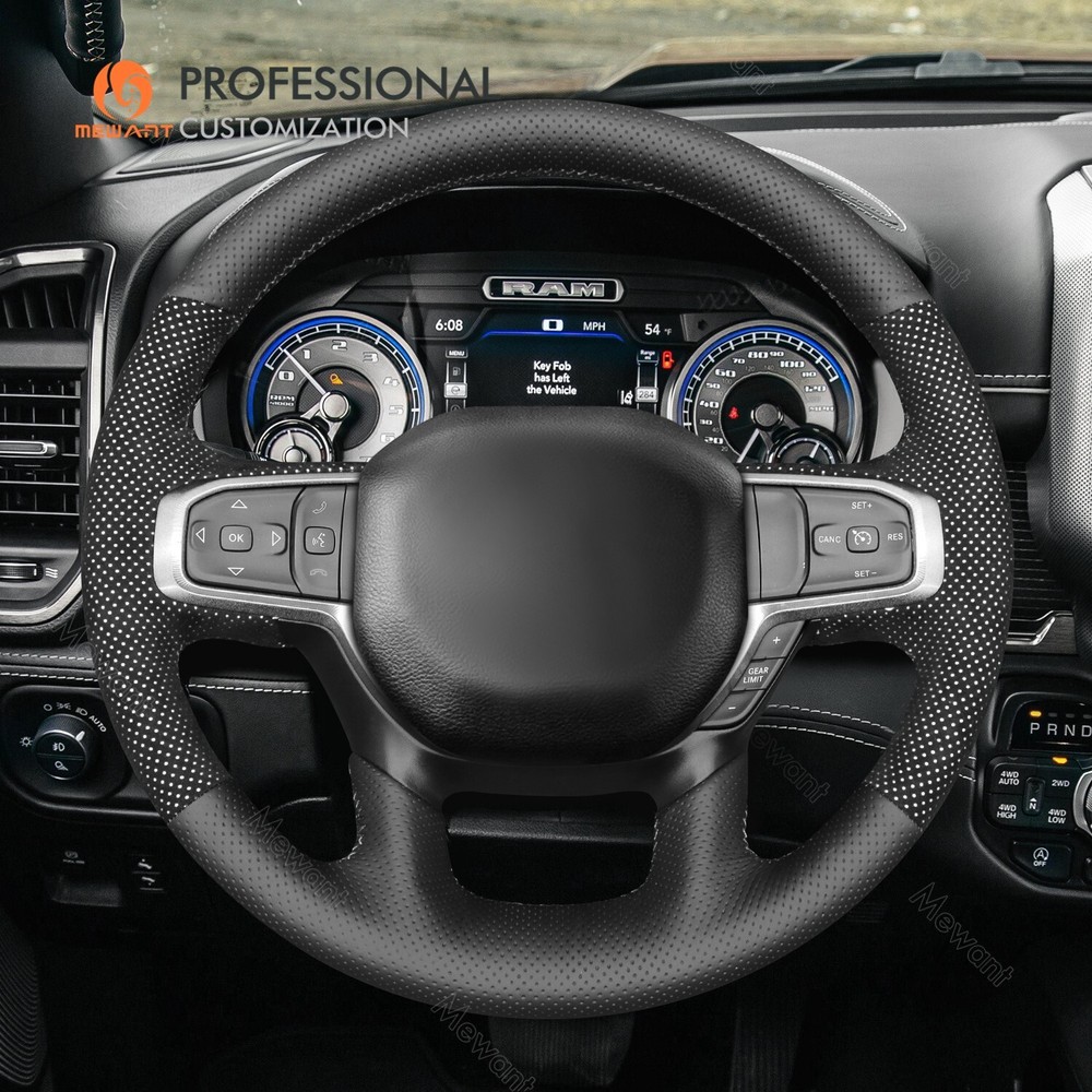 White Mesh Alcanatra Leather Steering Wheel Cover for Dodge RAM 1500 2019-2023 Introducing Alcantara Steering Wheel Covers! Made from Luxurious Alcantara material with sweat-absorbent and easy-to-clean features. Add extravagant touches to your interior Take driving to a next experience. Personalized customization Many colors of thread and material for choose to customize. According to the colors and materials you could customize a new style cover. Multiple protection With soft alcantara material, guarantees a good grip while driving. With 100% fit Mewant cover, it won’t slip while driving. The Original Steering Wheel: NOTICE This cover Suitable car model: for Dodge RAM 1500 2019-2023 Please note: The default steering wheel does NOT have paddle shifters, if yours has, please contact us before order! Suitable car model name and launch year are just a reference, different countries have different model name and launch time, so please pay attention to the steering wheel picture above, make sure they are the same , if not sure, feel free to contact us. The Default Design: Design elements: A+C: Black Perforated Genuine Leather B: Black Alcantara with White Layer D: White Thread If you want to change the material or color, please contact our customer service when you order. Features * Increased Safety :High quality leather, super soft & smooth , non-slip & durable. it provides great grip on the steering wheel, massage your palm and relieve drive fatigue , bring you a great touch and feel . * Top Quality: delicate workmanship, super technology and flat sewing stitches, The steering wheel gloves are the perfect way to transform the look of your vehicles interior while protecting your original steering wheel at the same time from wear and tear. Self-installation Needed: Our steering wheel covers need to stitch by yourselves, the installation tools, video and instructions were provided to assistant, please do NOT remove the original leather before the installation, or it will not fit. Attachment:Needle,thread,double sided tape,yellow small blade