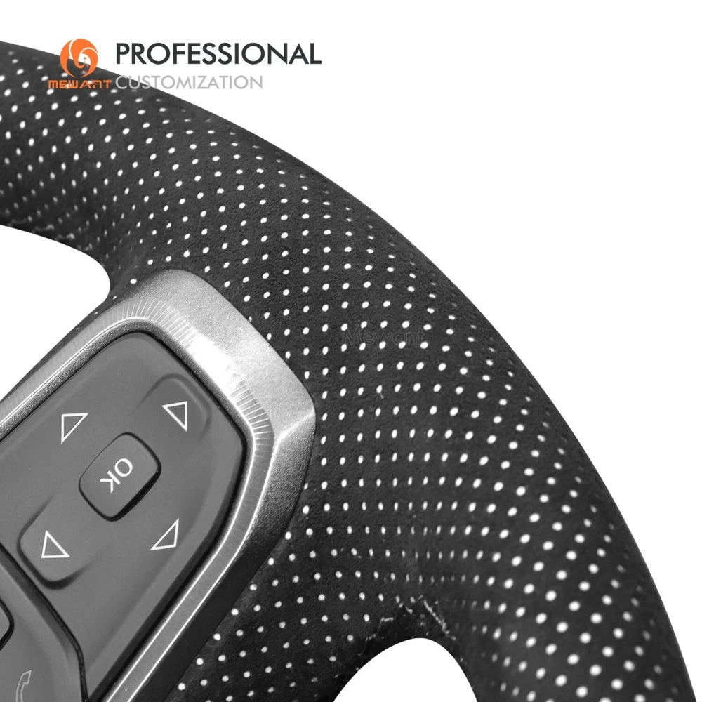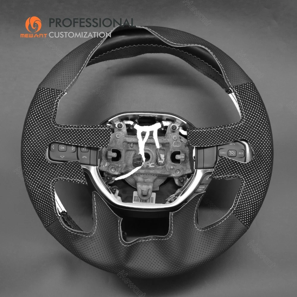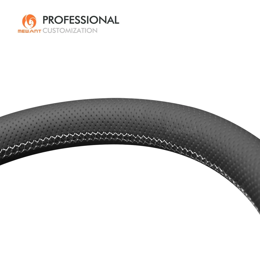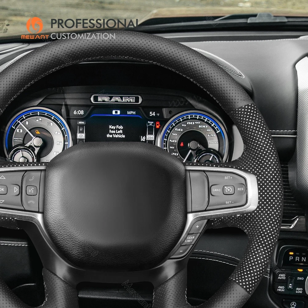White Mesh Alcanatra Leather Steering Wheel Cover for Dodge RAM 1500 2019-2023 Introducing Alcantara Steering Wheel Covers! Made from Luxurious Alcantara material with sweat-absorbent and easy-to-clean features. Add extravagant touches to your interior Take driving to a next experience. Personalized customization Many colors of thread and material for choose to customize. According to the colors and materials you could customize a new style cover. Multiple protection With soft alcantara material, guarantees a good grip while driving. With 100% fit Mewant cover, it won’t slip while driving. The Original Steering Wheel: NOTICE This cover Suitable car model: for Dodge RAM 1500 2019-2023 Please note: The default steering wheel does NOT have paddle shifters, if yours has, please contact us before order! Suitable car model name and launch year are just a reference, different countries have different model name and launch time, so please pay attention to the steering wheel picture above, make sure they are the same , if not sure, feel free to contact us. The Default Design: Design elements: A+C: Black Perforated Genuine Leather B: Black Alcantara with White Layer D: White Thread If you want to change the material or color, please contact our customer service when you order. Features * Increased Safety :High quality leather, super soft & smooth , non-slip & durable. it provides great grip on the steering wheel, massage your palm and relieve drive fatigue , bring you a great touch and feel . * Top Quality: delicate workmanship, super technology and flat sewing stitches, The steering wheel gloves are the perfect way to transform the look of your vehicles interior while protecting your original steering wheel at the same time from wear and tear. Self-installation Needed: Our steering wheel covers need to stitch by yourselves, the installation tools, video and instructions were provided to assistant, please do NOT remove the original leather before the installation, or it will not fit. Attachment:Needle,thread,double sided tape,yellow small blade
