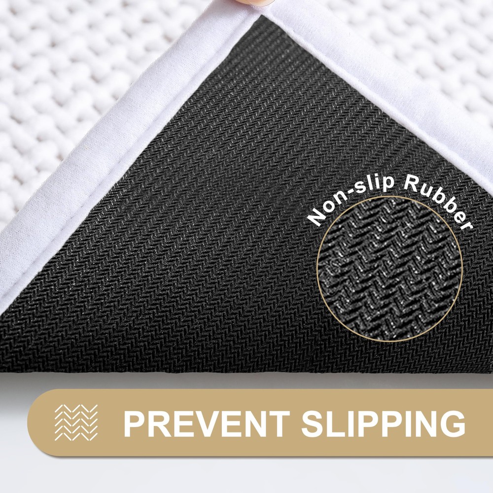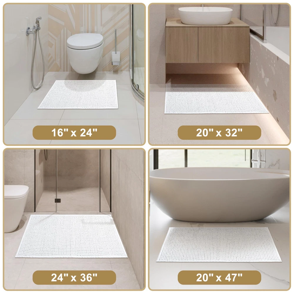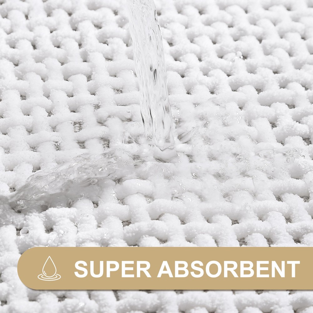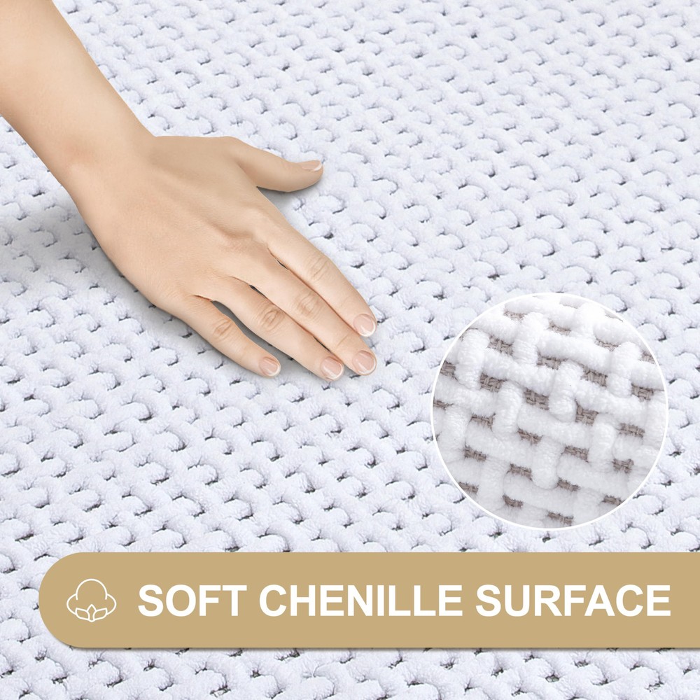 Soft Chenille Surface: Experience unparalleled comfort with our bathroom rugs, crafted from high-quality chenille with a low pile woven design. This luxury bath mat offers an ultra soft feel and elegant appearance, making every step after your shower a soothing and cozy experience. Super Absorbent & Quick Dry: Our bath mats for bathroom are super absorbent and water resistant. When you step out of the tub or shower, it quickly soaks up the dripping water from your feet. And our chenille fabric technique allows the bathmat to dry fast in the open air, bring you a dry and comfortable bathroom. Upgraded Non-slip Rubber Backing:Upgrade your bathroom safety with our non skid shower carpet, featuring natural thick rubber backing for enhanced slip resistance. These mats grip smooth surfaces securely, preventing skidding and curling to reduce the risk of falls for and the elderly. Unlike traditional mats, our design prioritizes safety and stability, making it the perfect choice for bathroom floor. Machine Washable: Our bathroom mat is also incredibly easy to clean and maintain, with a low-pile design that doesn't trap dirt like other chenille rugs. They are machine washable, durable, and resistant to shedding or deformation, thanks to their unibody construction. Versatile Size & Usage: Available in a variety of solid neutral colors (beige, greay, white) and sizes (17x24, 20x32, 24x36, 20x48), these mats can seamlessly complement any bathroom decor and accessory, fitting perfectly in bathroom floor, showers, bath tubs, sinks, and vanities.