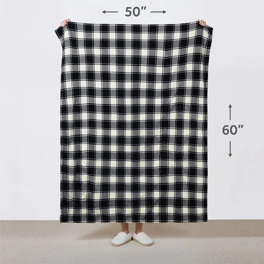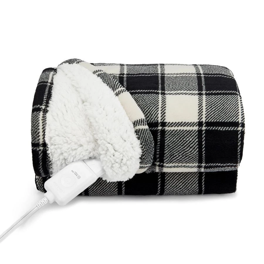Sunbeam White & Black Buffalo Microplush Sherpa/Faux Shearling Heated Throw wraps you in luxurious warmth, perfect for those chilly cold nights. Imagine sinking into the rich and ultra-cozy microplush with reverse Sherpa/Faux Shearling fabric, keeping you toasty and comfortable while you relax. The stylish 50" x 60" electric blanket makes a great accessory while relaxing on the couch, bed or your favourite chair and the white & black buffalo plaid adds a stylish to any décor. This throw features an easy-to-use push-button controller with 4 adjustable heat settings, so you can find your perfect temperature. The 4-hour auto shut-off function ensures added peace of mind. Premium heated wires are equipped with advanced technology to ensure continuous even heat distribution. When it’s time to clean, simply detach the controller from the throw and place in the washing machine and dryer for easy care. It stays silky soft wash after wash. Sunbeam is an American brand trusted for over 125 years in electric home appliances. All Sunbeam electric bedding products are ETL certified. On Dec 26, 2024 at 18:53:42 PST, seller added the following information: