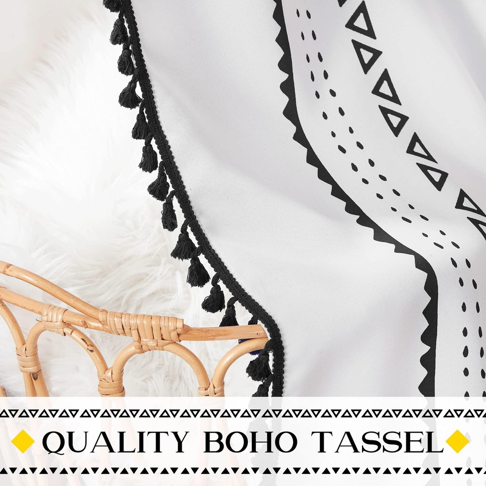 White Boho Fall Macrame Curtains 84 Inch 2-Panel Grommet Decorative Window Drapes