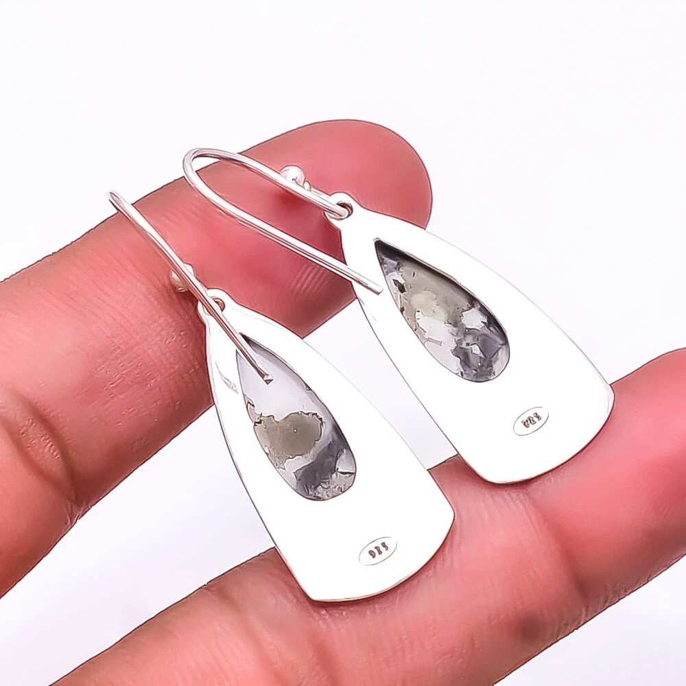 Theme Beauty Main Stone Depth As Seen in Picture Main Stone Length As Seen in Picture Main Stone Width As Seen in Picture Seller Warranty Yes Shape As Seen in Picture SKU E_9275_189_19 Main Stone Cut Type Cabochon Main Stone Size 20X10 Mm Antique Yes Handmade Yes Type Earring Style Drop/Dangle Metal Sterling Silver Metal Purity 925 Parts Per 1000 Base Metal Sterling Silver Total Carat Weight 34.5 Main Stone Turquoise Main Stone Creation Natural Main Stone Shape Pear Main Stone Color Black & White Main Stone Treatment Natural Material Gemstone, Stone Number of Gemstones 2 Item Length 2.03 Features Engraved, Nickel-Free, Handcrafted Ear Area Lobe Brand Unbranded Country/Region of Manufacture India Country of Origin United States Color As Seen in Picture Diamond Clarity Grade Not Applicable Number of Diamonds As Seen in Picture Item Diameter As Seen in Picture Gemstone Clarity Grade Opaque Diamond Color Grade Not Applicable Customized No Colored Diamond Intensity Not Applicable Certification 100% Genuine Guaranteed Setting Style Bezel Occasion Christmas, Birthday, Anniversary, Engagement, Wedding, Valen Shipping & Handling - Charge - 1st item-5.90 And Additional item-1.90 Handling Time - 1 Days . Delivery Time - 2 TO 3 DAYS. Shipping Service - USPS First Class Package 2 -3 Days. Returns - 1.We offer a 100% Money Back Guarantee minus shipping for 30 days after receiving the Item / item's. 2..The item must not be altered or damaged in any way shape or form. 3.Upon receiving these items your payment will be refunded. 4.Email us for return instructions before sending merchandise back. 5.Please allow up to 1 business day for all returns to receive credit. 6.Sizing does not affect the return policy. Payment - We accept PayPal for Payment ,should made with in 14 days once buying or winning done , in case of late information expected .