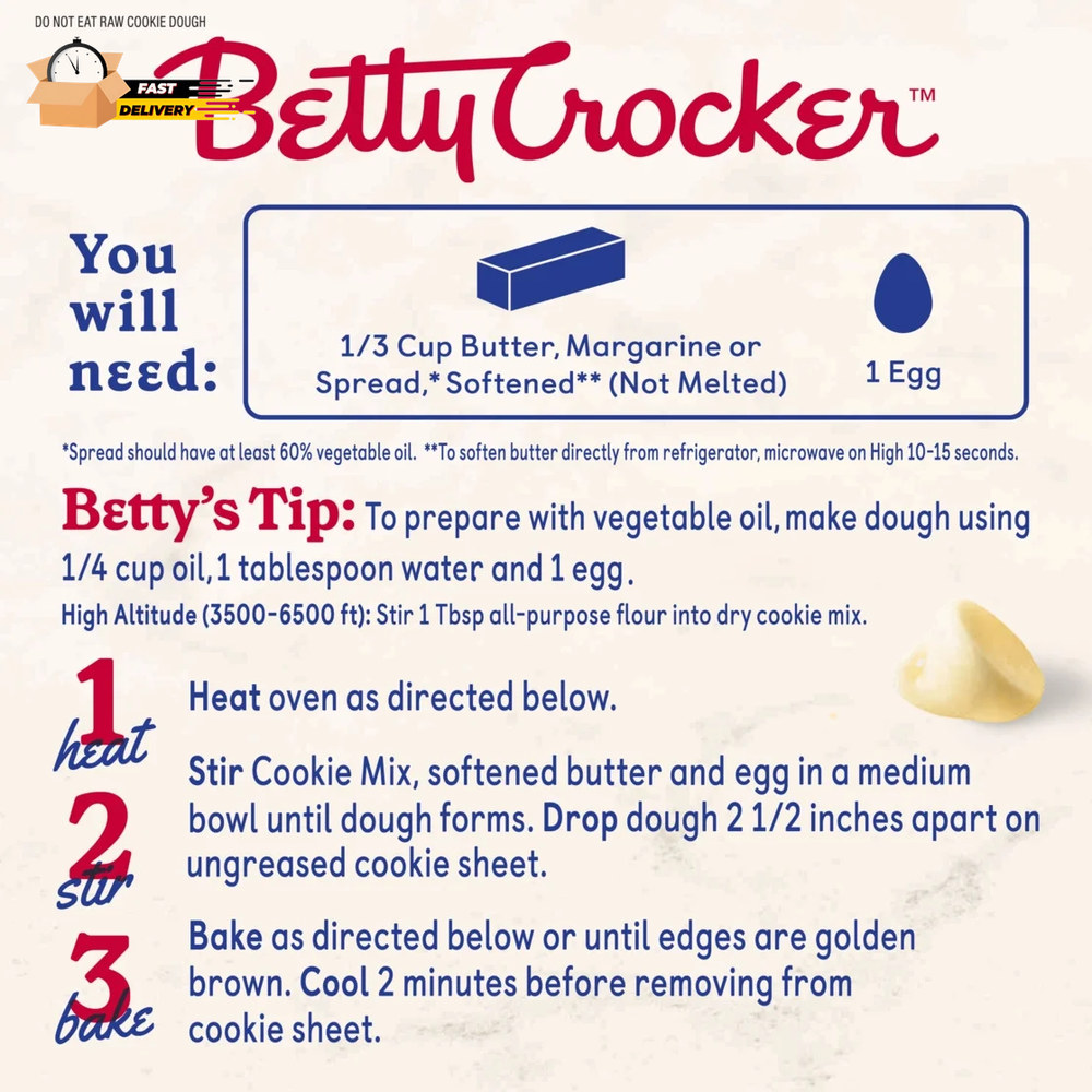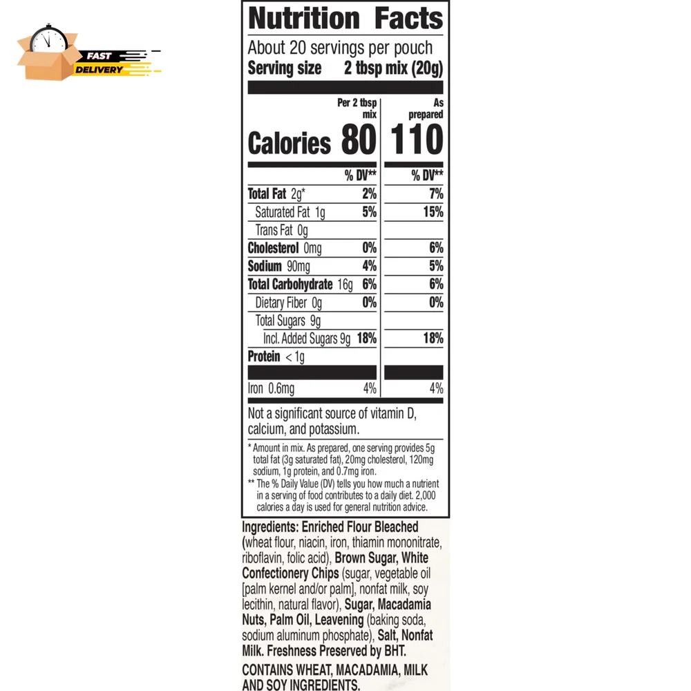 Store New Arrivals Add to Favorite View Feedback Contact White Chip Macadamia Nut Cookies, Cookie Baking Mix, 14 Oz Description Baking Mix Type Cookie Mixes Third Party Accreditation Symbol on Product Package Code OU Kosher Dairy Nutrient Content Claims Vegetarian, No Artificial Sweeteners Food Form Powders Container Type Pouch Container Material Bag Food Condition Shelf-Stable Size 14.000 oz Color Multi Color Fill your kitchen with the scent of home-baked cookies in minutes using America's number one cookie mix brand.* With Betty Crocker White Chip Macadamia Nut Cookie Mix, you can treat yourself to white chip macadamia nut cookies any time of the day or night. Prepare cookie mix as described on the packaging or explore Betty Crocker recipes for a new take on this cookie classic that friends and family will love. Bring your family together with the perfect balance of sweet flavor and convenience. For more than a century, Betty Crocker has been a popular creator of easy, delicious recipes. Today, the Betty Crocker kitchen is still providing convenient, tasty dessert mixes, frostings, and convenient meal options and side dishes. *Based on 52 weeks of Nielsen Sales Data for dry cookie mixes ending 6/1/2024. CLASSIC COOKIE MIX: Create white chip macadamia nut cookies for the whole family to enjoy (Do not eat raw cookie dough) QUICK AND EASY: Just mix, drop, and bake for a chewy, delicious treat any time of the day or night ENDLESS OPTIONS: Prepare cookie mix as is or explore Betty Crocker recipes for a new take on this classic WHITE CHOCOLATE GOODNESS: Bite into sweet oven-baked white chip macadamia nut chip cookies CONTAINS: One 14 oz pouch of Betty Crocker White Chip Macadamia Nut Cookie Mix BOX TOPS FOR EDUCATION PARTICIPATING PRODUCT: Give back to schools with Betty Crocker; Download the Box Tops App to learn more & start earning cash for your school or a school in need Ingredients Enriched Flour Bleached (wheat flour, niacin, iron, thiamin mononitrate, riboflavin, folic acid), Brown Sugar, White Confectionery Chips (sugar, vegetable oil [palm kernel and/or palm], nonfat milk, soy lecithin, natural flavor), Sugar, Macadamia Nuts, Palm Oil, Leavening (baking soda, sodium aluminum phosphate), Salt, Nonfat Milk. Freshness Preserved by BHT./div> ABOUT US We offer the best prices around on high quality products. Our E-store includes media such as books, movies, music and games while offering electronics, toys, sporting apparel, clothing, tools, general home, garden items and more. SHIPPING We are always working hard to ensure your package arrives as soon as possible. Please understand that some factors like weather, high postal traffic, and the performance of shipping companies are outside of our control. We offer free shipping to the lower 48 states and ship within 2 business days of payment, usually sooner. We do not accept P.O. Boxes. Please provide a physical address. For shipping outside of the continental USA, we only use eBay's Global Shipping Program.The item is shipped to KY and then sent to the rest of the world. International customers are responsible for all duties and taxes. Continue to check out in order to calculate costs for shipping the item to your country. Messages regarding eBay's Global Shipping Program MUST be directed at eBay EXCLUSIVELY. RETURNS We offer a 30-Day Return Policy on items which you are not completely satisfied with. You have the option for a full-refund or an exchange of the item. No returns are available on items shipped outside of the USA. PAYMENT We accept PayPal. CONTACT US This page content is yet to come Please ad us to your favorite seller and visit again later Thank You CUSTOMER SATISFACTION We try our very best to make sure every customer is completely satisfied. If there's a problem, message us! We're happy to help. WE ACCEPT Copyright © 2021 AutoDS. | All Rights Reserved