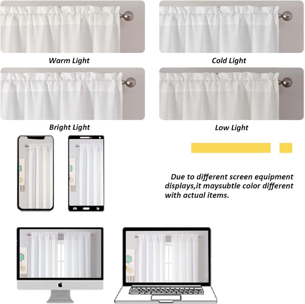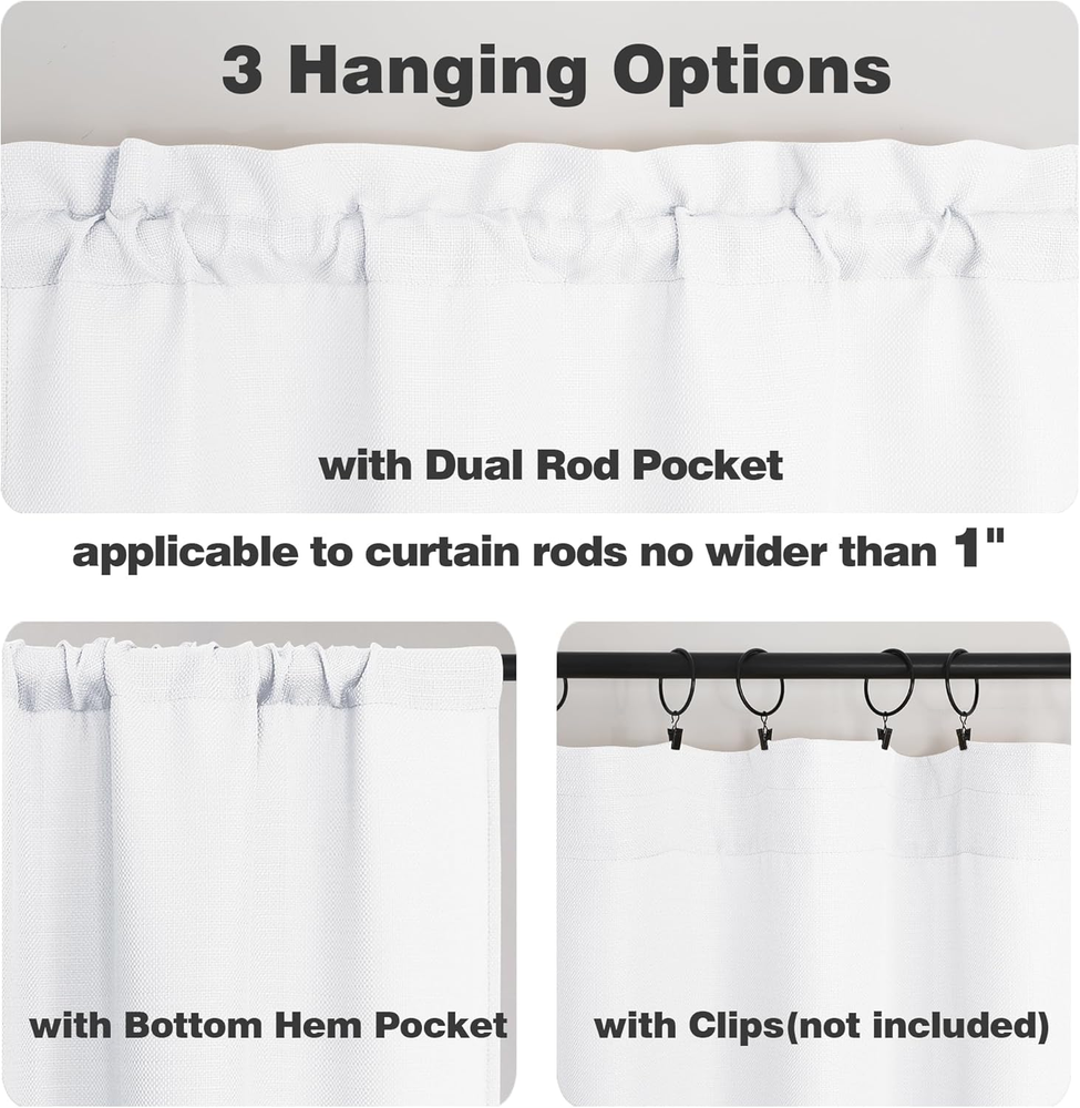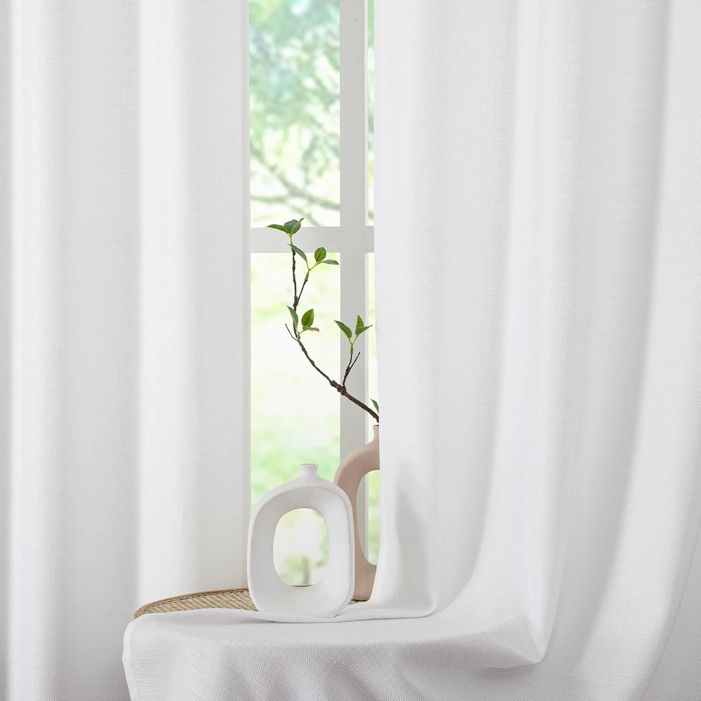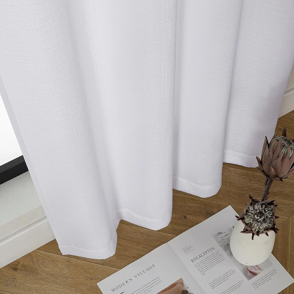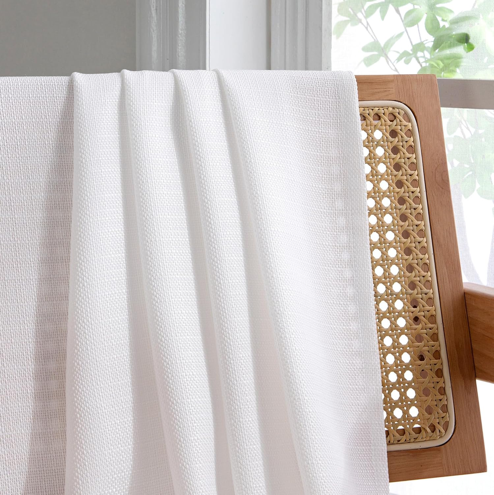 White Curtains 45 Inch Length 2 Panels, Faux Linen Textured Semi S...